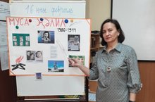 Герой шагыйрь Муса Җәлил тууга 115 ел! Шул уңайдан туган (татар) теле укытучысы Садыйкова Светлана Максут кызы мәктәбебез укытучылары өчен ачык дәрес тәкъдим итте. «Шагыйрь –безнең йөрәкләрдә” темасы астында бирелгән дәрес 5 В сыйныфында бик җанлы үтте.