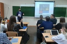 Лекцию по финансовой грамотности «Экспортная деятельность» провел выпускник школы 2001 года, начальник отдела по работе с предпринимателями Центра поддержки экспорта Шенфильд Эмиль Олегович.