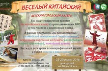 Центр восточных языков ЦРК Universum+ Института международных отношений, истории и востоковедения совместно с Институтом Конфуция КФУ организуют первый в Казани городской лагерь китайского языка и культуры! Мы также познакомим Вашего ребенка с культурными аспектами Китая. Наши китайские преподаватели обучат основам традиционной гимнастики «тайцзицюань», китайской каллиграфии, искусству вырезания из бумаги. Познакомят с китайской кухней, традиционными танцами, спортивными и настольными играми Китая. Запись по телефону: +7-996-336-31-19 (Илина Усманова) Электронная почта: zrkkitay@gmail.com