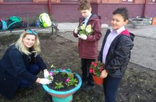 29 апреля прошел Всероссийский субботник. Учащиеся 5В класса при помощи родителей высадили цветы, кустарники и саженцы деревьев, учащиеся 9 классов убрали пришкольную территорию.