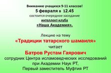 Вниманию учащихся 9-11 классов! 5 февраля в 12.45 состоится очередное заседание интеллект-клуба «Наша Академия».