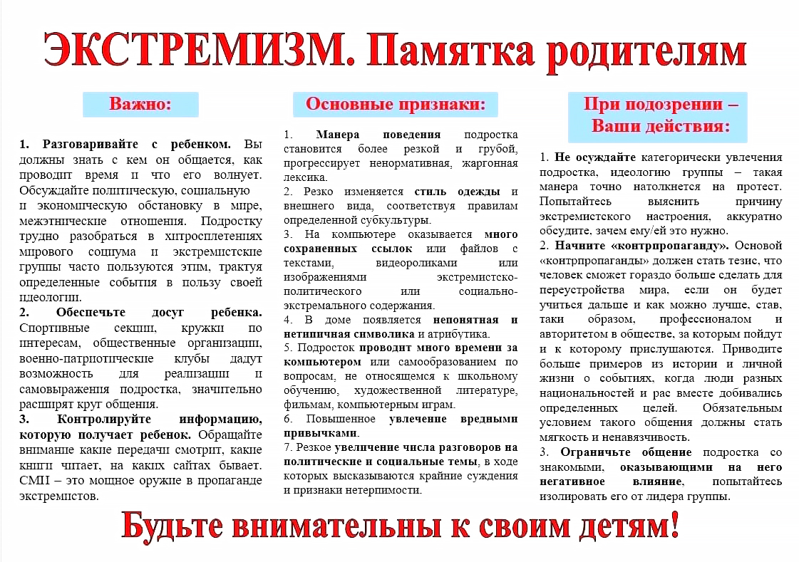 Памятка для родителей