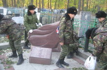 21 октября поисковый отряд "Экспедиция 116" провёл уборку на братском захоронении татарского кладбища. Памятник был очищен от листьев и вымыт.