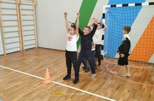 "Учительский забег", начавшись в актовом зале, был пройден четырьмя педагогическими командами.