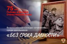 С 9 декабря 2019 года по 28 февраля 2020 года Минпросвещения России совместно с органами исполнительной власти субъектов Российской Федерации в сфере образования проводит Всероссийский конкурс сочинений среди школьников «Без срока давности», приуроченный к Году памяти и славы в 2020 году.К участию в конкурсе приглашаются учащиеся 5–11-х классов общеобразовательных организаций.