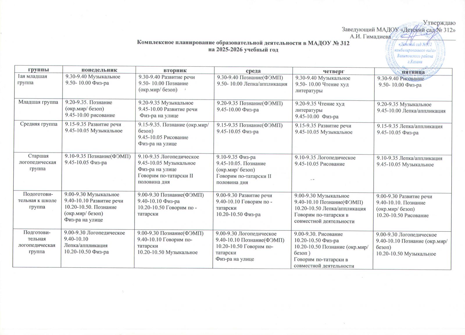 Комплексное планирование образовательной деятельности на 2025-2026 уч.год