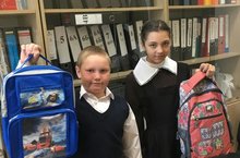 От имени МУ Отдел образования«Управления образования исполнительного комитета муниципального образования города Казани по Вахитовскому и Приволжскому районам учащимся младших классов, в рамках акции "Помоги собраться в школу", были вручены портфели с учебными принадлежностями.