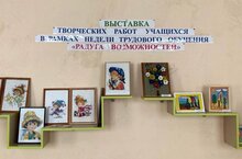 Выставка творческих работ в рамках предметной недели трудового обучения под названием "Радуга возможностей". Каждый из учащихся вложил свой труд, добавил изюминку и свою любовь.