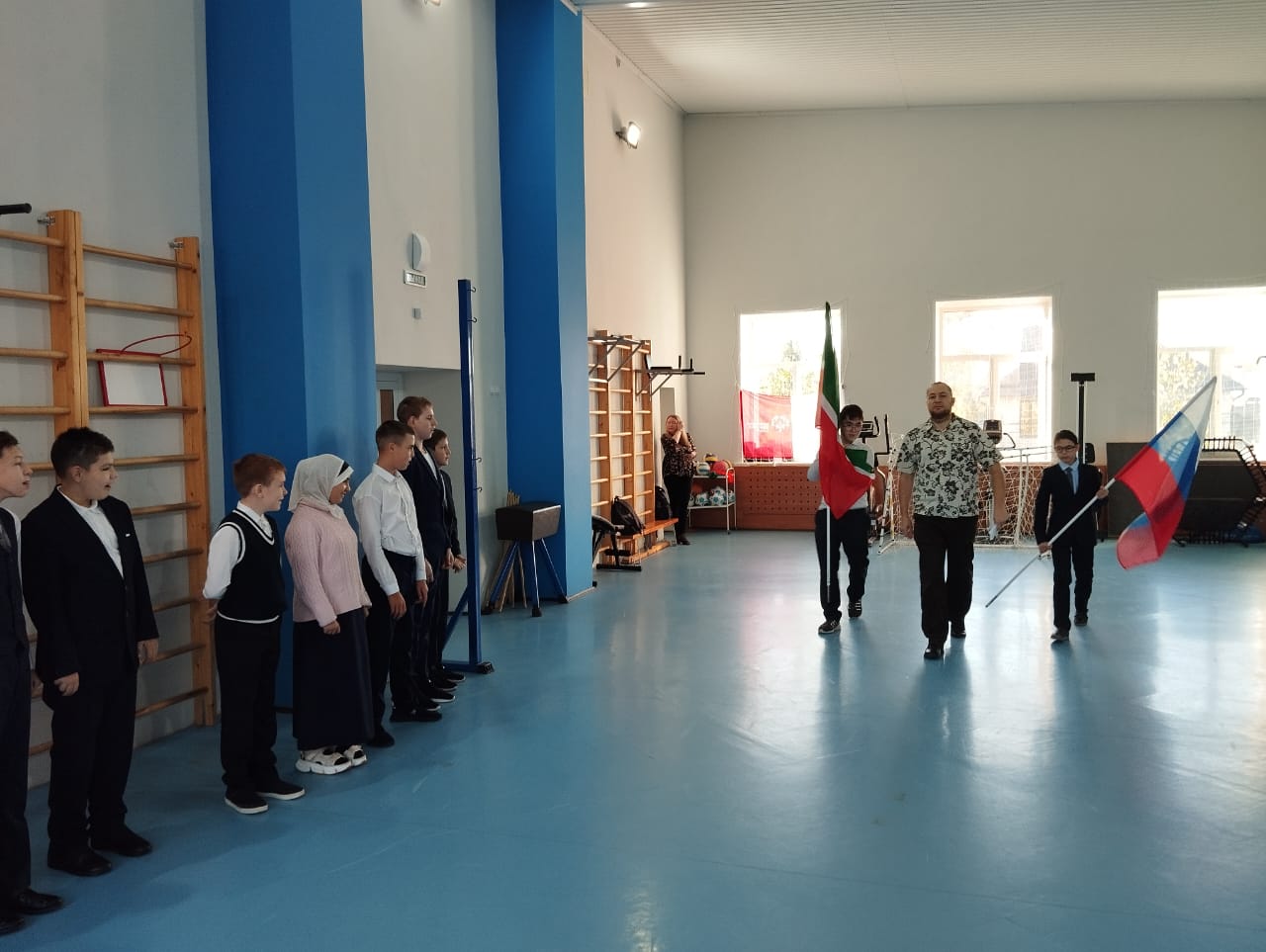 Церемония торжественного поднятия Государственного флага Российской Федерации под гимн нашей страны