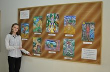 В лицее открылась выставка рисунков по мотивам татарских сказок. Неповторимый стиль работ очень органичен для татарских сказок