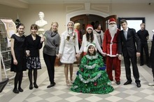 3 декабря 2013г. перед началом занятий 9А класс пригласил учащихся 7-11 классов поводить хоровод с участием Деда Мороза и Снегурочки, эльфов, чертиков. Но главным героем стала Елочка (Ионова Снежана, 9А класс), вокруг которой и водили новогодний хоровод.