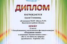 Поздравляем ученицу 8В класса Степанову Аделю, ставшую призером V Республиканского экологического фестиваля-конкурса «Радужная сцена» в номинации «Художественное слово»! Руководитель – учитель биологии А.В. Едранова.