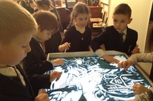 В канун Нового года учащиеся всех 1-х классов, 2В, 3А, 3В, 5Б кл. погрузились в мир волшебства. Уникальный художник провёл для детей мастер-класс по рисованию песком сказки Г. Х. Андерсена "Снежная королева". Завораживающая история дружбы и приключений Кая и Герды не оставила никого равнодушным. После чудесного песочного шоу дети сами создавали картины из песка, связанные в единый сюжет.