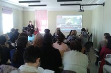 Во второй половине дня гости семинара получили возможность познакомиться с новыми формами развивающего контроля и независимой оценки, которые обеспечивает Международный экзамен PTE. Тинчурина Т.В., учитель высшей квалификационной категории, поделилась опытом организации РТЕ в школе №39, затем Санникова Р.А., учитель высшей квалификационной категории, провела практикум для курсантов в формате РТЕ.