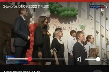 Фрагмент исполнения старшеклассниками гимнов РФ и РТ и церемония поднятия государственных флагов в нашей школе на торжественной линейке 1 сентября стал частью репортажа на канале «Россия» о Дне Знаний в республике Татарстан.