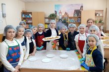 10.03.2021 в школьном фойе фольклорный Ансамбль «Лапоток» МОЦ им. Л.Толстого (Рук. Чугунова Г.И., концертмейстер Ветренко В.Н.) провёл Встречу Масленицы. Среда - в народном масленичном семидневнике называлась «Лакомка»! В концерте приняли участие ребята из групп продленного дня, т.е. из разных классов начальной школы! Они выступили в народных русских костюмах и сыграли традиционные масленичные песни, прибаутки, приговорки, показали народную игру «Золотые ворота». А после успешного выступления перед слушателями, ребята- ансамблисты с удовольствием полакомились принесенными из дома блинами! «Блин- не клин, брюхо не проколет!».