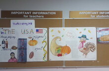 Праздник День Благодарения известен на весь мир. Ученики 8-ых классов создали стенгазеты, посвященные этому торжеству. Из стенгазет вы сможете узнать и про первых переселенцев из Англии, которые плыли на знаменитом судне «Мэйфлауэр», и про местных индейцев, которые научили пилигримов выращивать бобы, кукурузу, тыкву и другие культуры, и про традиционные угощения на этот праздник: фаршированную индейку, клюквенный сок и тыквенный пирог. Happy Thanksgiving!