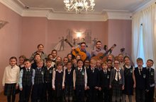 11 ноября учащиеся 1б класса побывали на концерте «Гитара — судьба моя», который прошёл в камерном зале МОЦ имени Л.Н.Толстого. Вела концерт педагог-музыковед МОЦ Чугунова Г.И. Она увлечённо рассказала младшим школьникам историю происхождения гитары. Студенты консерватории Н. Михалёв и Н. Поросятников виртуозно исполнили на этом замечательном инструменте произведения А.Джилардино, М.Матурицио, А.Барриоса, Р.Диенса. Дети восторженно поблагодарили организатора и исполнителей за чудесный концерт.