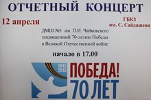 12 апреля в ГБКЗ им. С. Сайдашева состоится традиционный ежегодный отчетный концерт ДМШ №1 им. П.И. Чайковского, посвященный 70-летию Победы в Великой Отечественной войне.