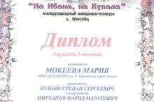В сентябре были подведены итоги международного интернет-конкурса "На Ивана, на Купала", г. Москва. Ученица школы Мокеева Мария стала лауреатом I степени (флейта, класс преп. Пушина С.С., концертмейстер Мирханов Ф.М.). Поздравляем!