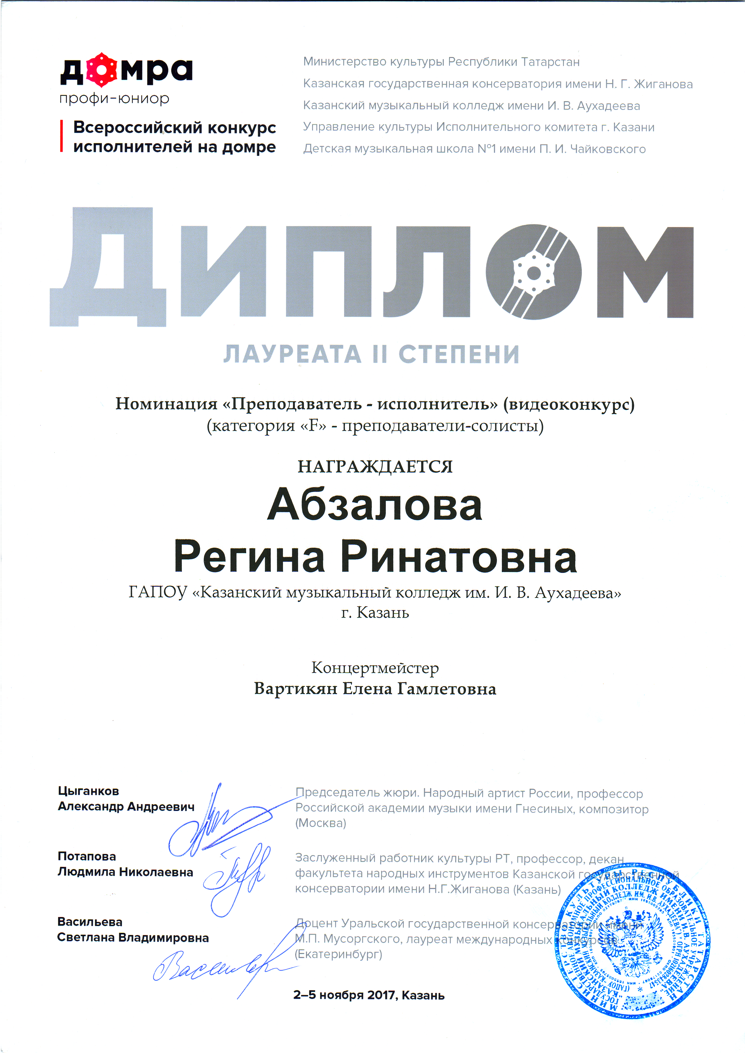 XII Международный профессиональный конкурс "Гордость России" - Кашапова Г.М., Диплом II;