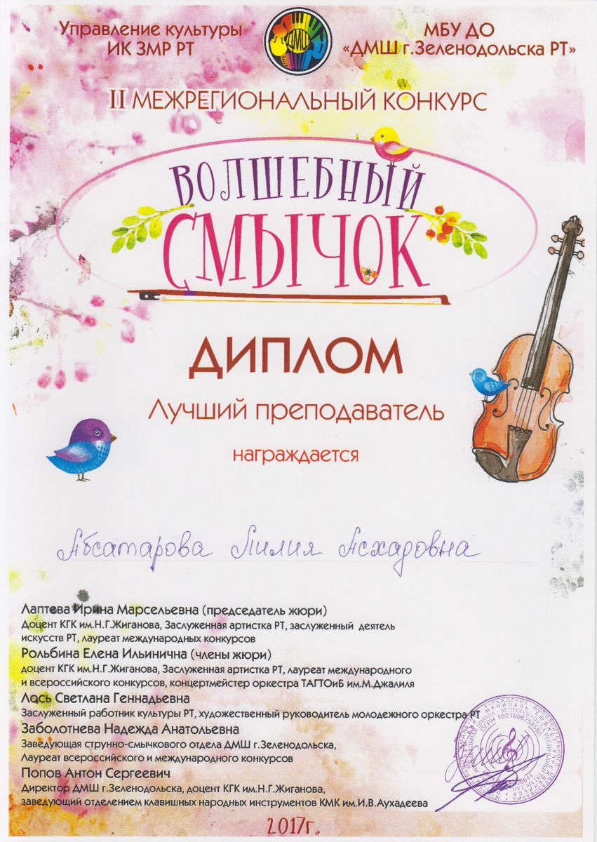 II Межрегиональный конкурс "Волшебный смычок" - Марданова Г.Р., Лучший преподаватель;