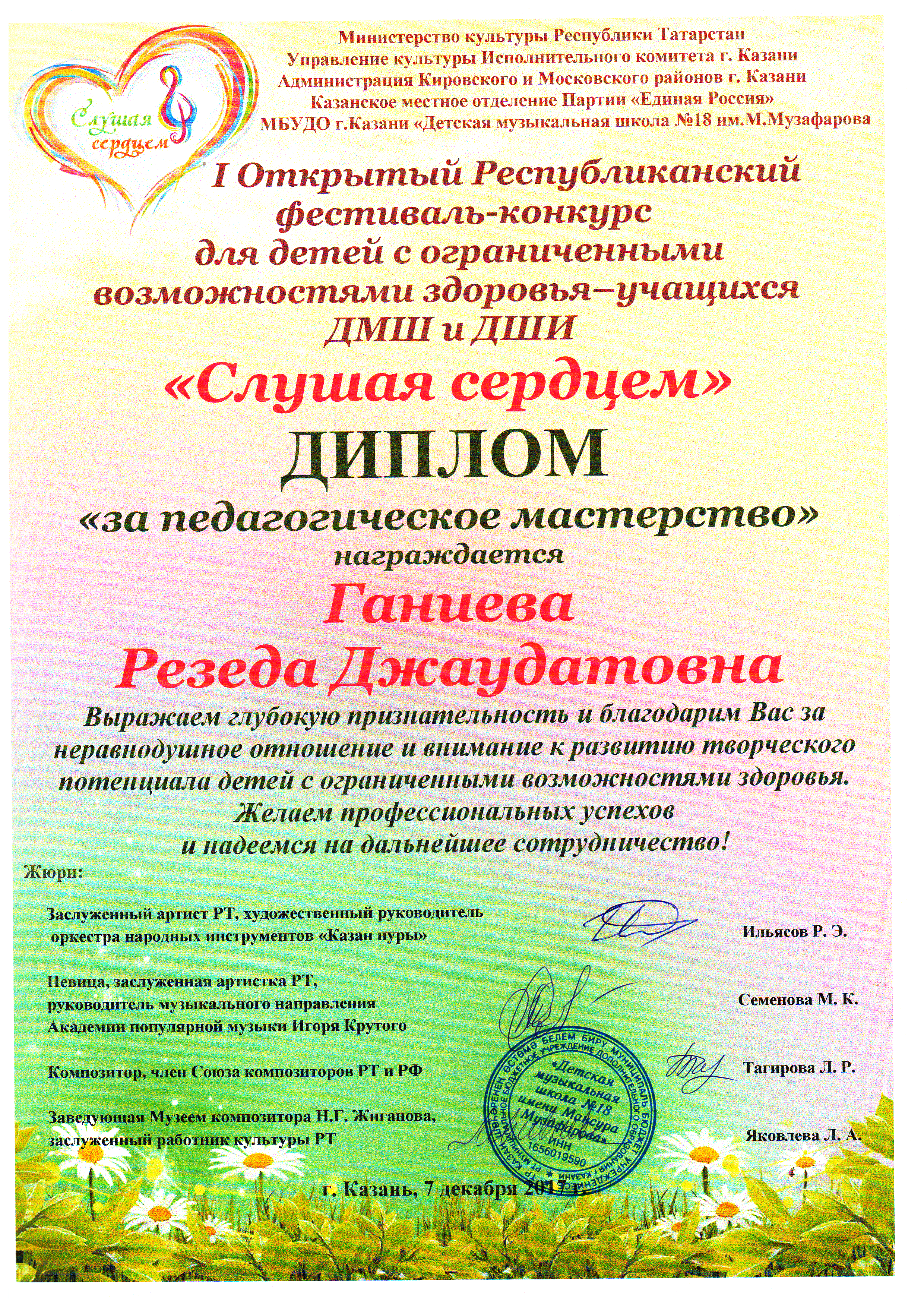 Открытый городской конкурс юных исполнителей "Маленькая страна" - Ганиева Р.Д., Диплом;