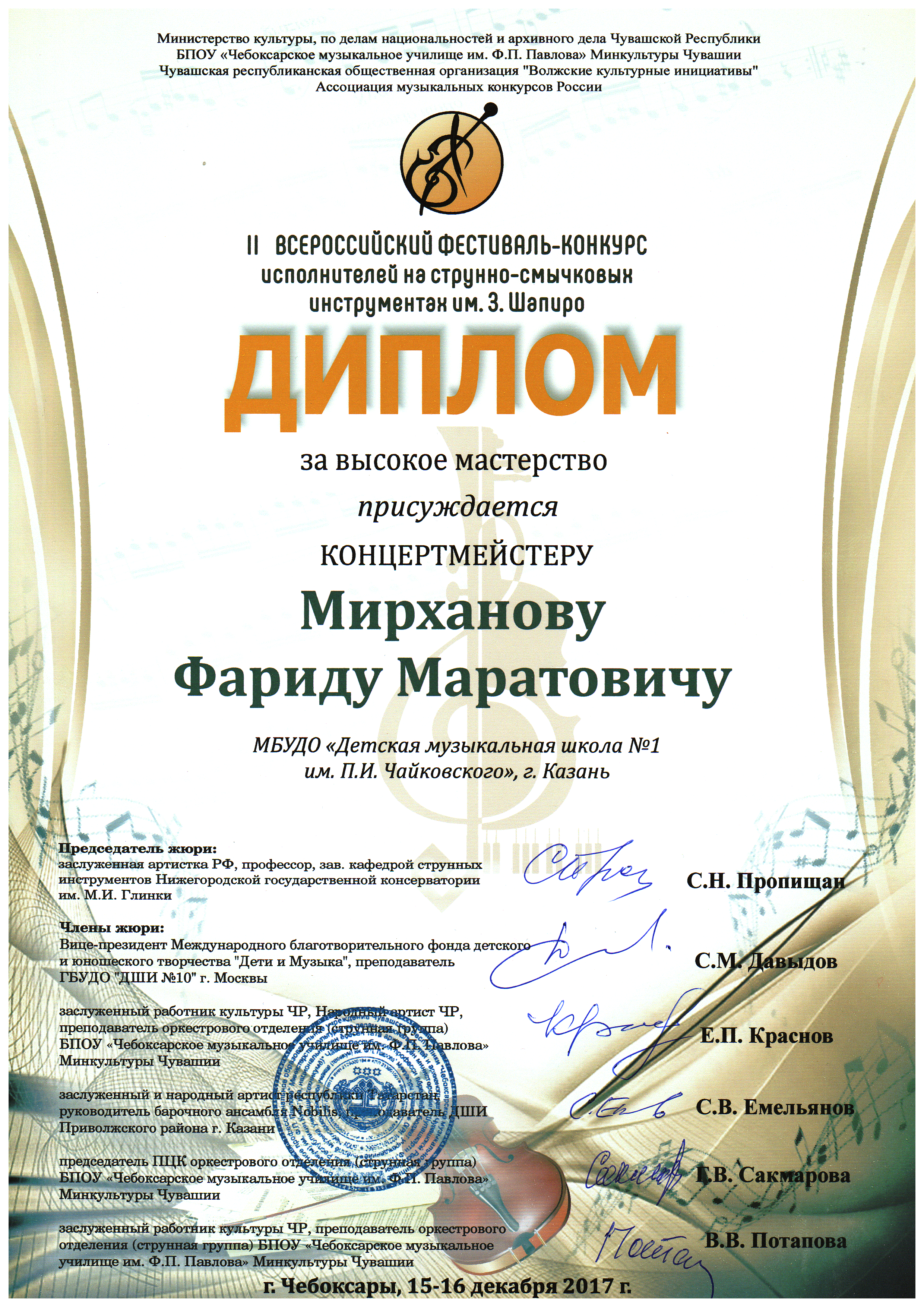 II Межрегиональный конкурс "Волшебный смычок" - Мирханов Ф.М., Лучший концертмейстер;