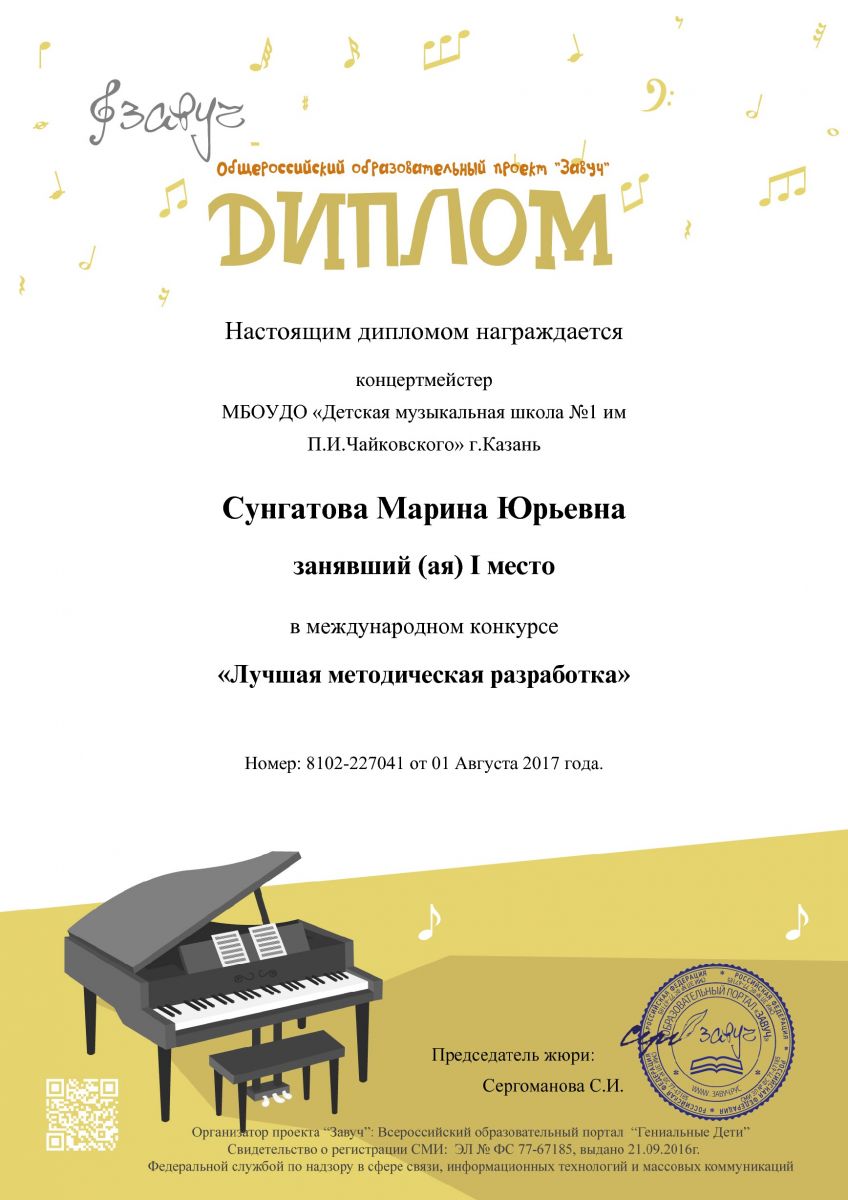 Международный конкурс "Лучшая методическая разработка" - Сунгатова М.Ю., I место;