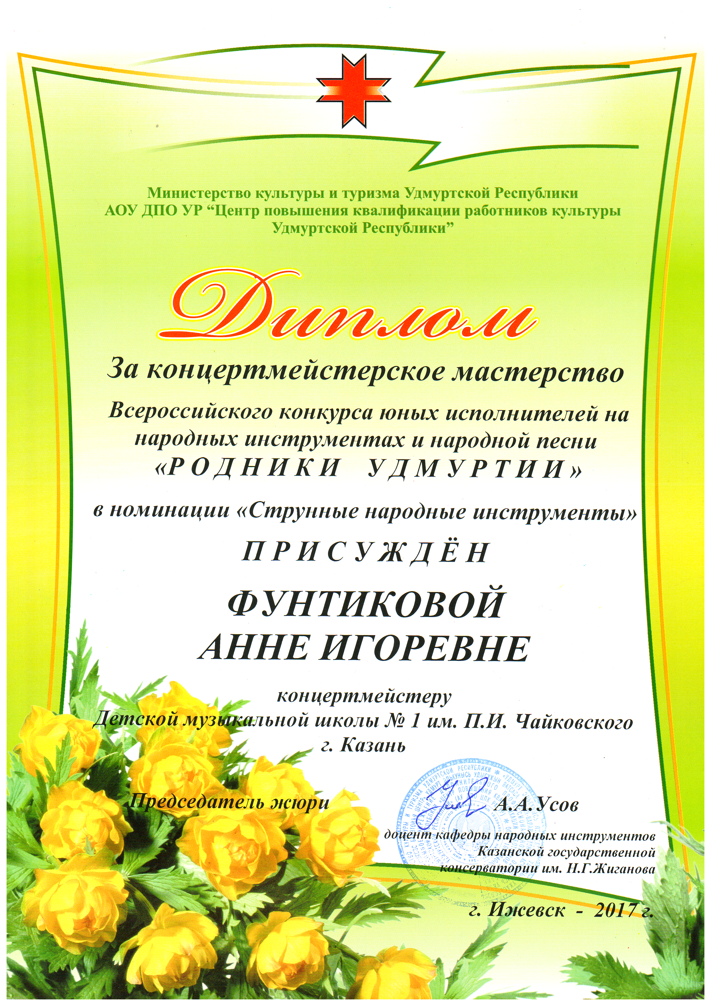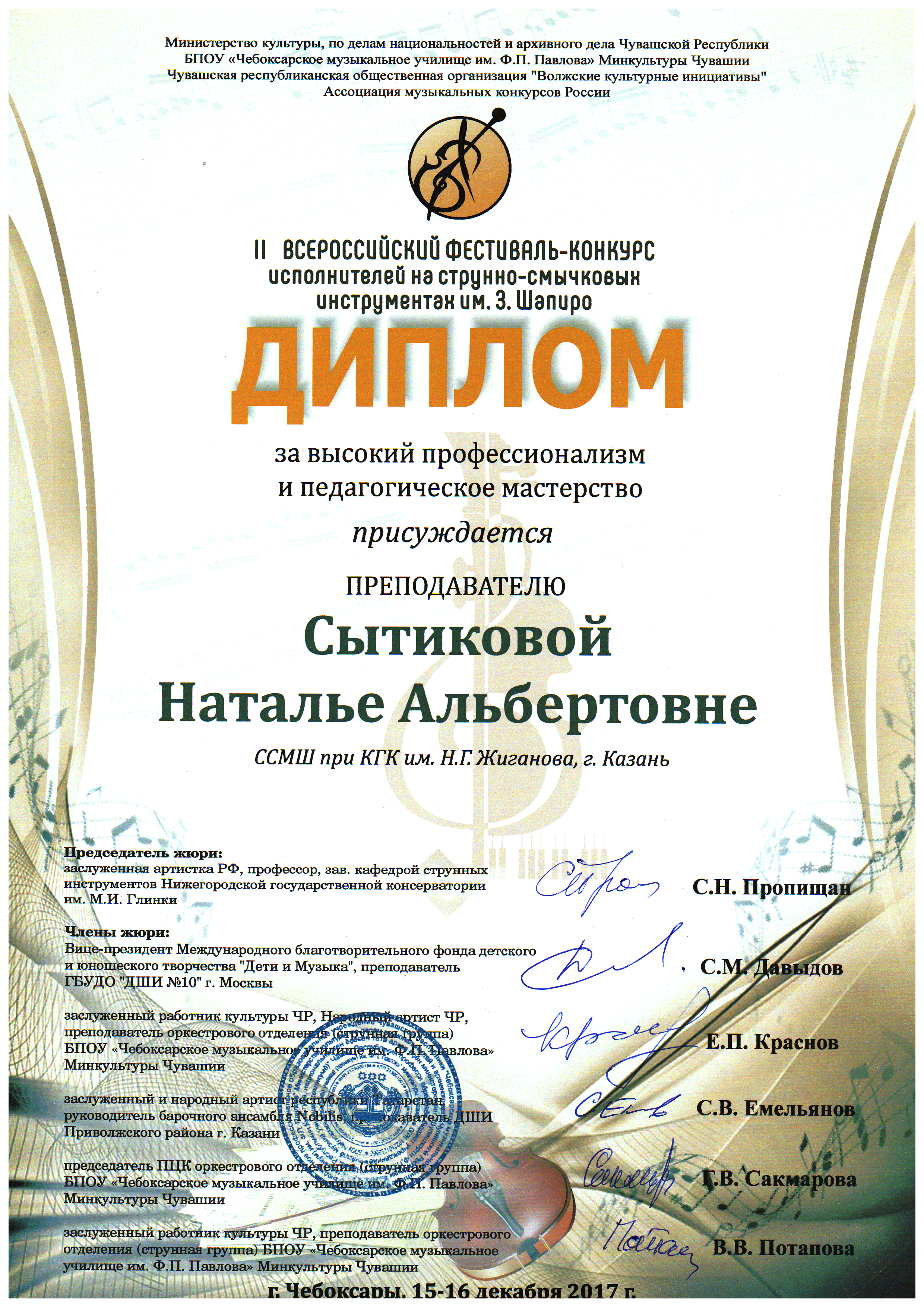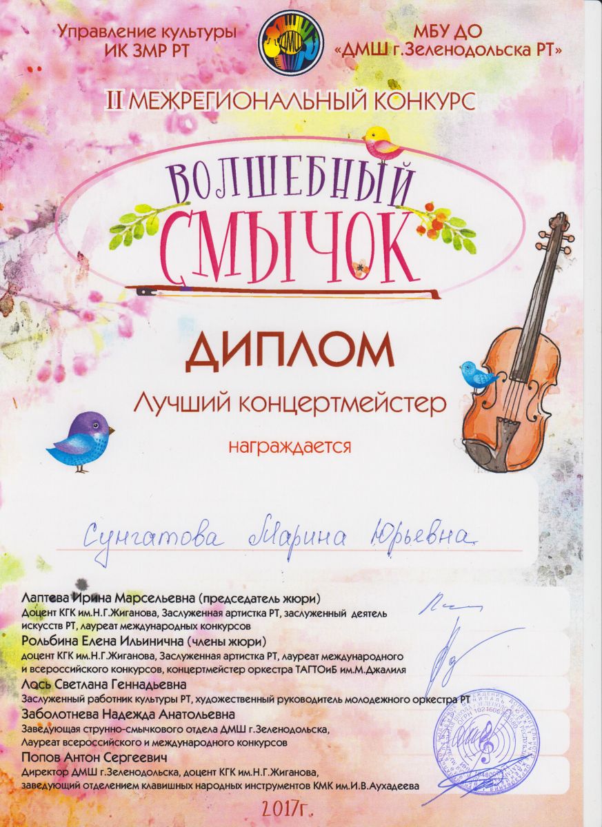 II Межрегиональный конкурс "Волшебный смычок" - Сунгатова М.Ю., Лучший концертмейстер;