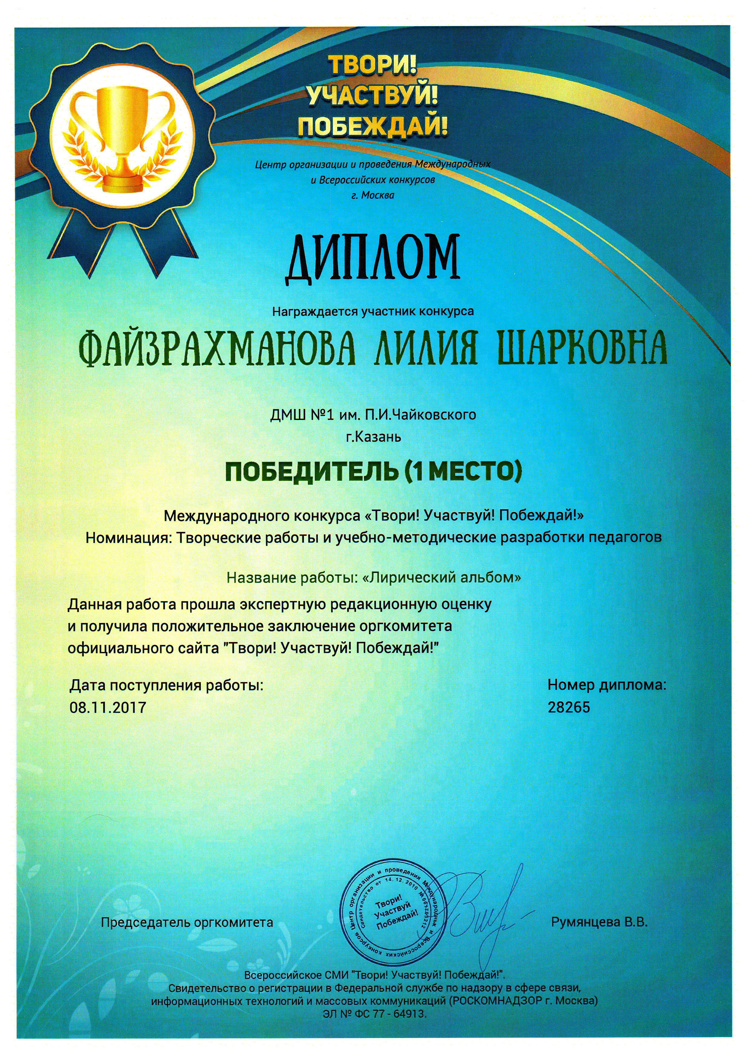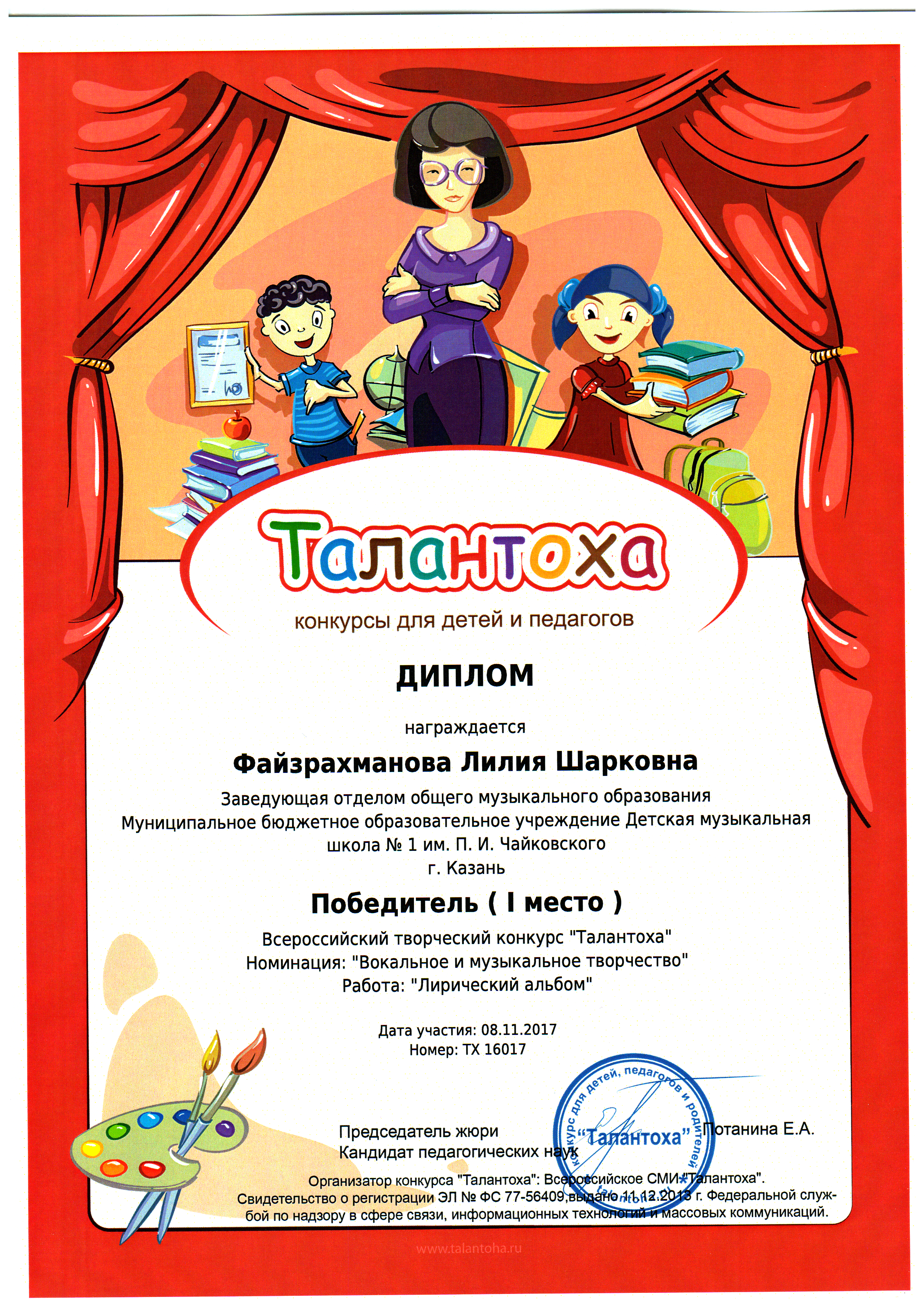 Всероссийский творческий конкурс "Талантоха" - Файзрахманова Л.Ш., Победитель, I место;
