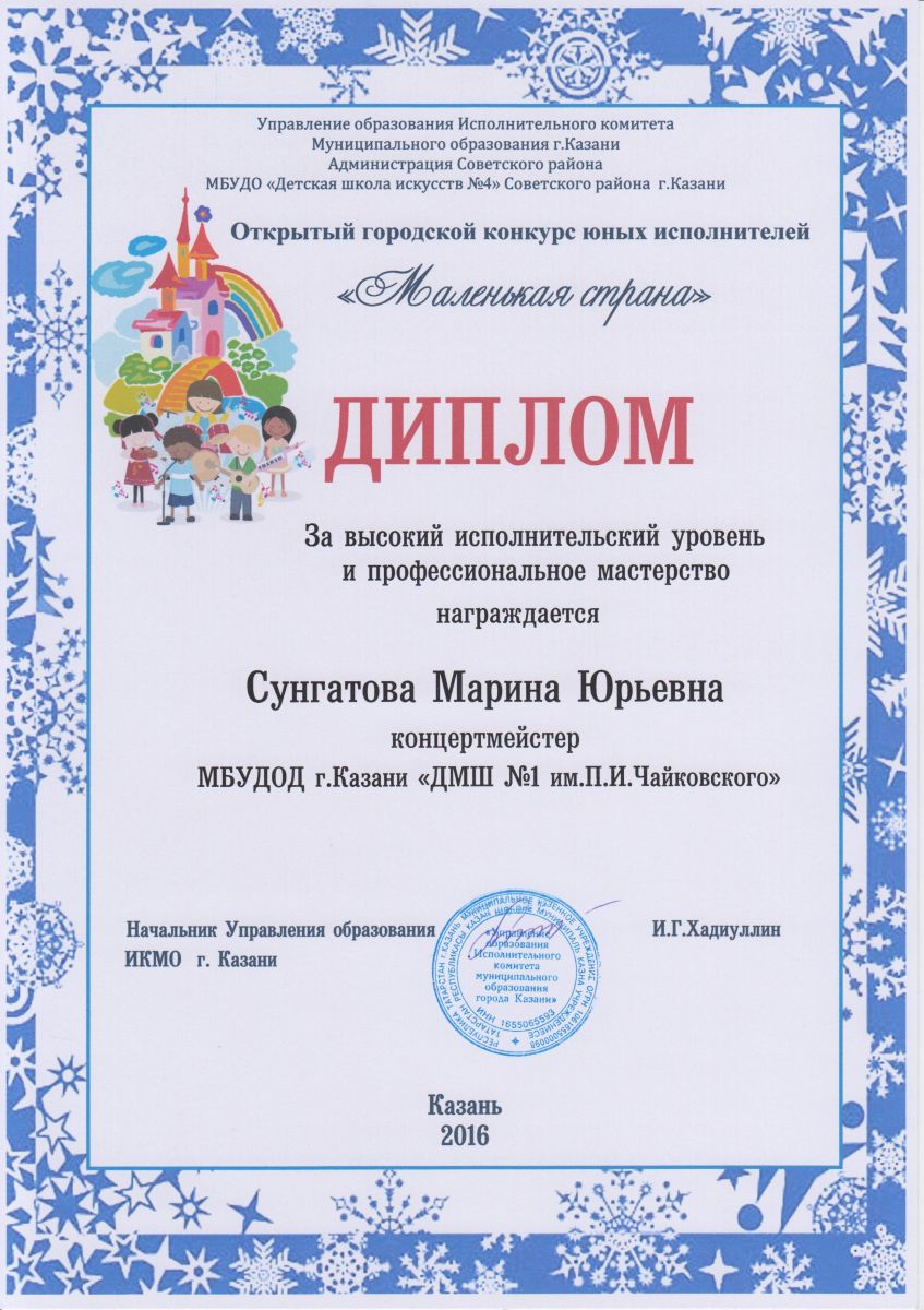 Открытый городской конкурс юных исполнителей "Маленькая страна" - Сунгатова М.Ю.;