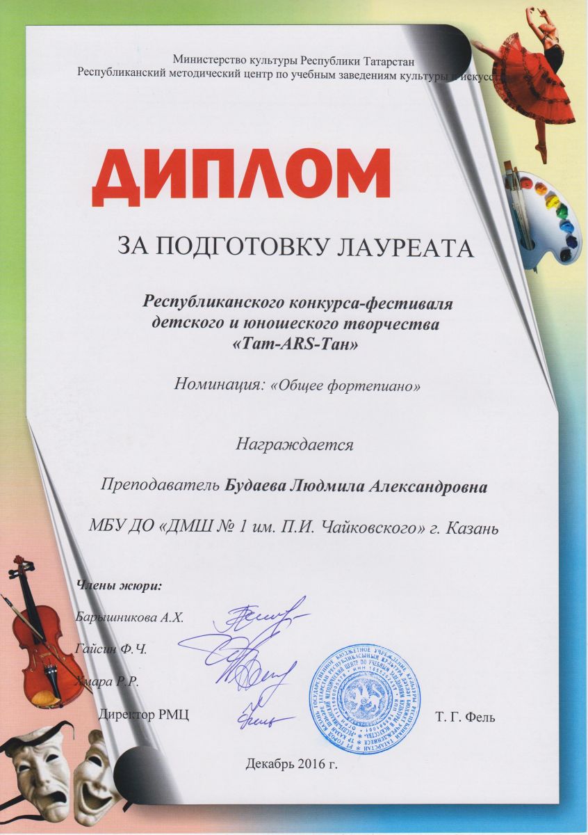 Республиканский конкурс-фестиваль детского и юношеского творчества "Тат-ARS-Тан" - Будаева Л.А.;