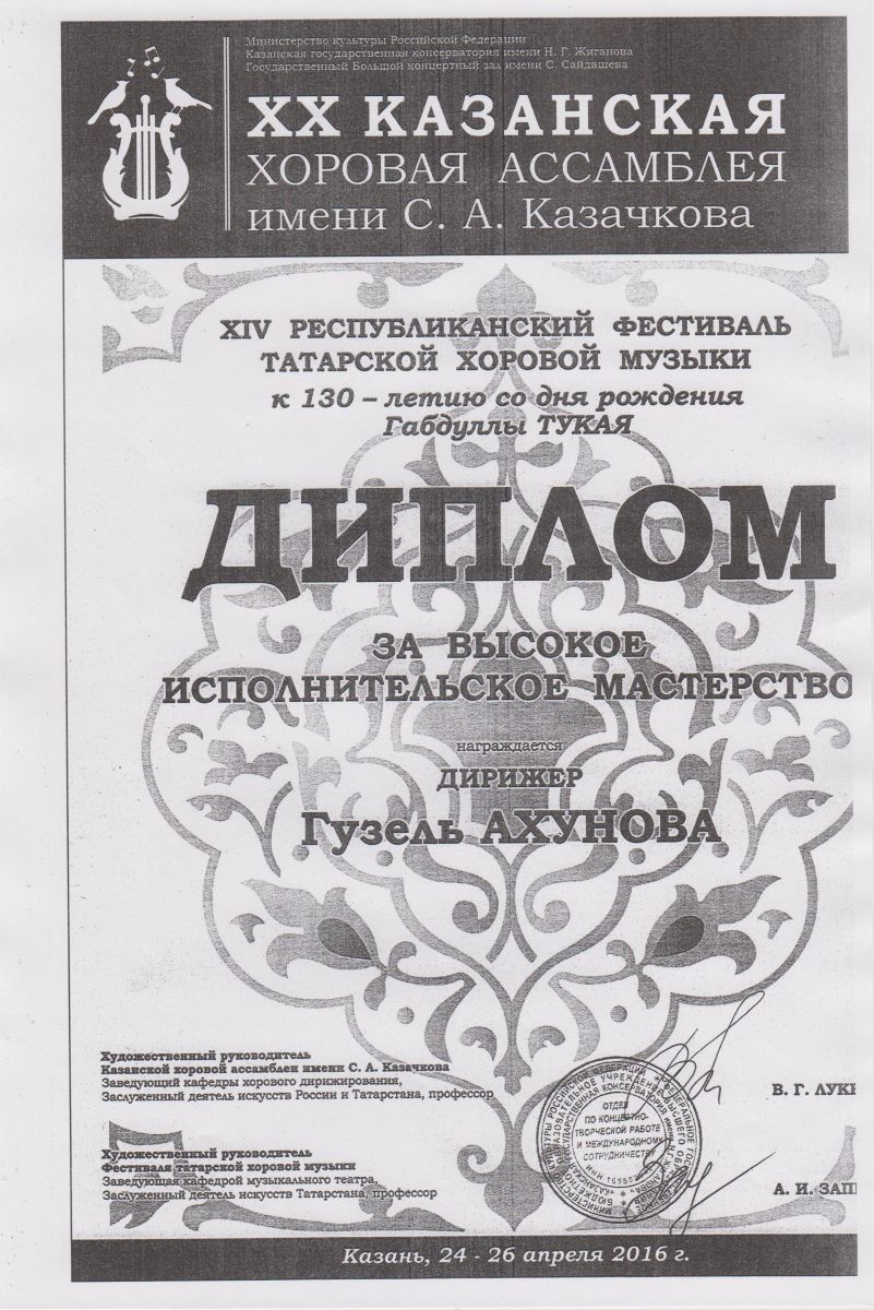 XIV Республиканский фестиваль татарской хоровой музыки - Ахунова Г.М.;