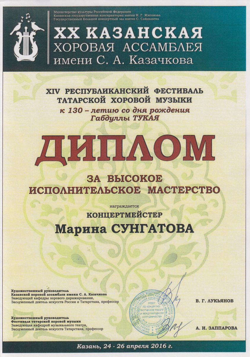 XIV Республиканский фестиваль татарской хоровой музыки - Сунгатова М.Ю.;