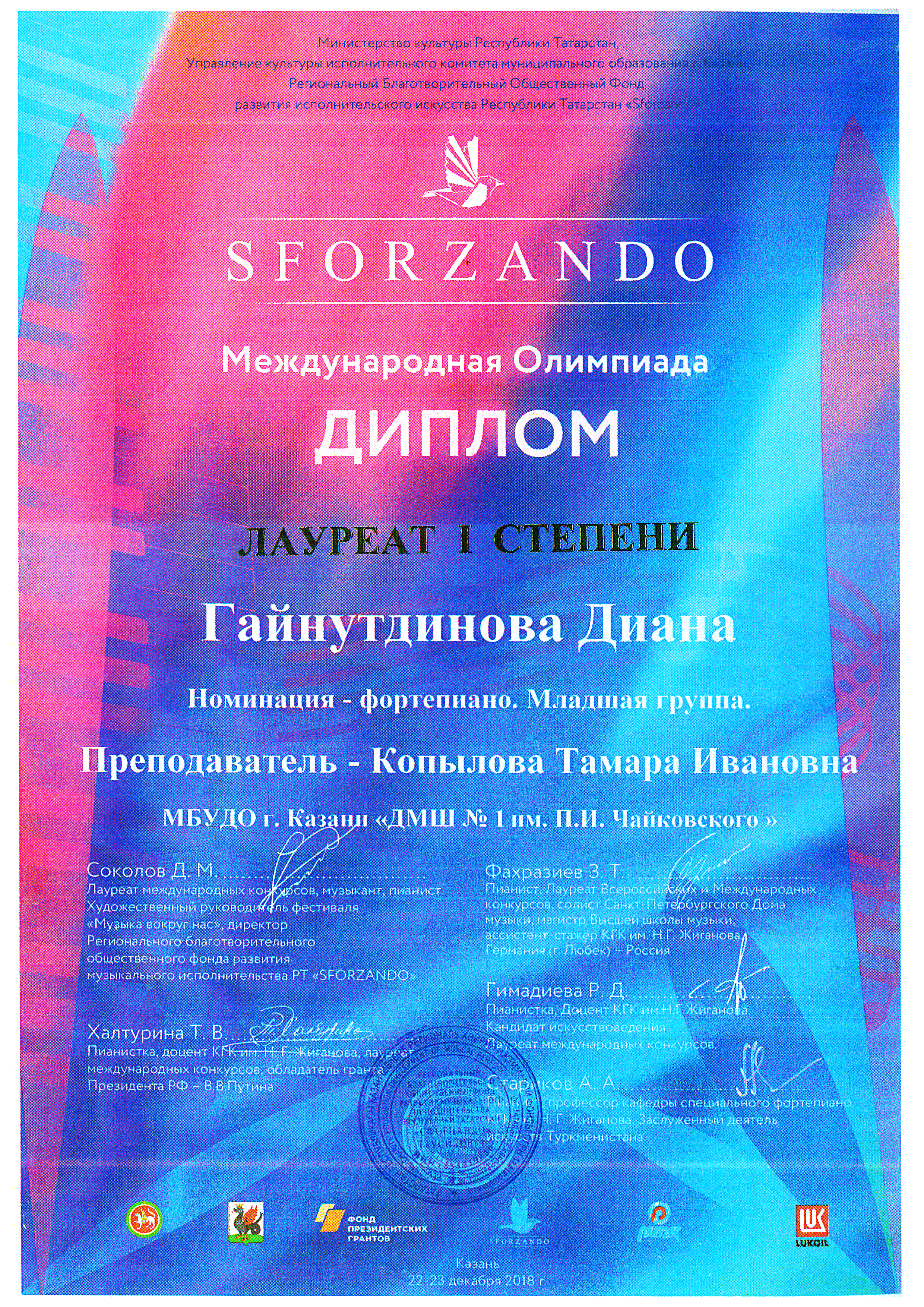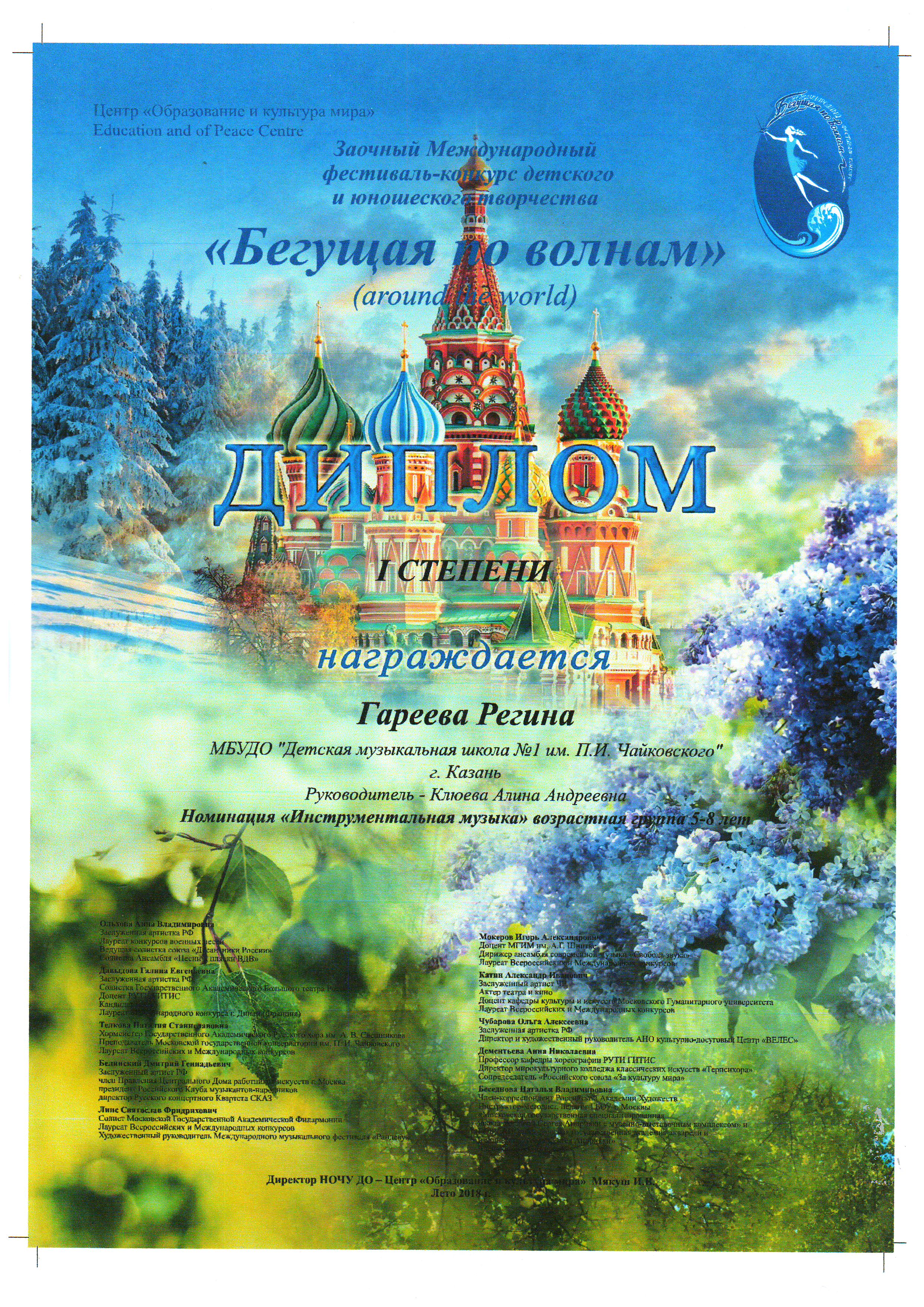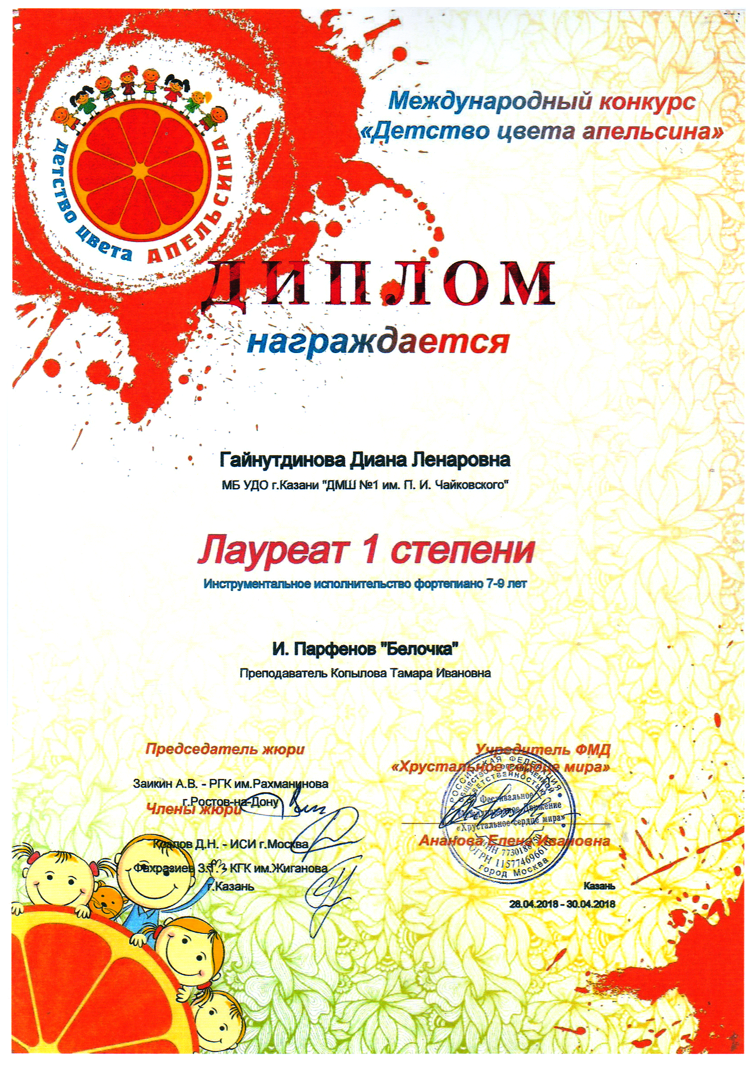 Международный конкурс "Детство цвета апельсина" - Гайнутдинова Диана, Лауреат I степени;