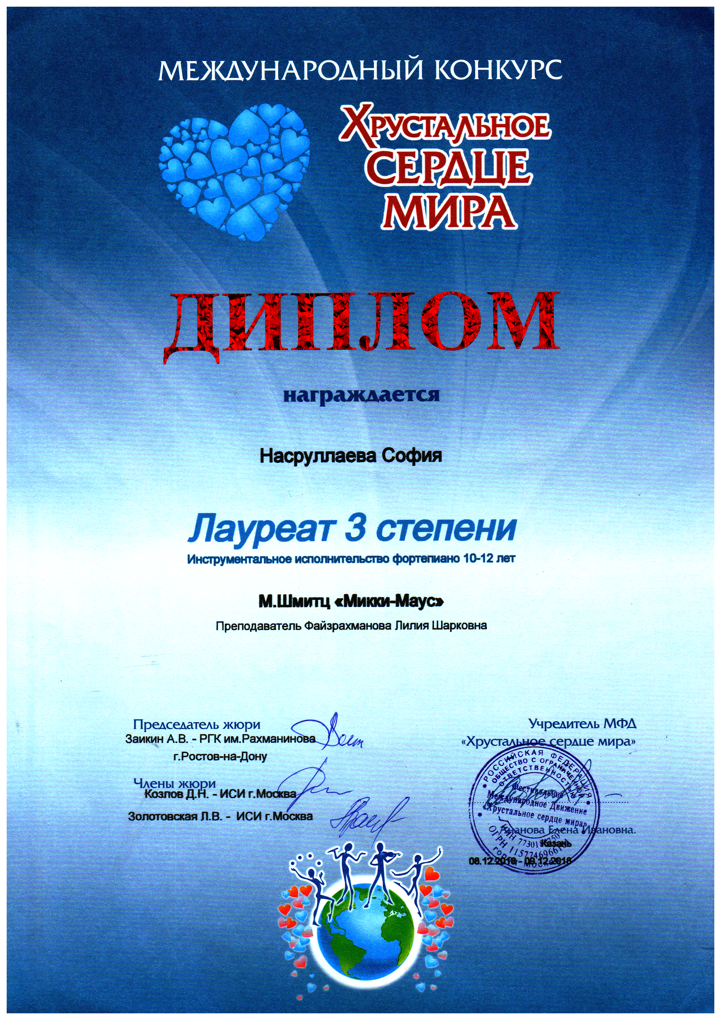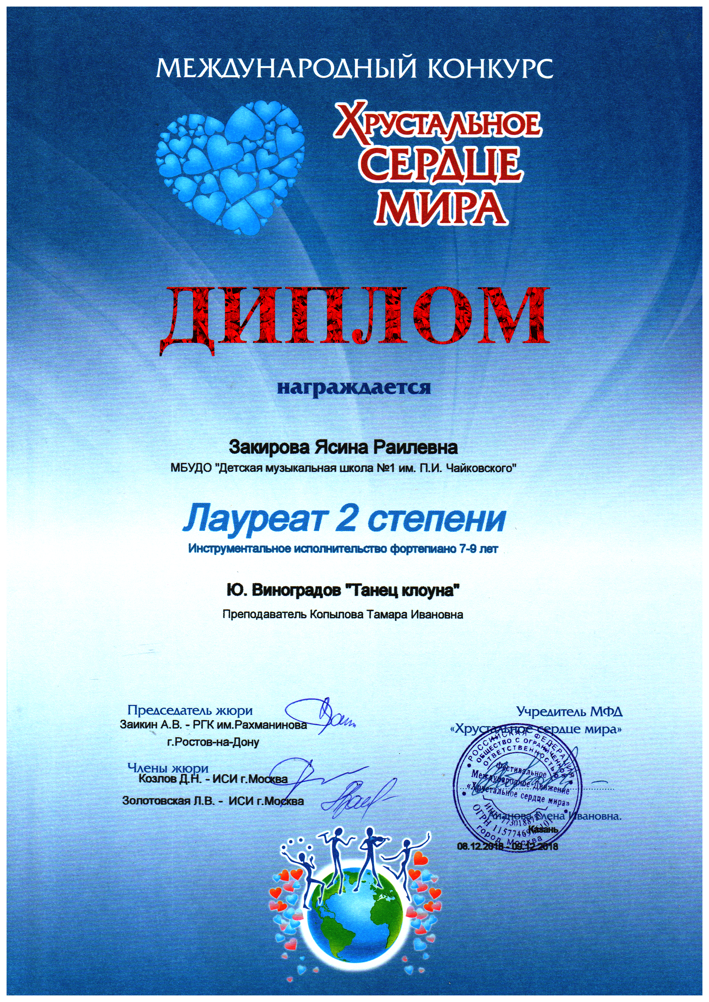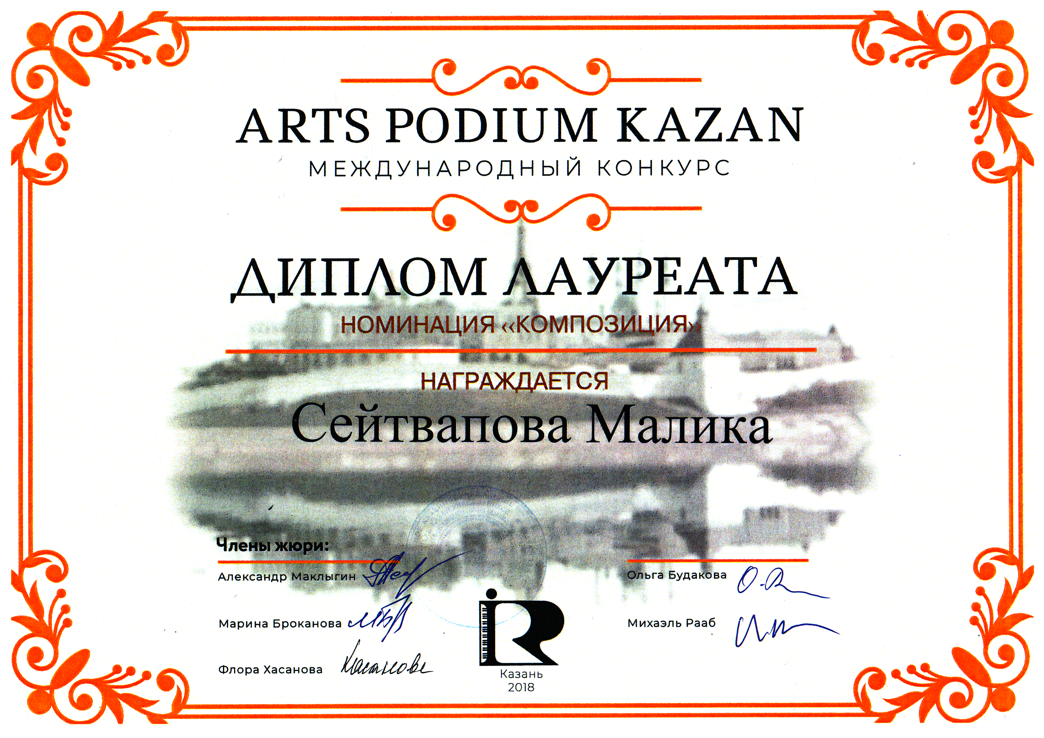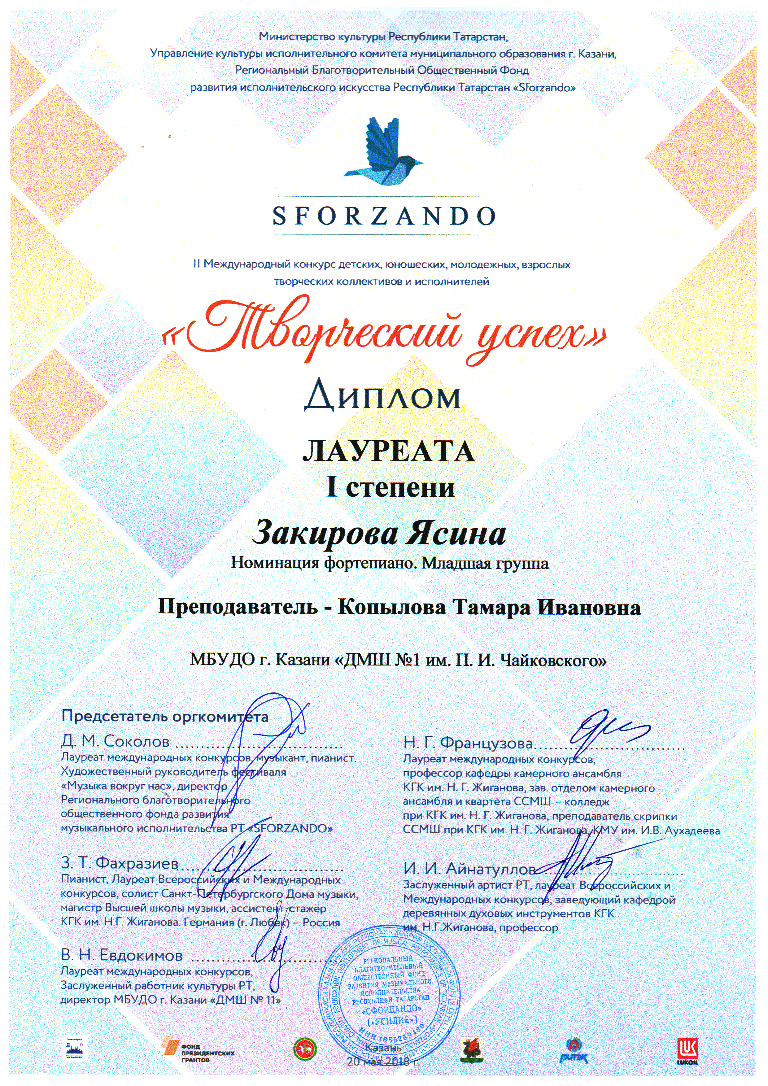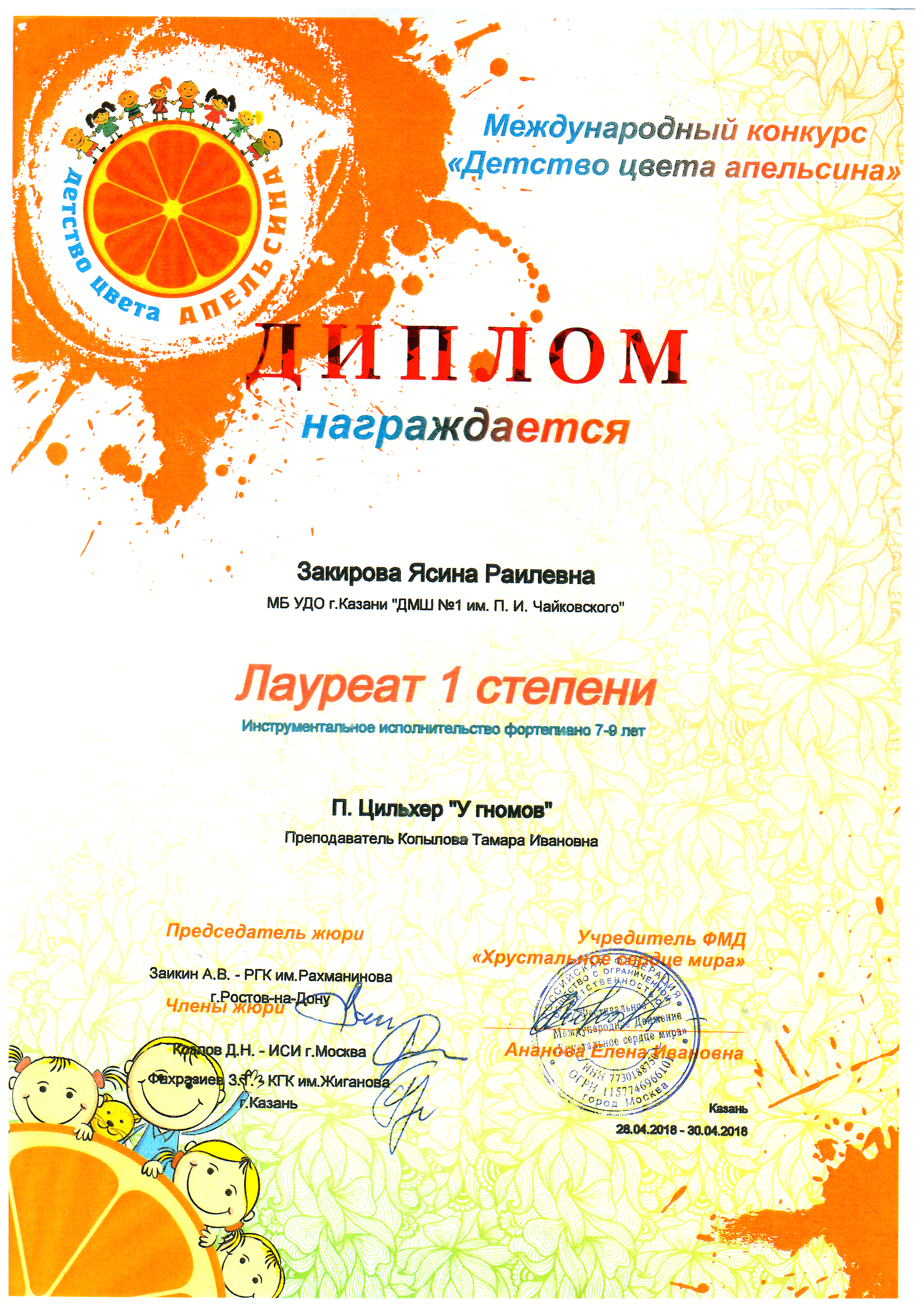 Международный конкурс "Детство цвета апельсина" - Закирова Ясина, Лауреат I степени;