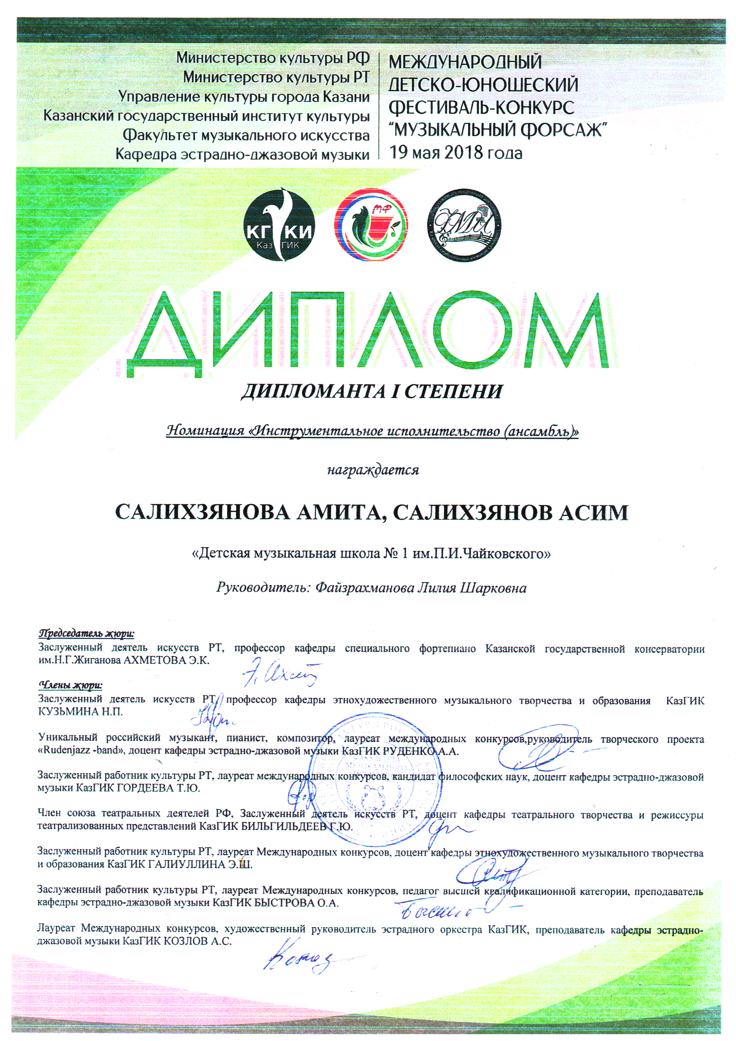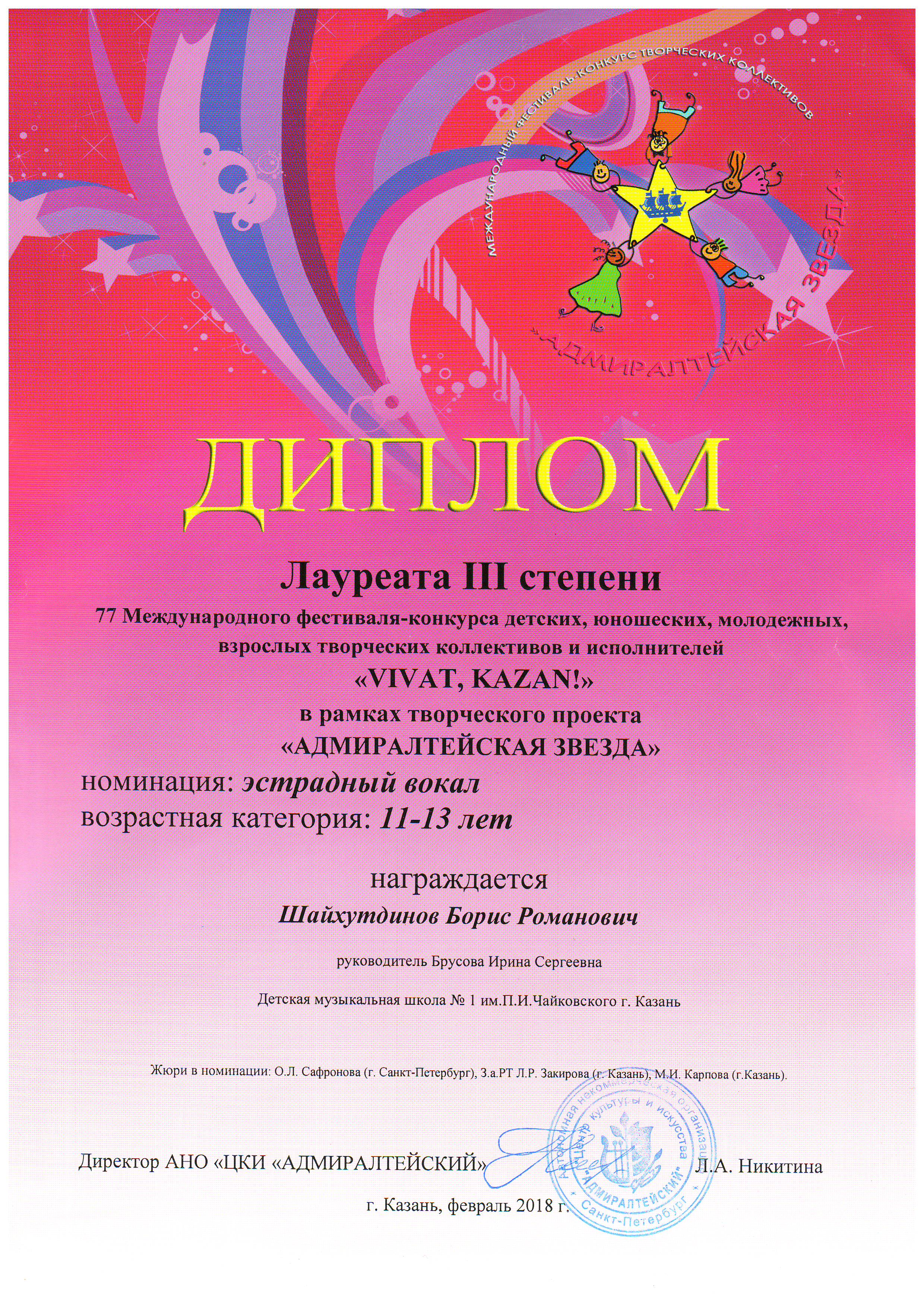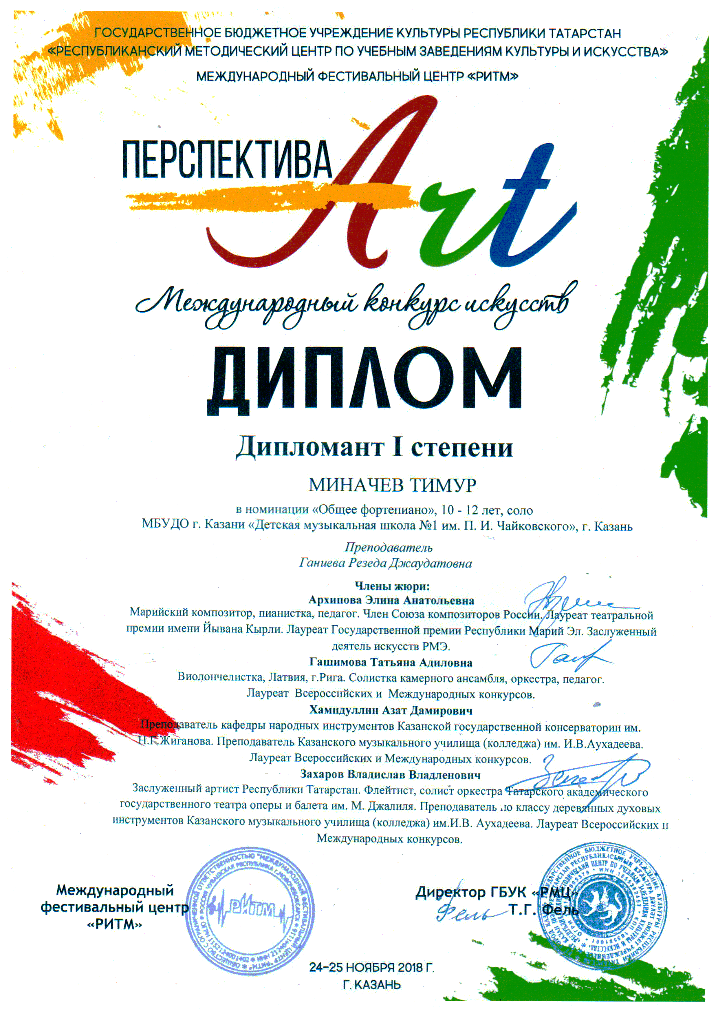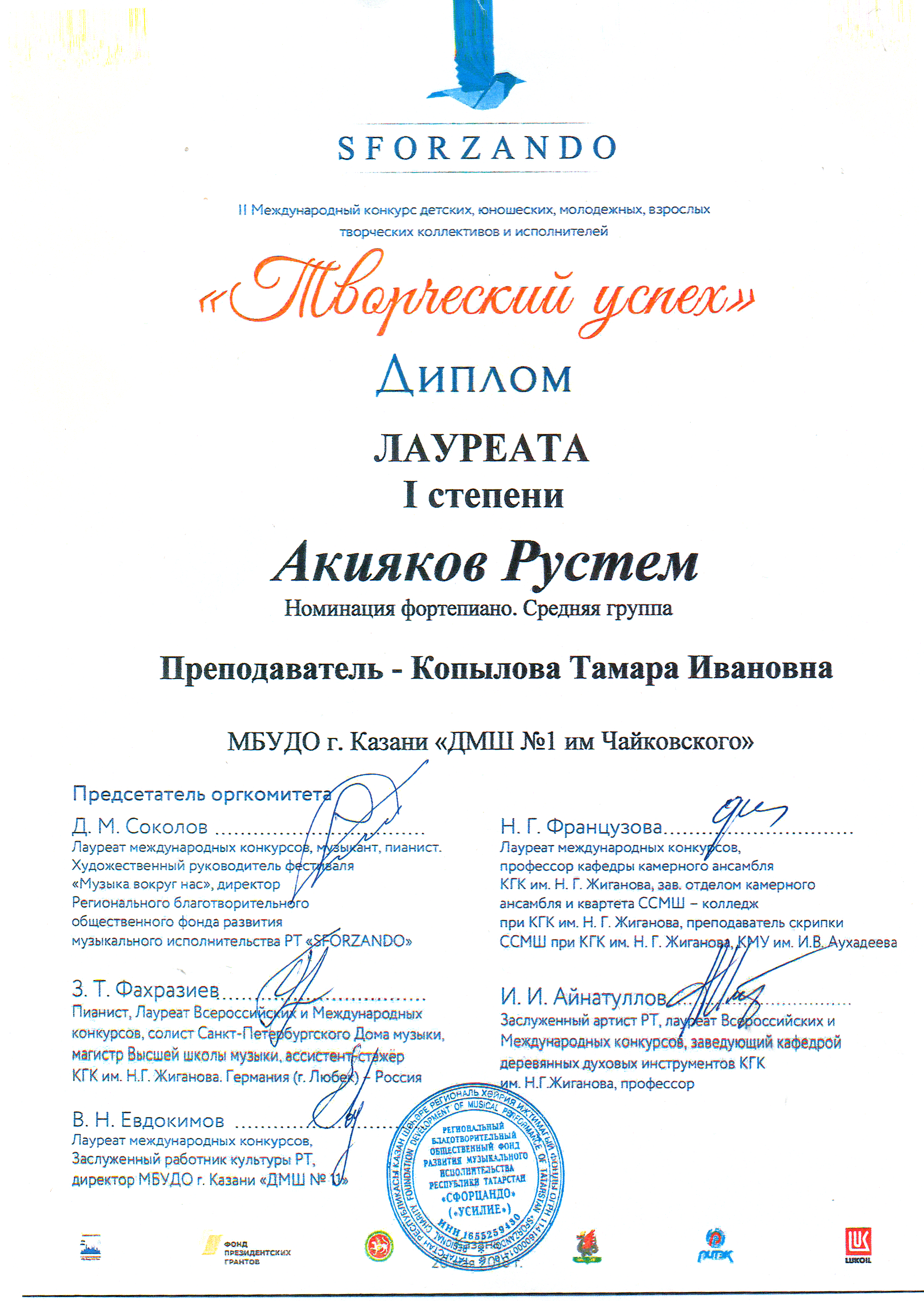 Международный фестиваль-конкурс "Взлёт" - Сабирзянов Роберт, Лауреат I степени;