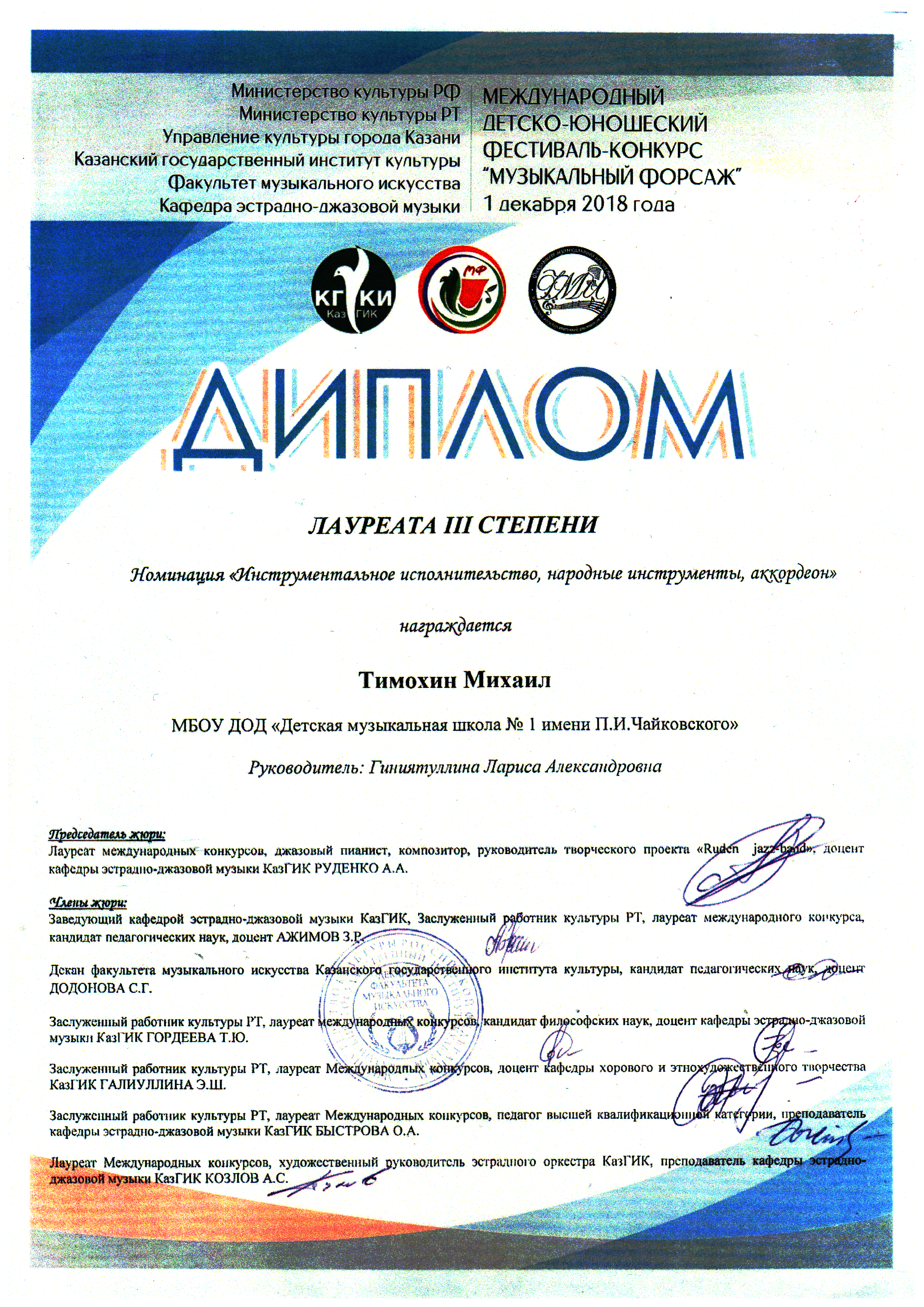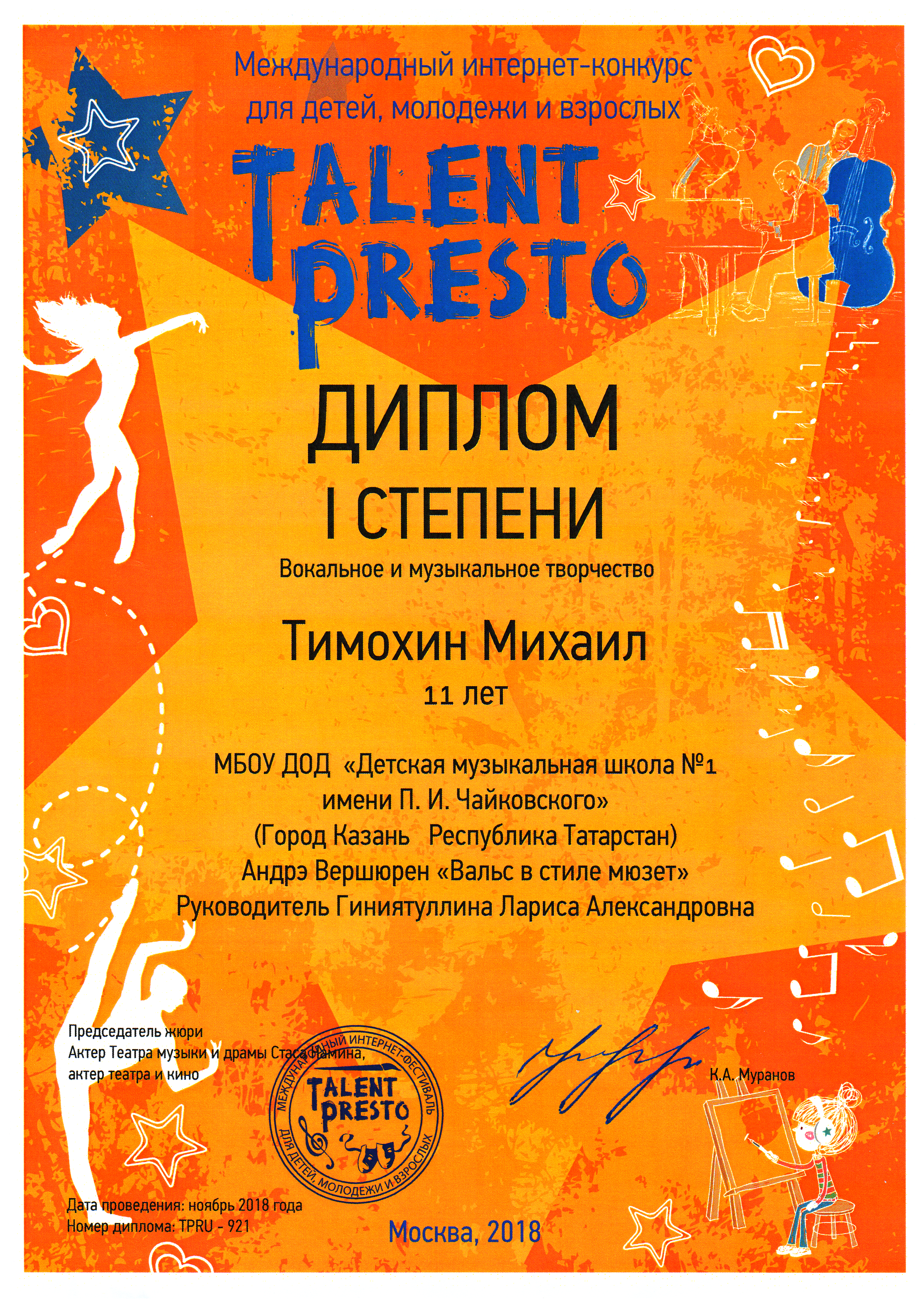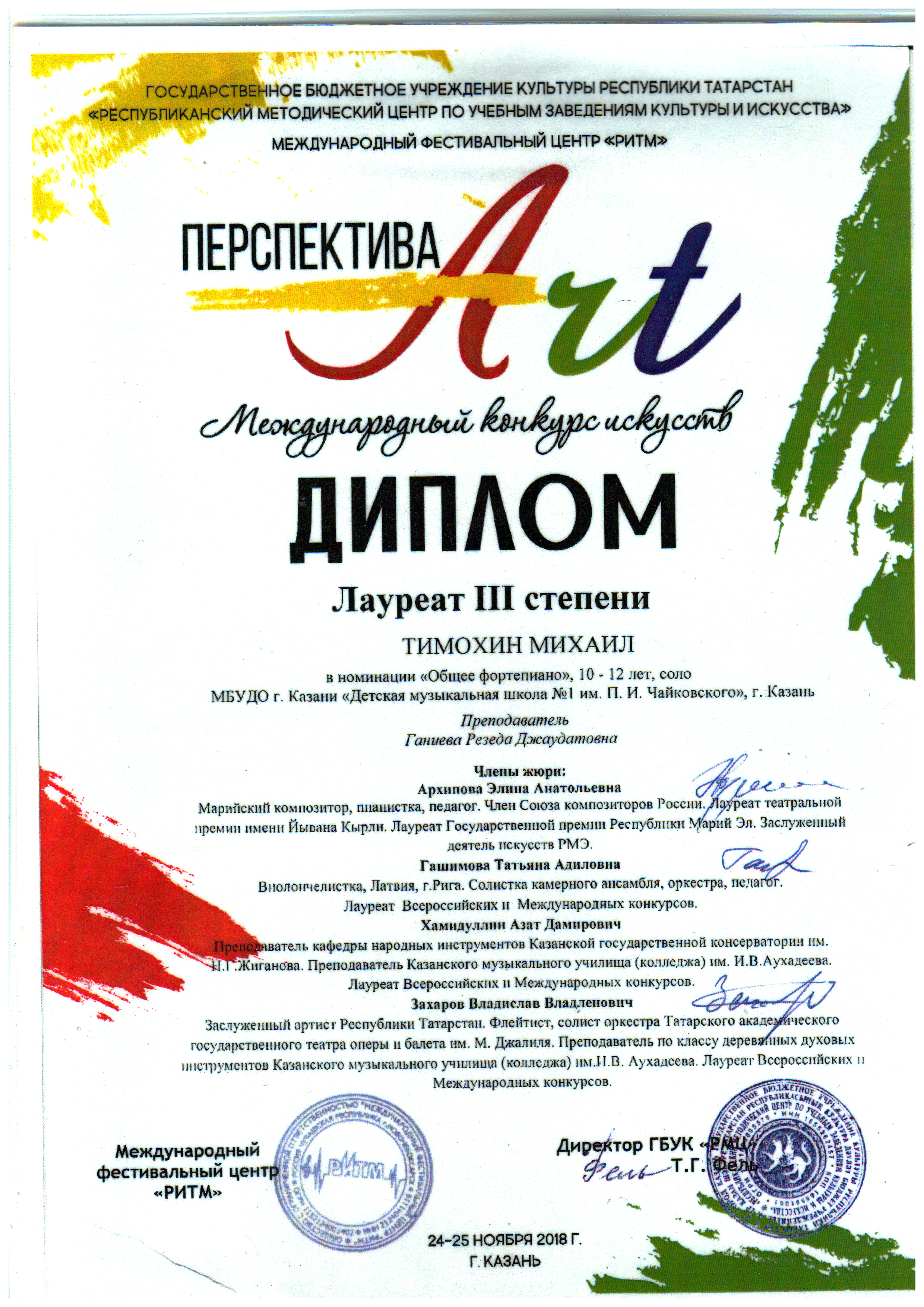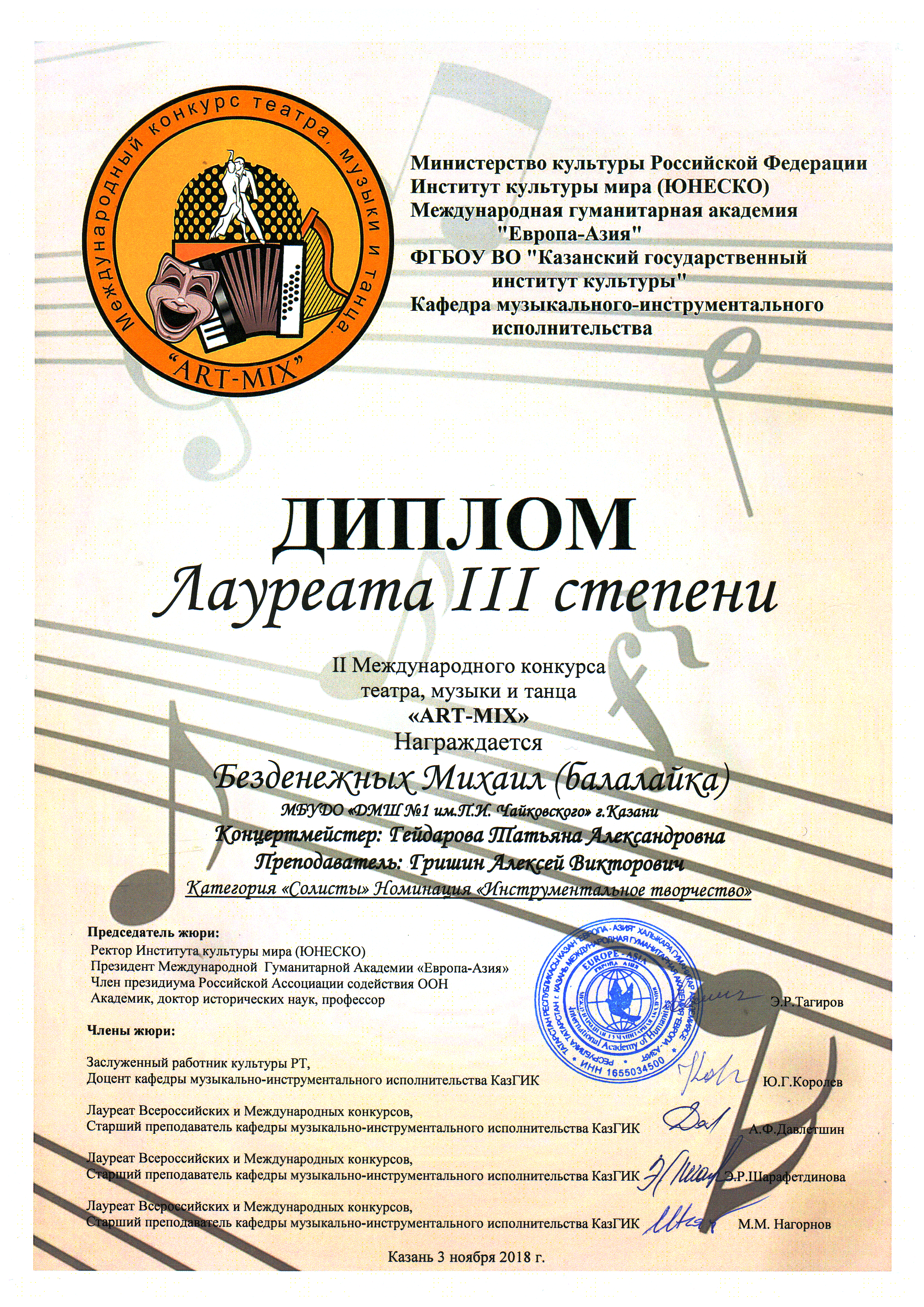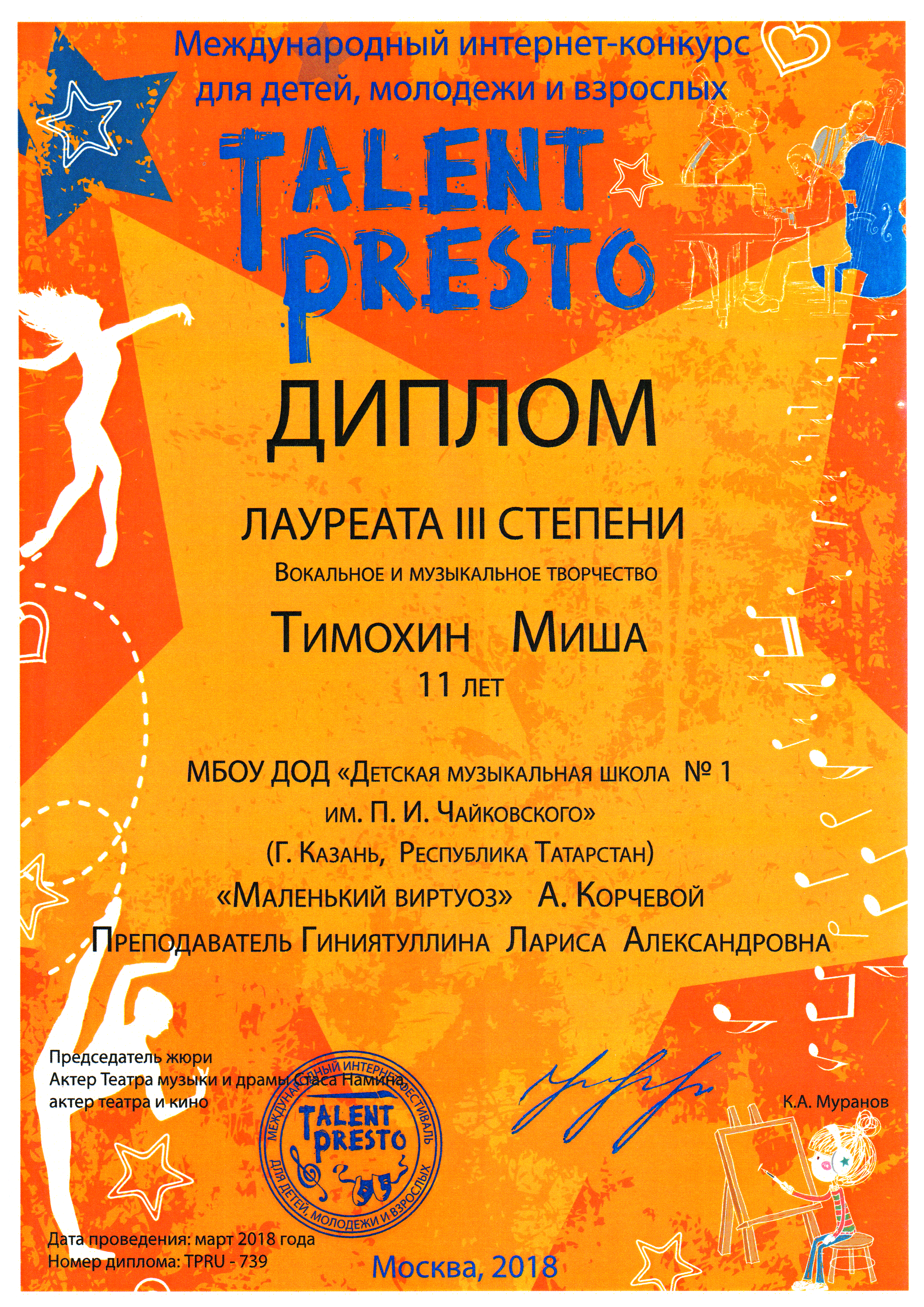 Третий Международный конкурс "Таланты России" - Галеев Роберт, Лауреат III степени;