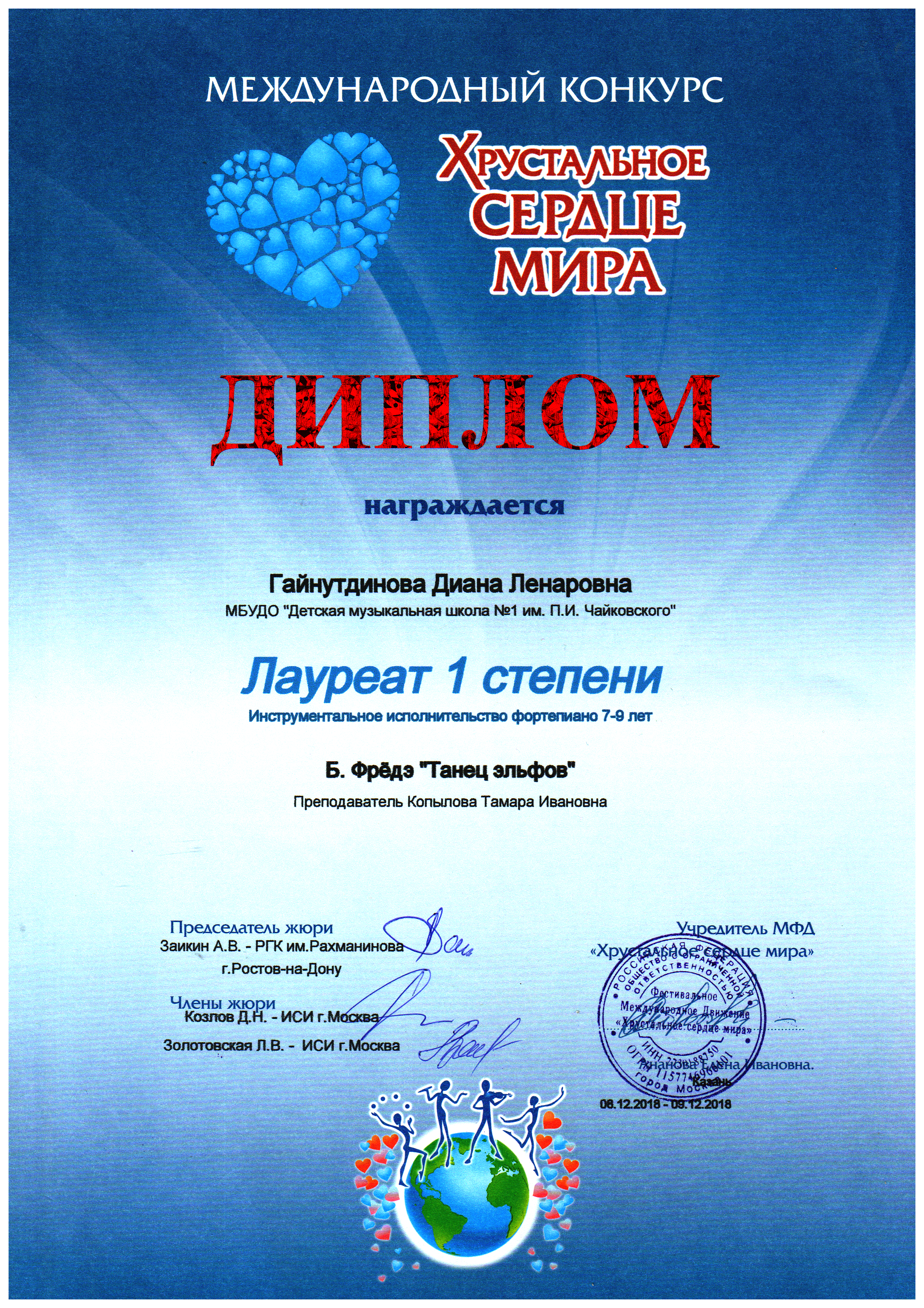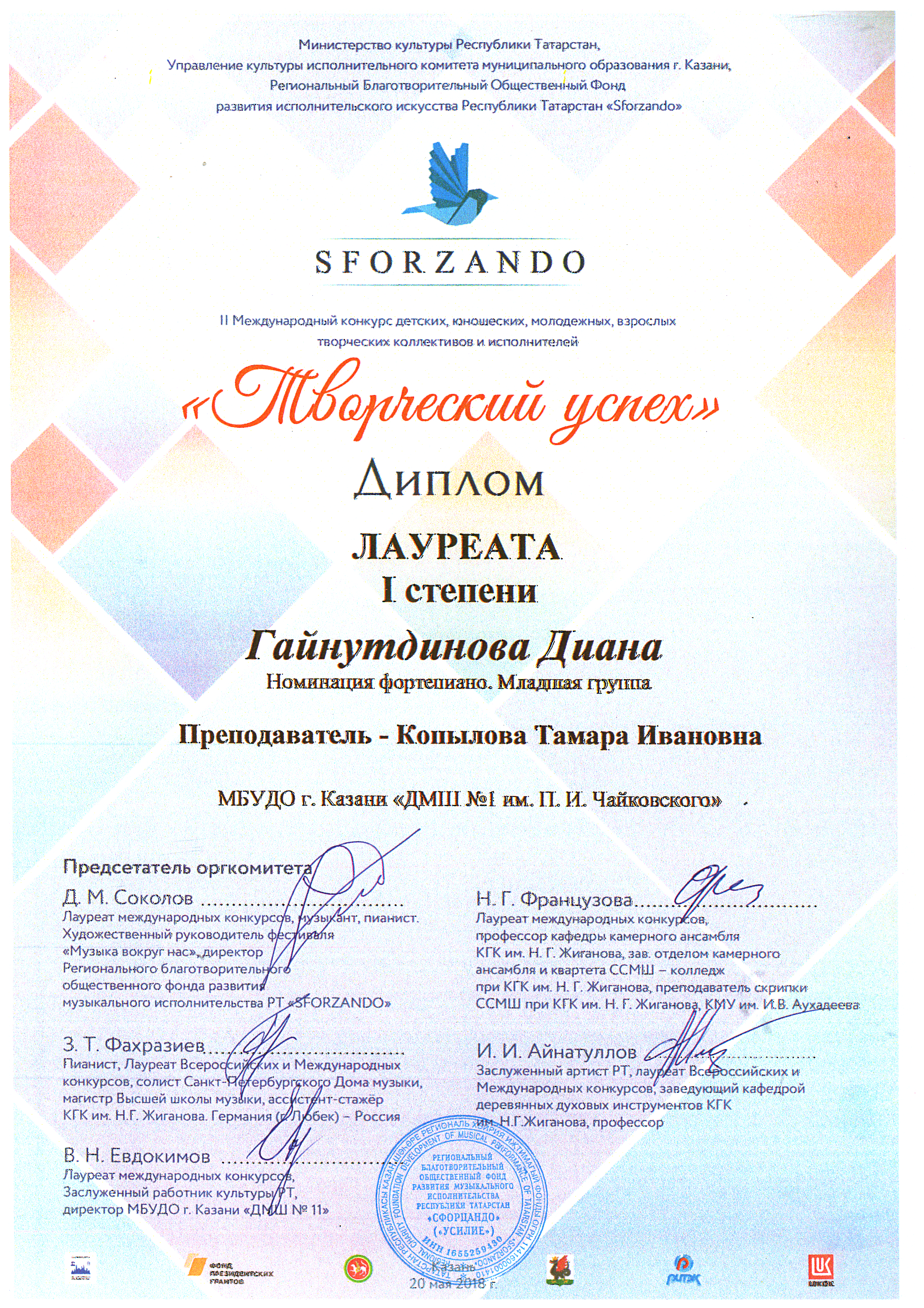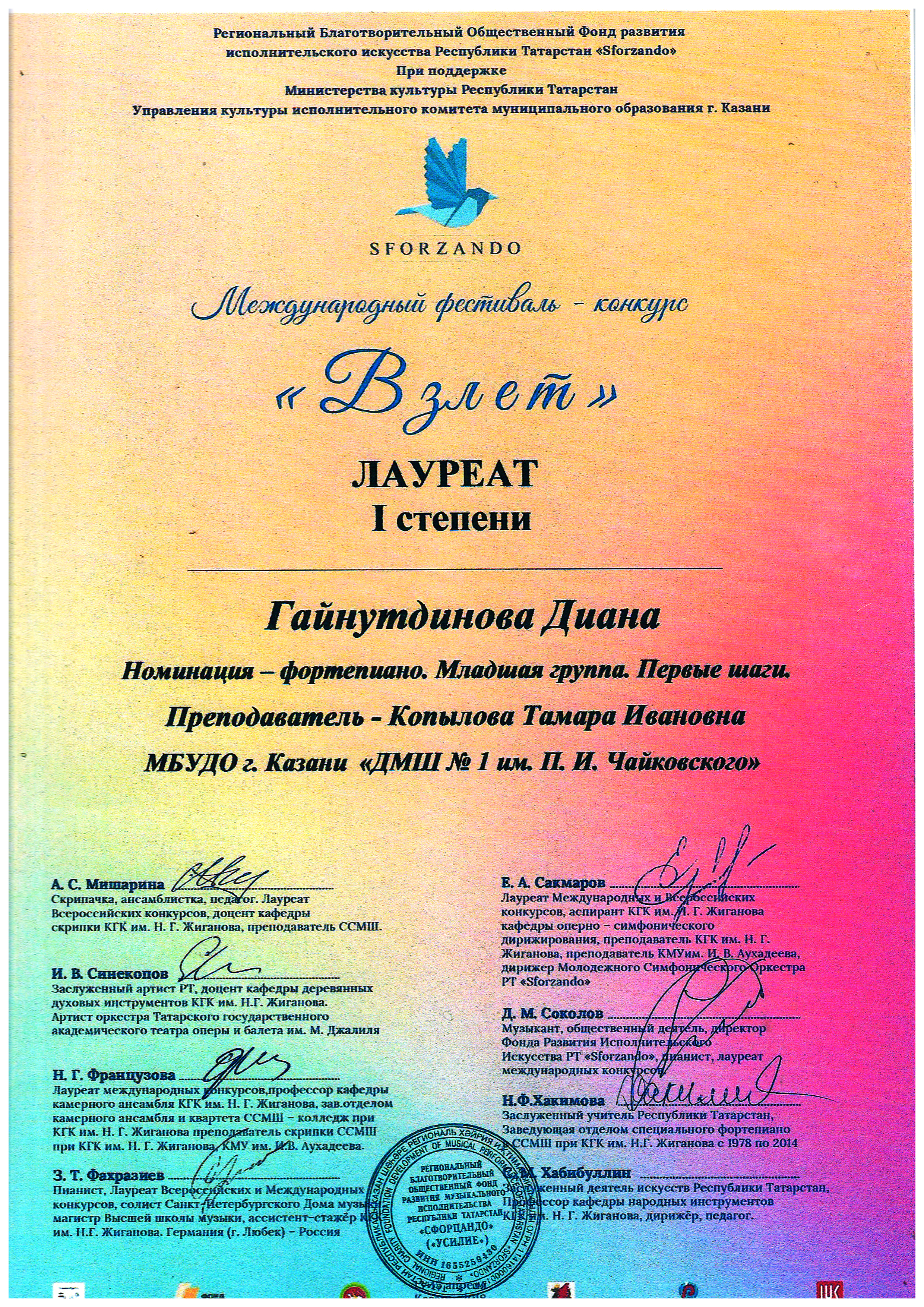 Международный фестиваль-конкурс "Взлёт" - Гайнутдинова Диана, Лауреат I степени;