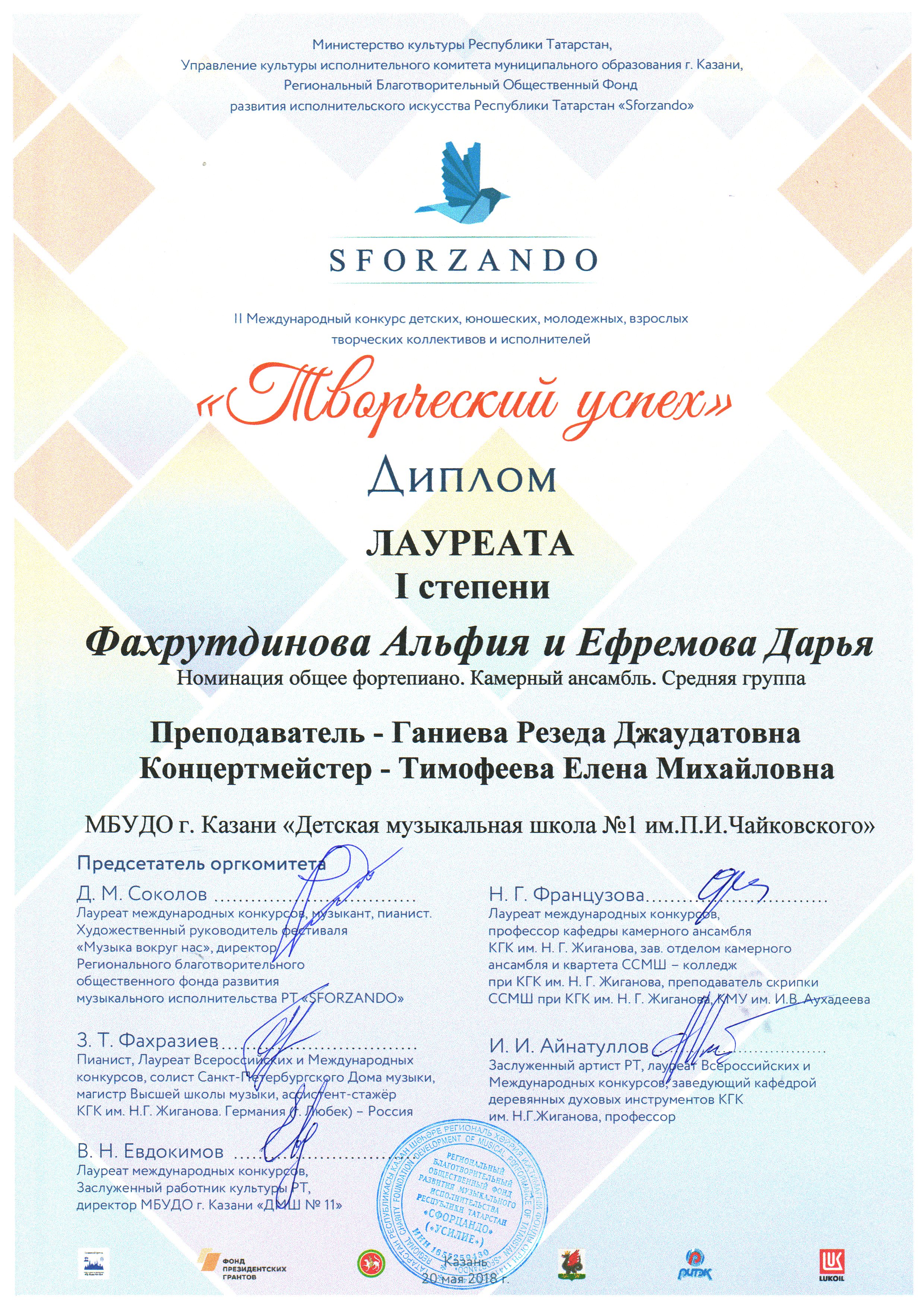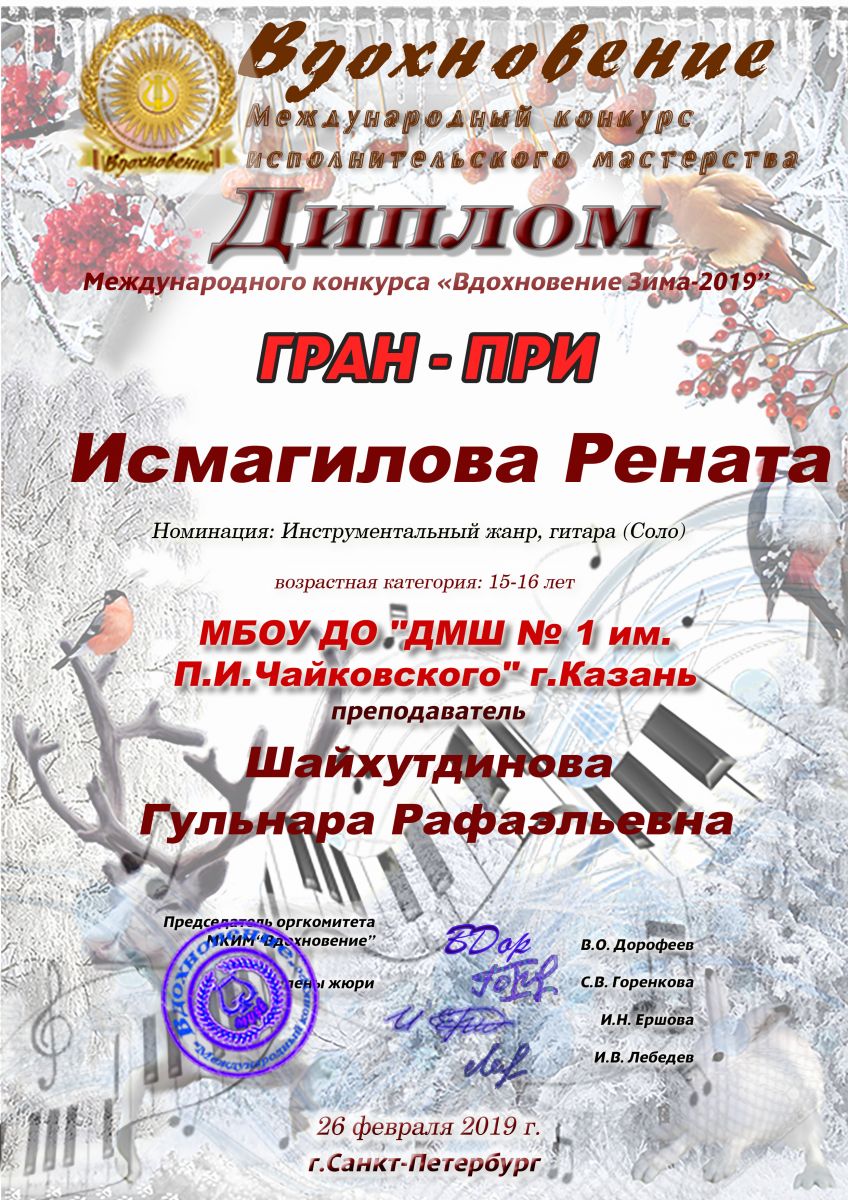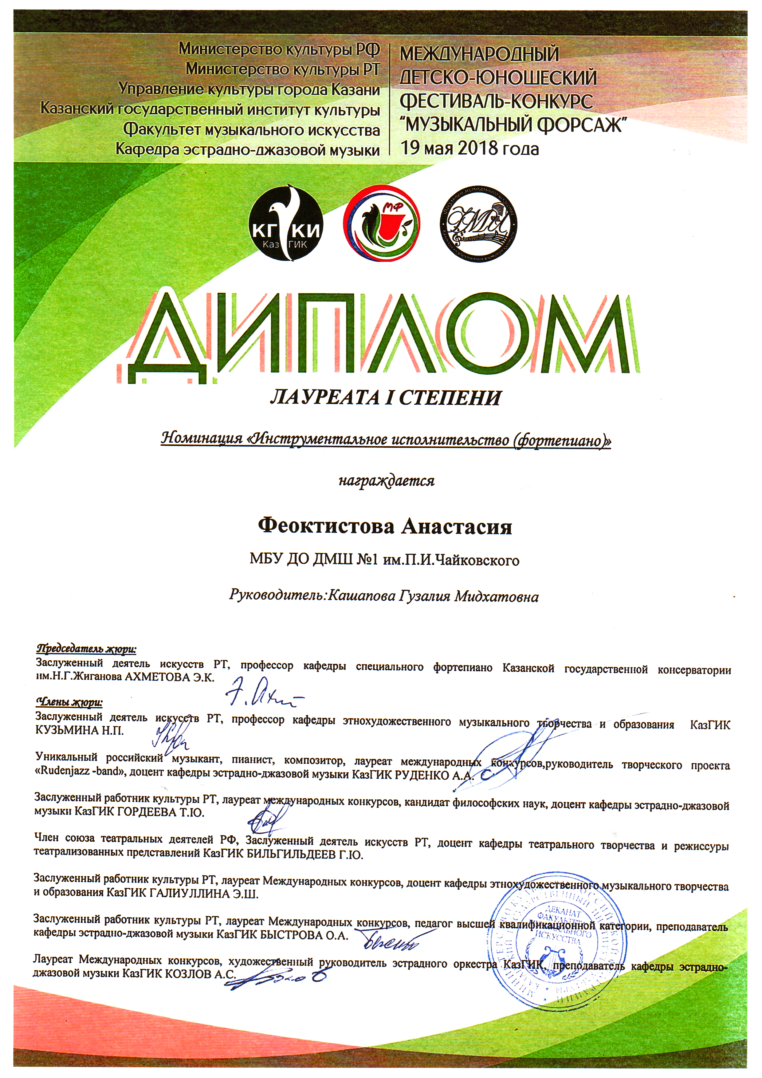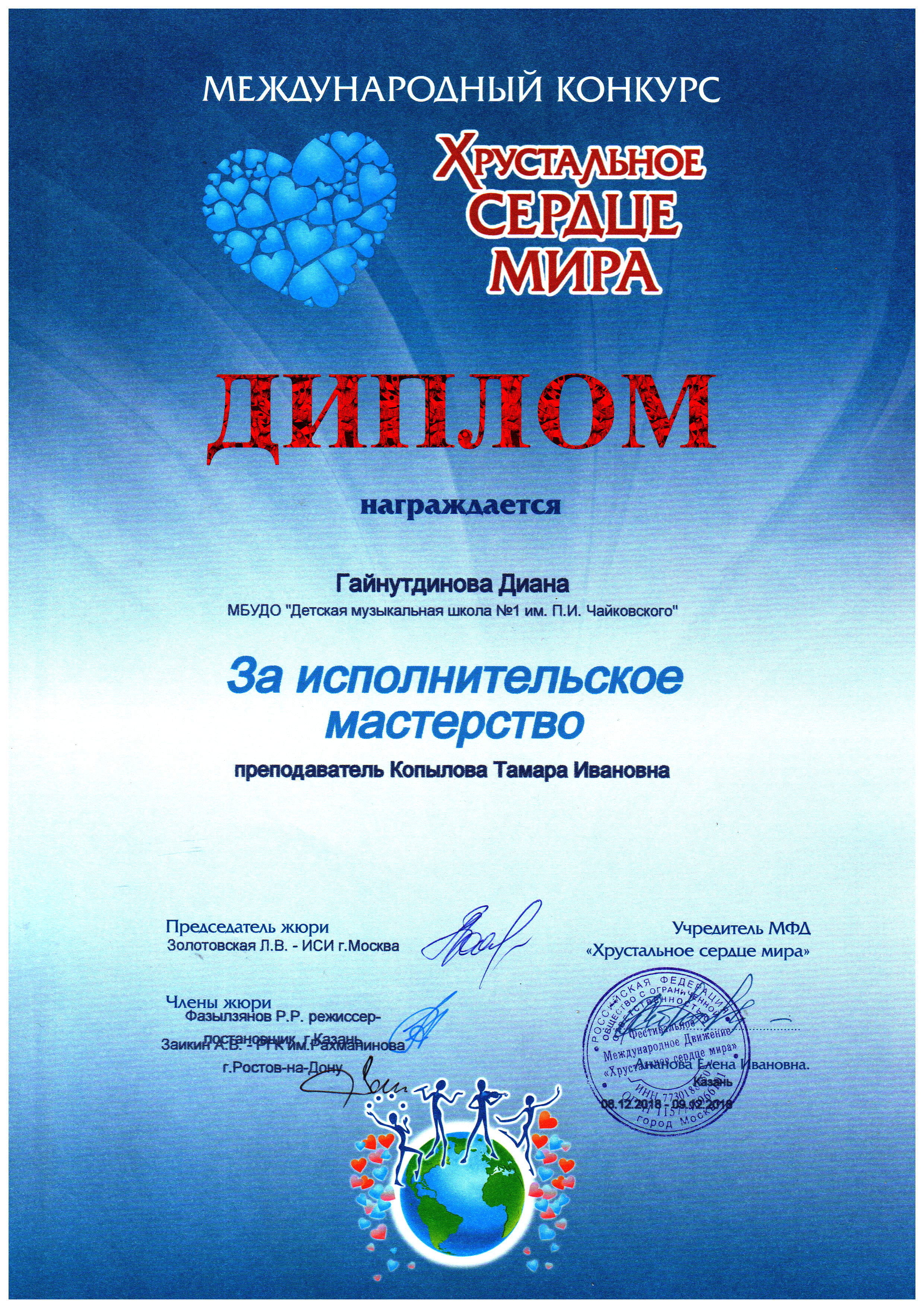 Международный фестиваль-конкурс "Взлёт" - Гайнутдинова Диана, Лауреат I степени;