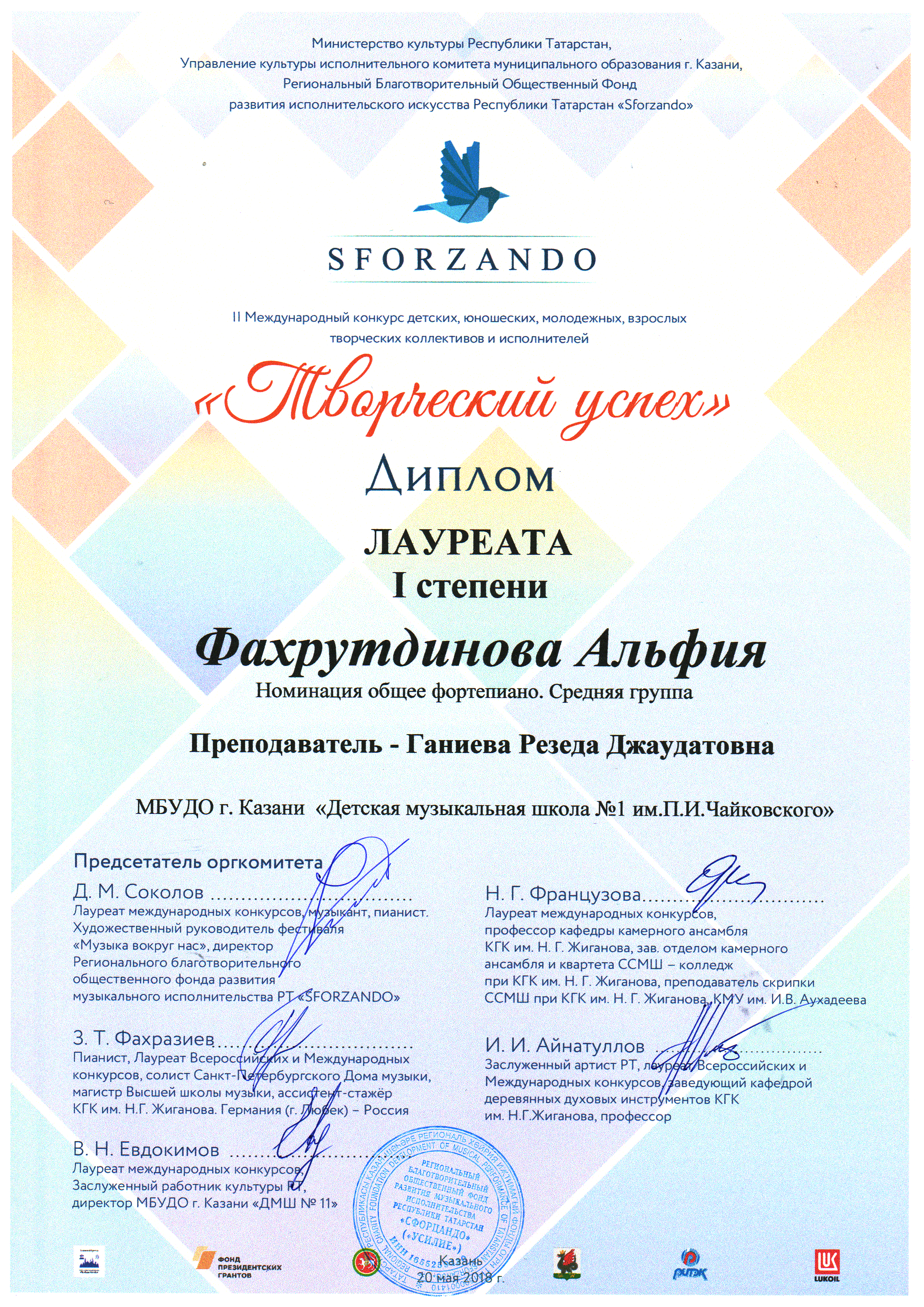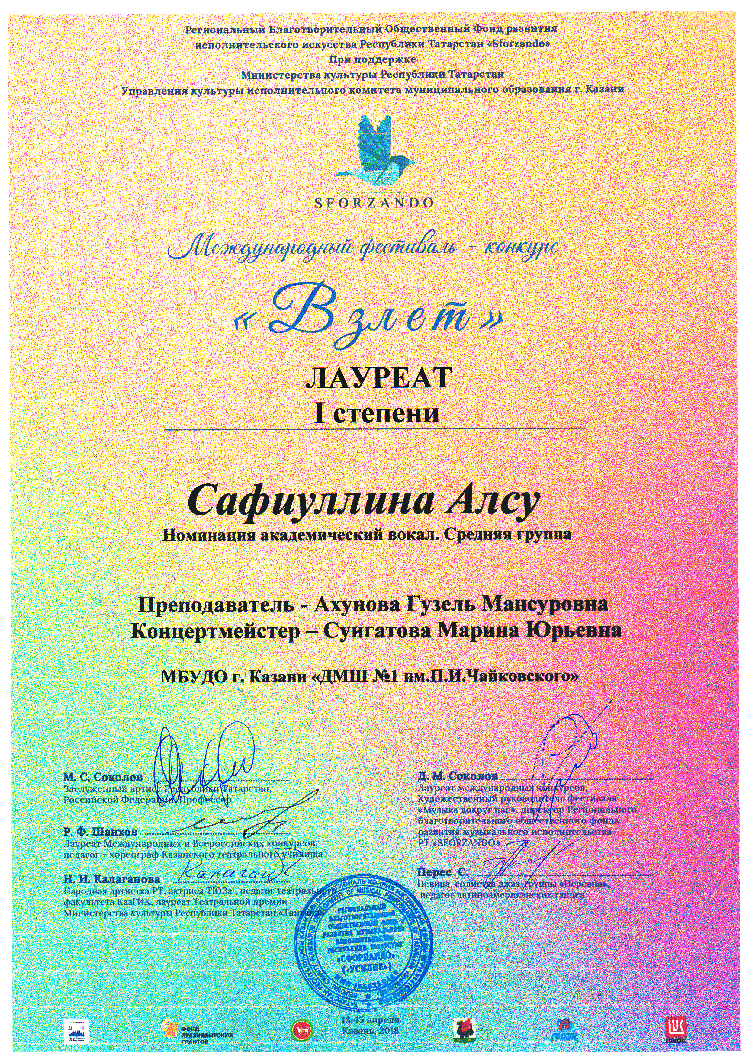 Международный фестиваль-конкурс "Взлёт" - Сафиуллина, Лауреат I степени;