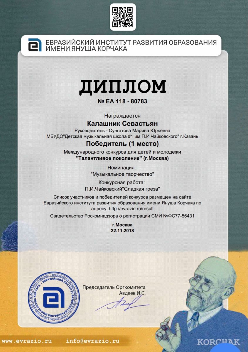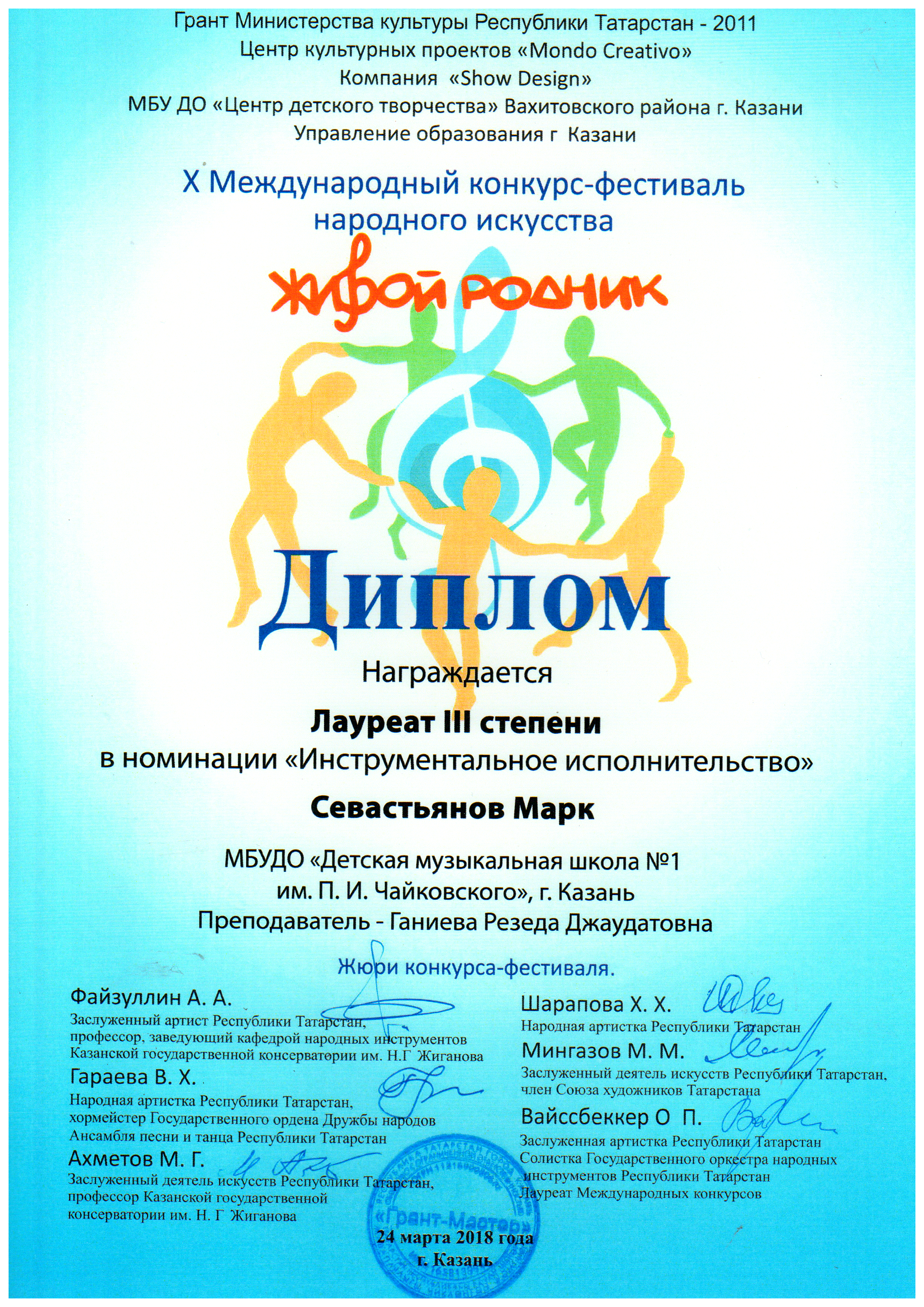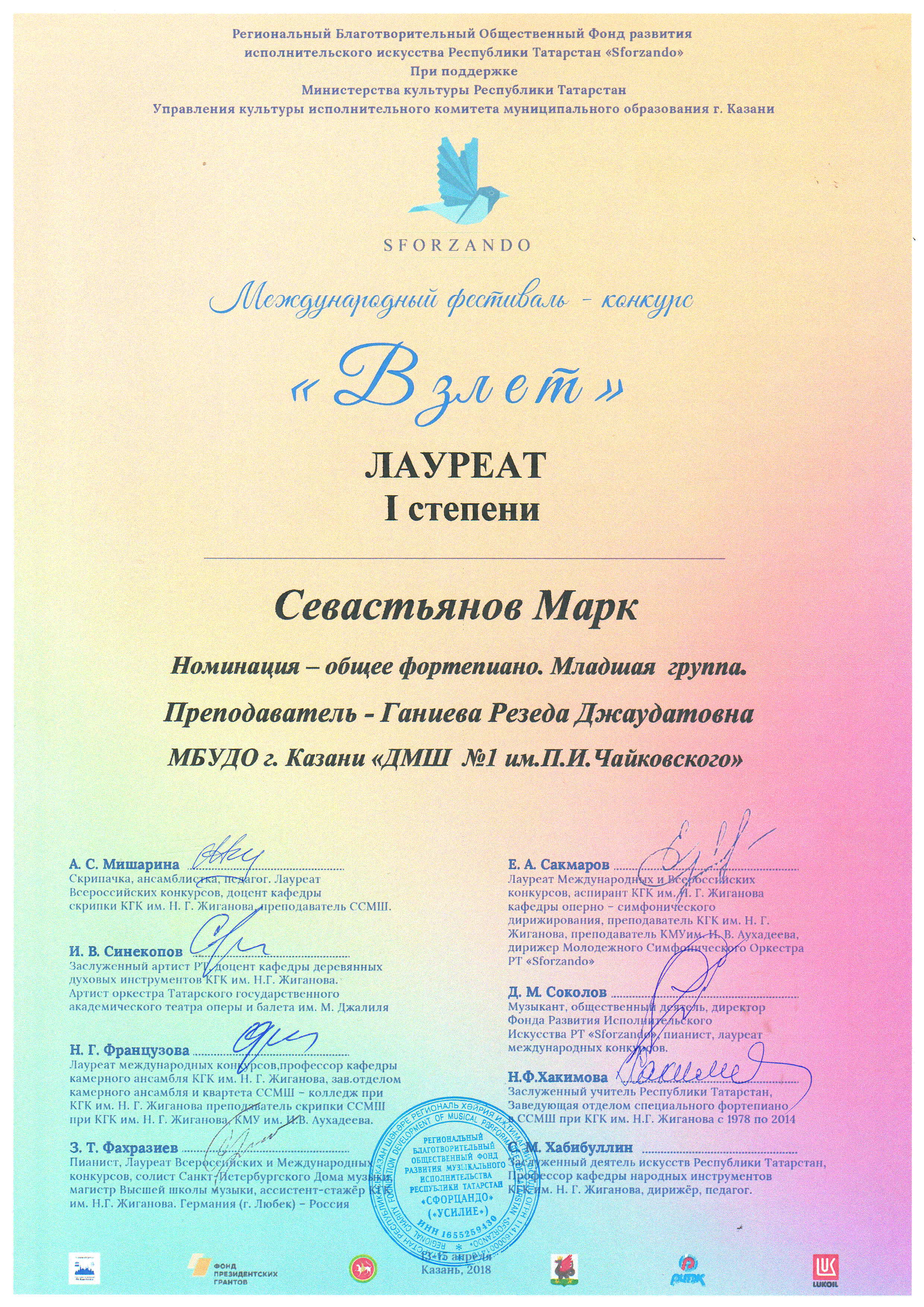 Международный фестиваль-конкурс "Взлёт" - Севастьянов Марк, Лауреат I степени;