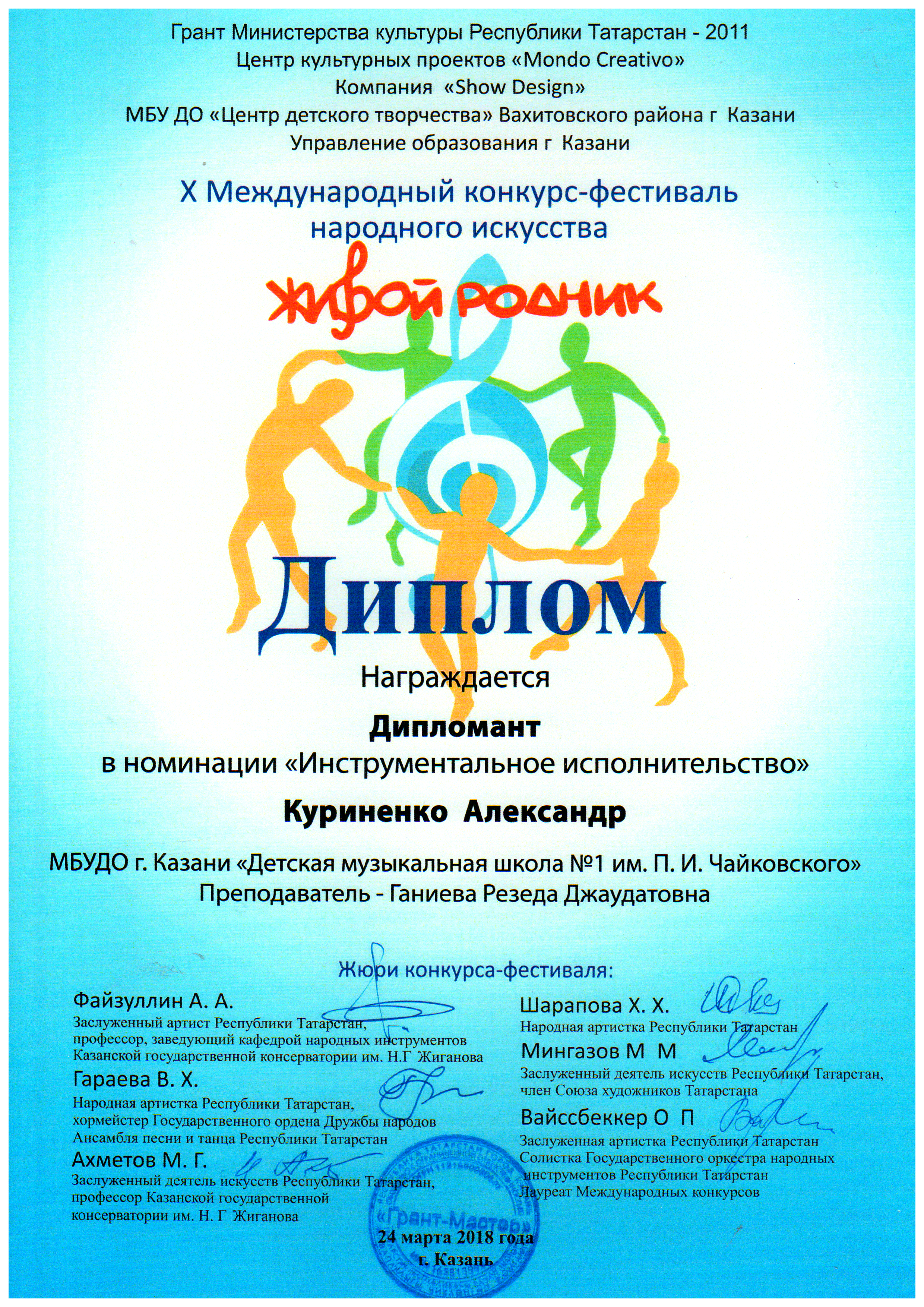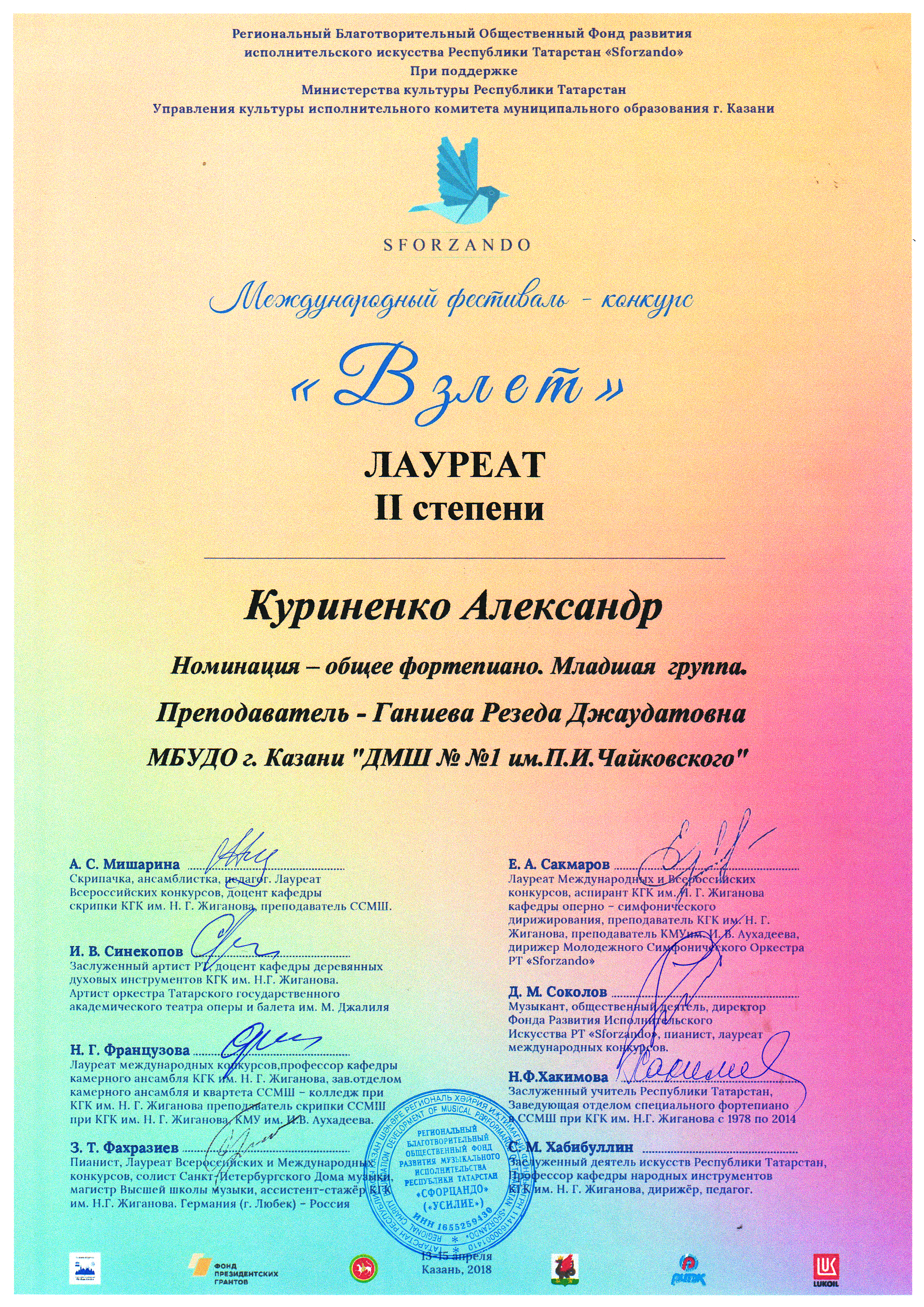 Международный фестиваль-конкурс "Взлёт" - Куриненко Александр, Лауреат II степени;
