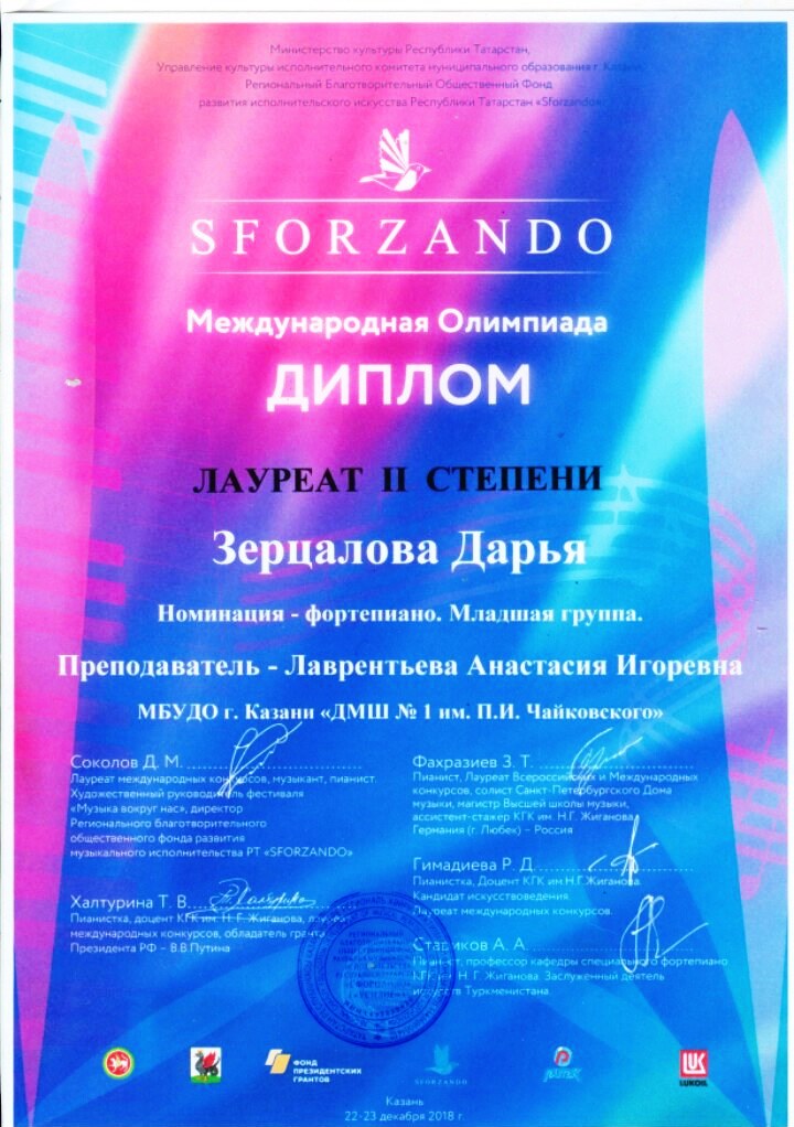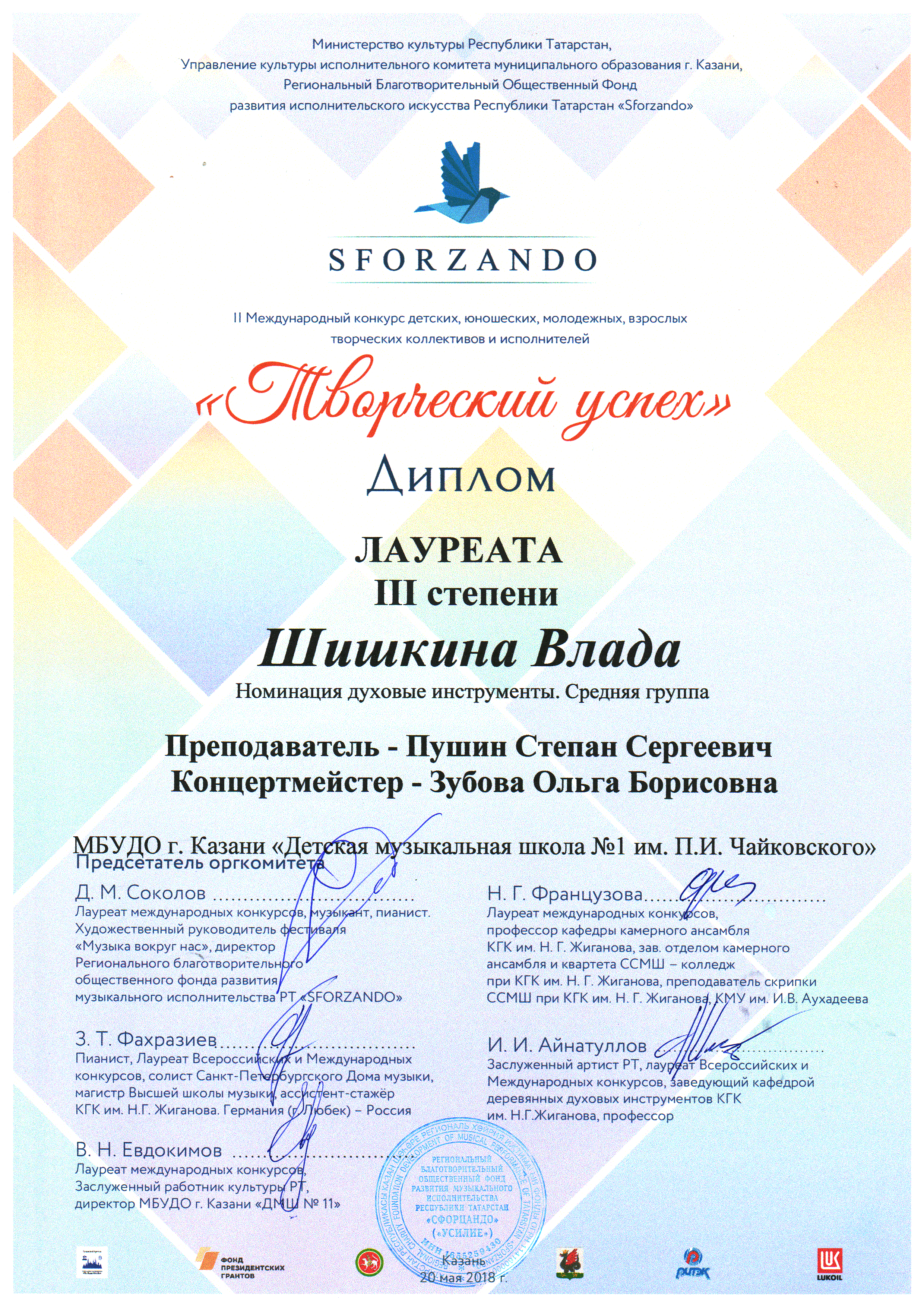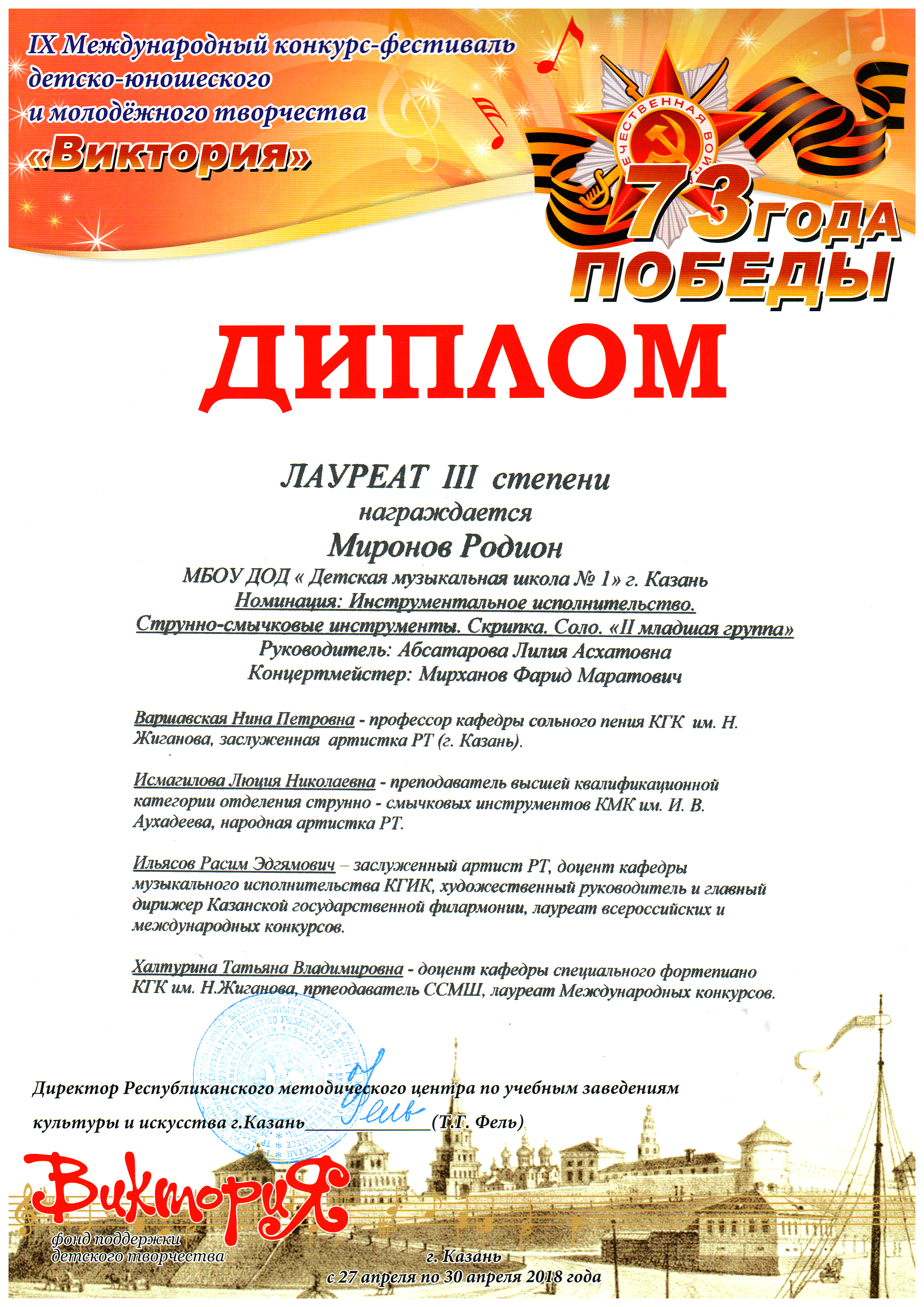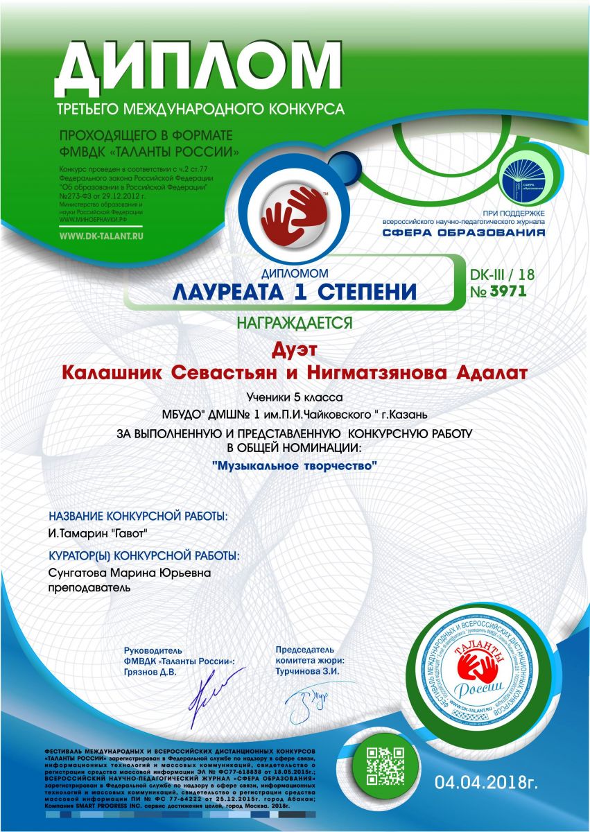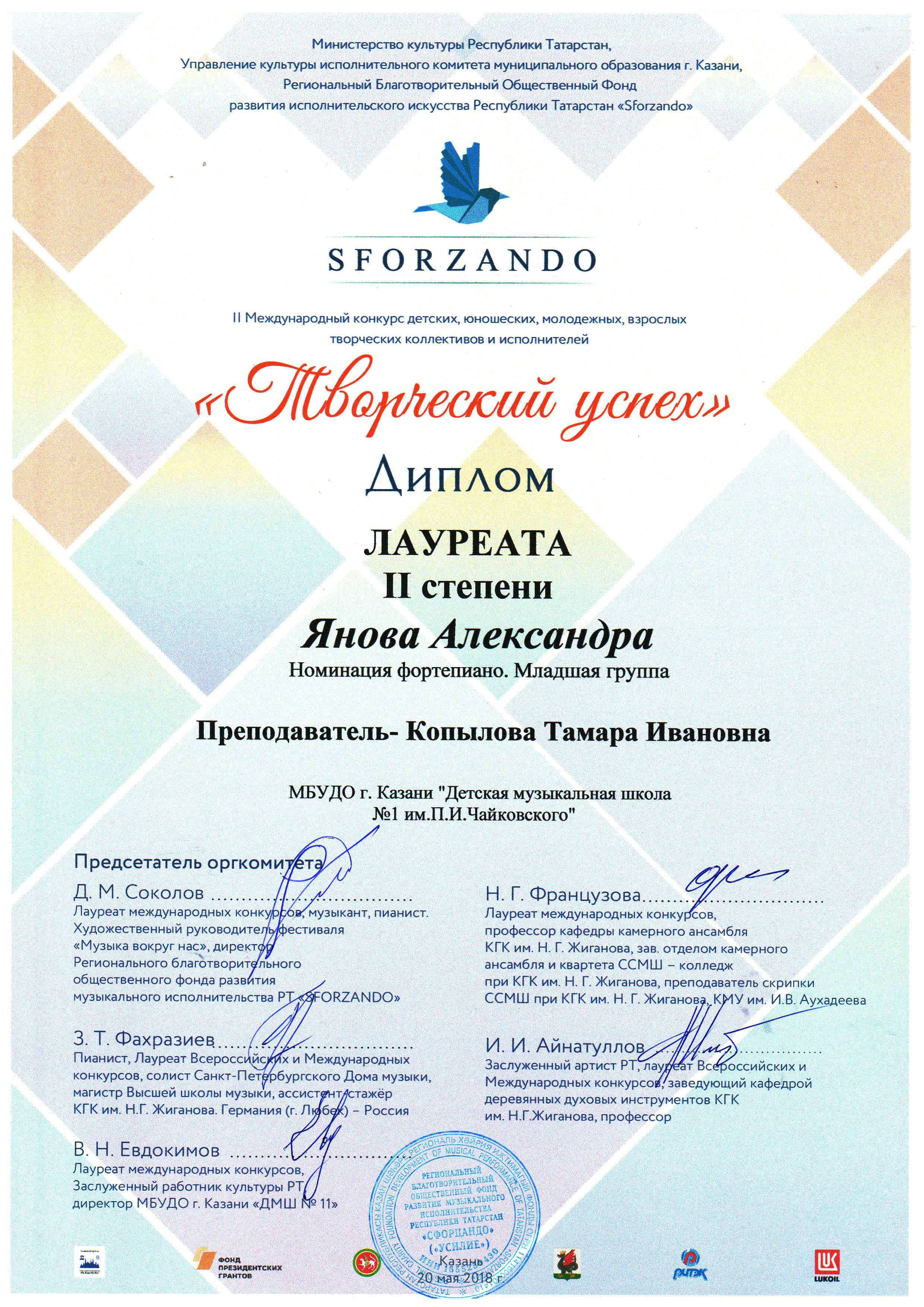 Второй Международный конкурс "Таланты России" - Сингатуллина Эмилия, Лауреат III степени;