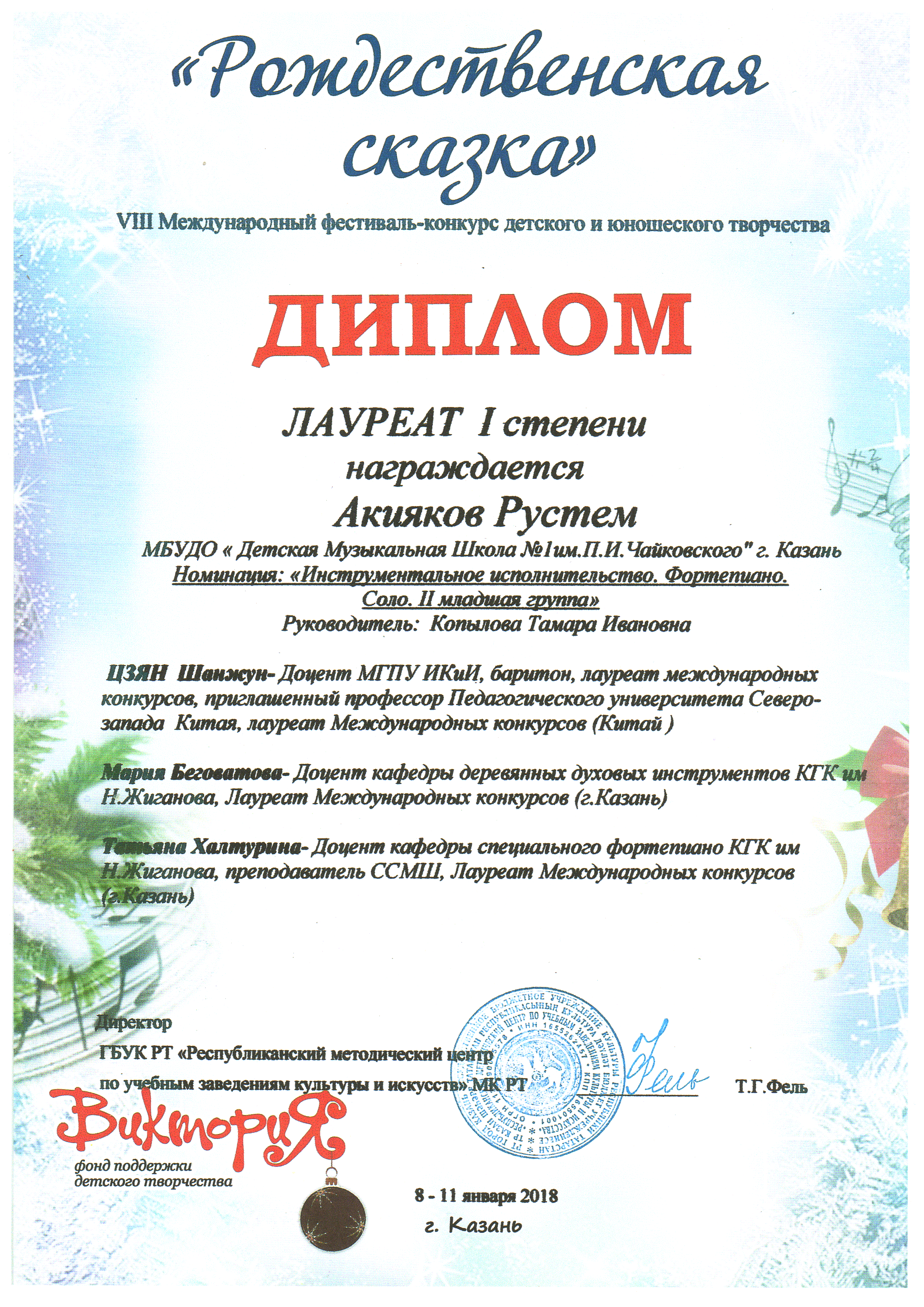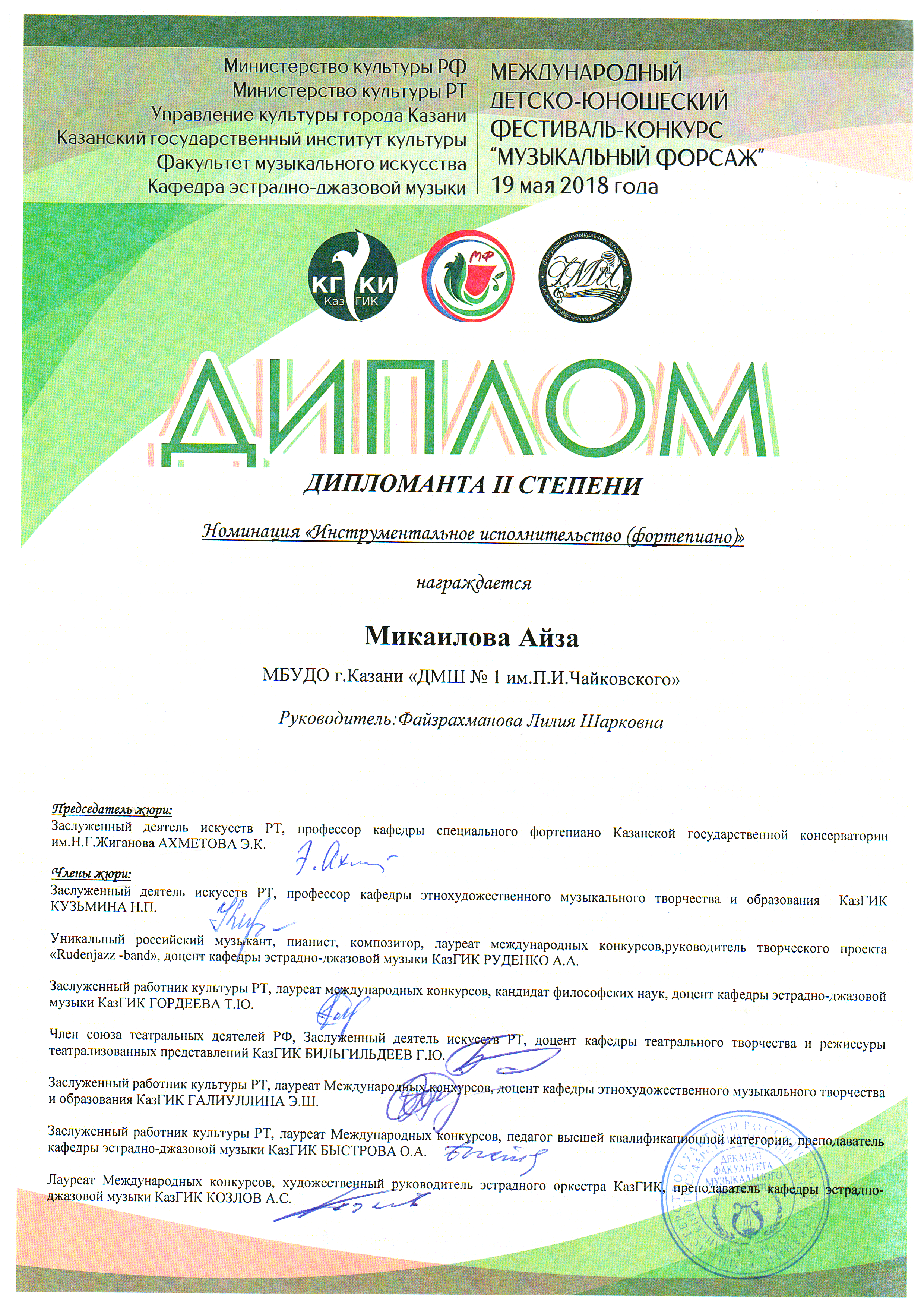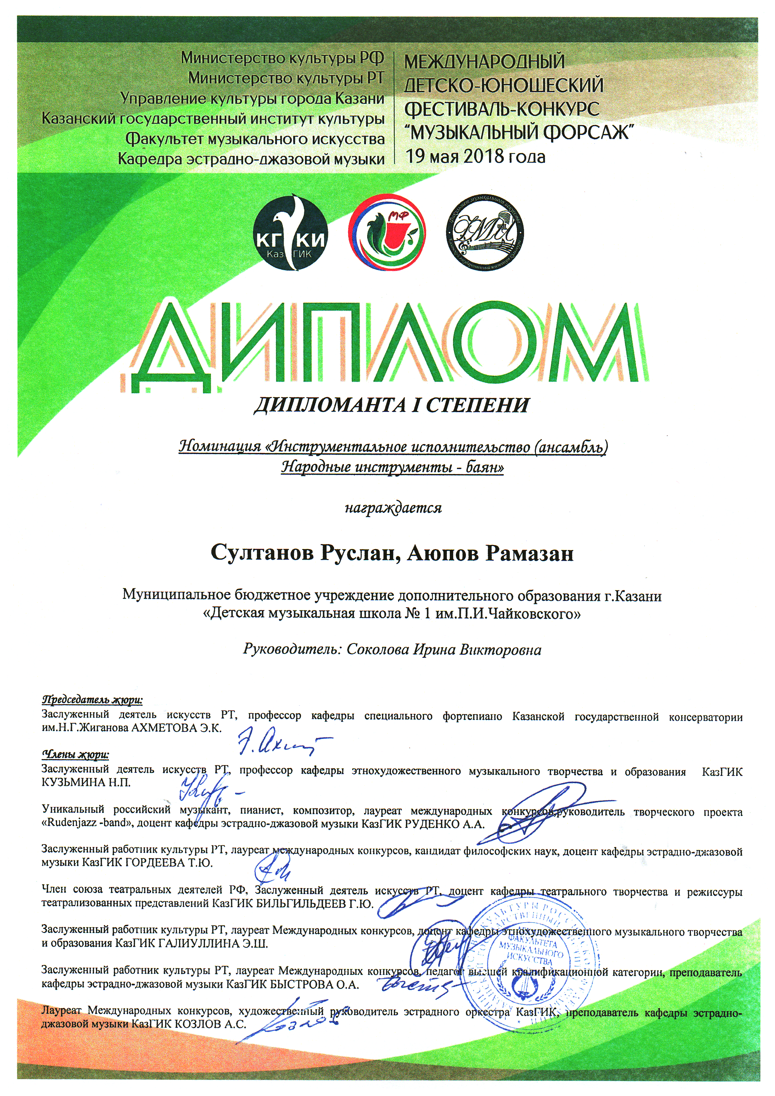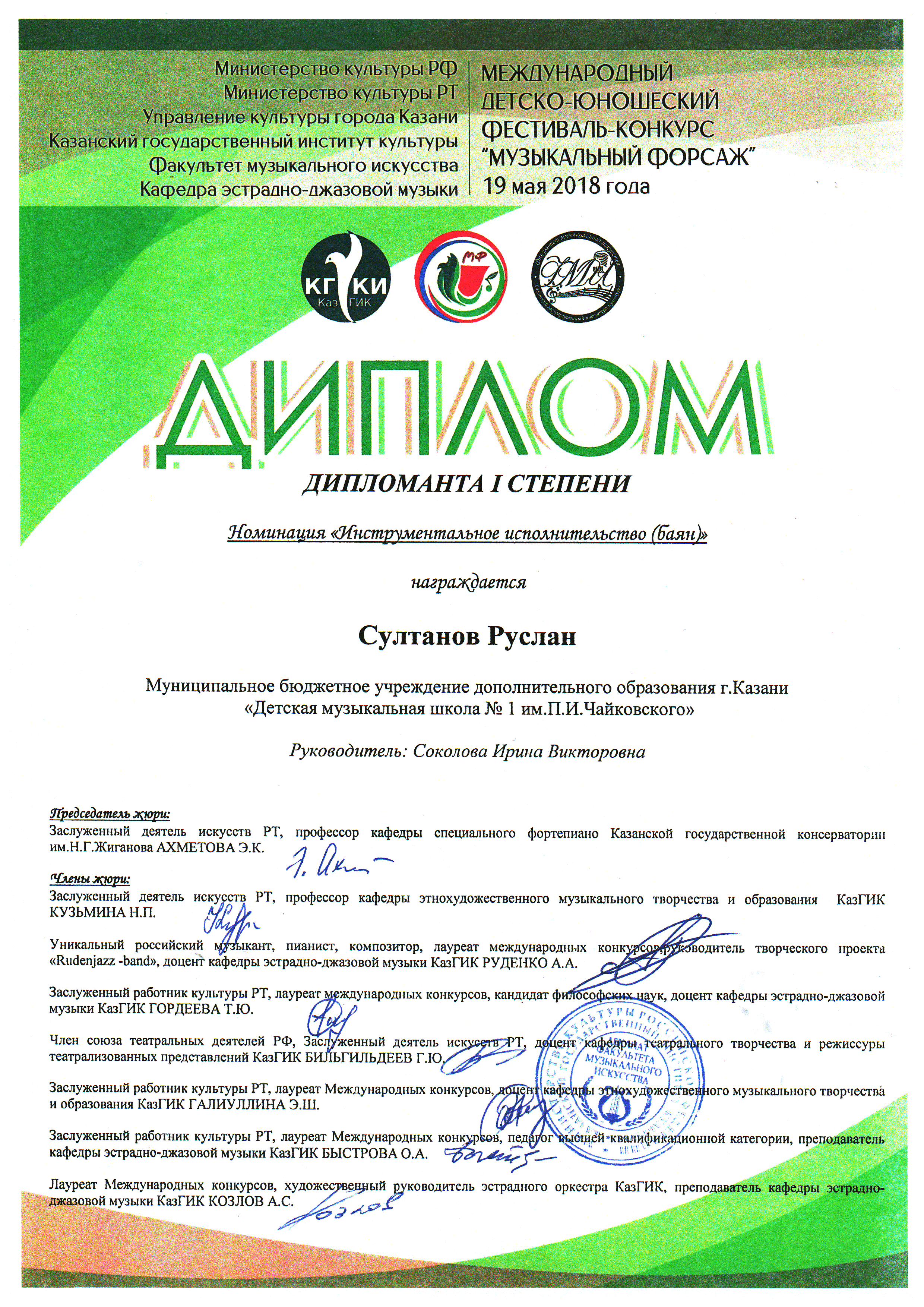| Короткое название: | МБУДО "Детская музыкальная школа №1 им. П.И. Чайковского" г.Казани |