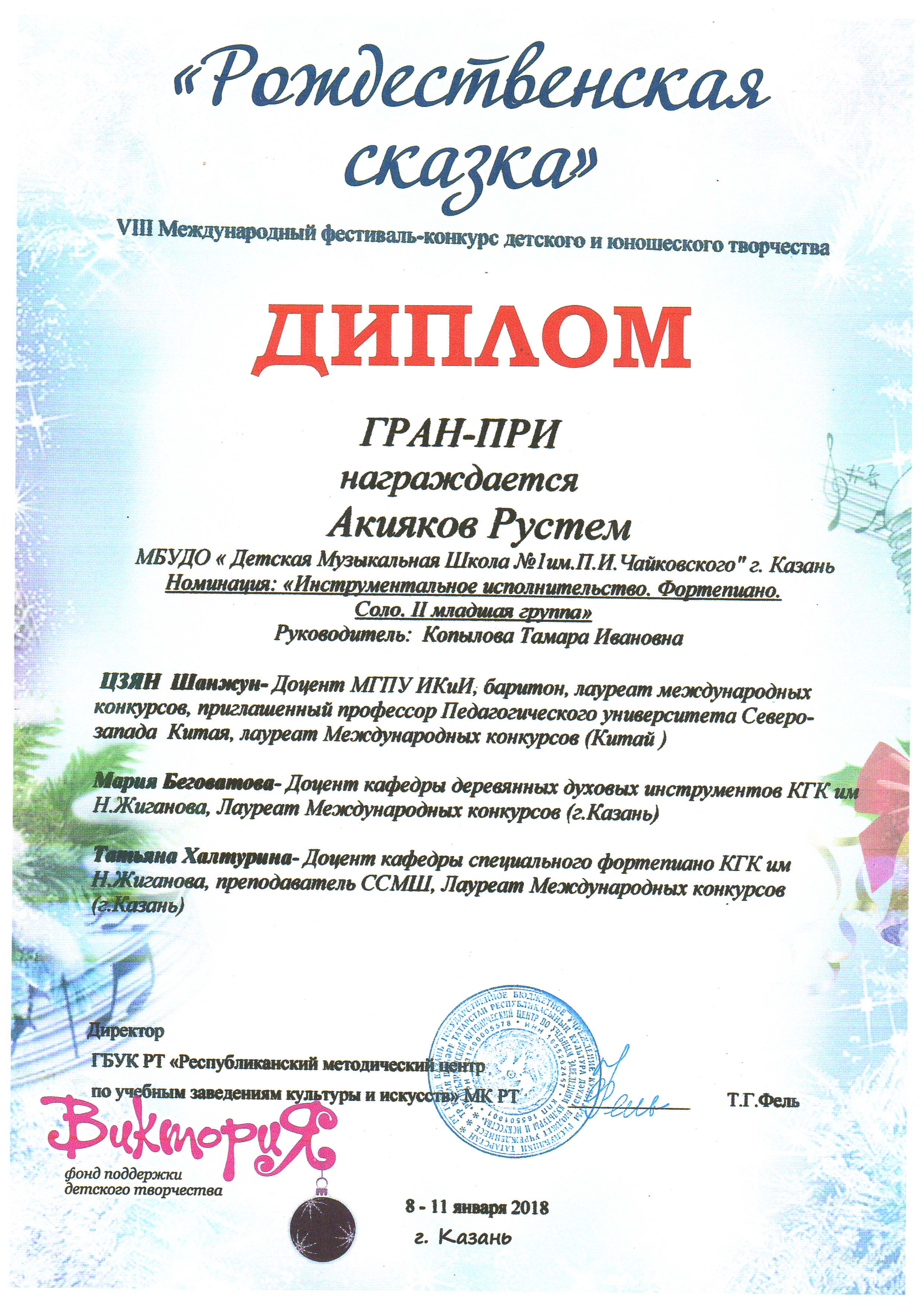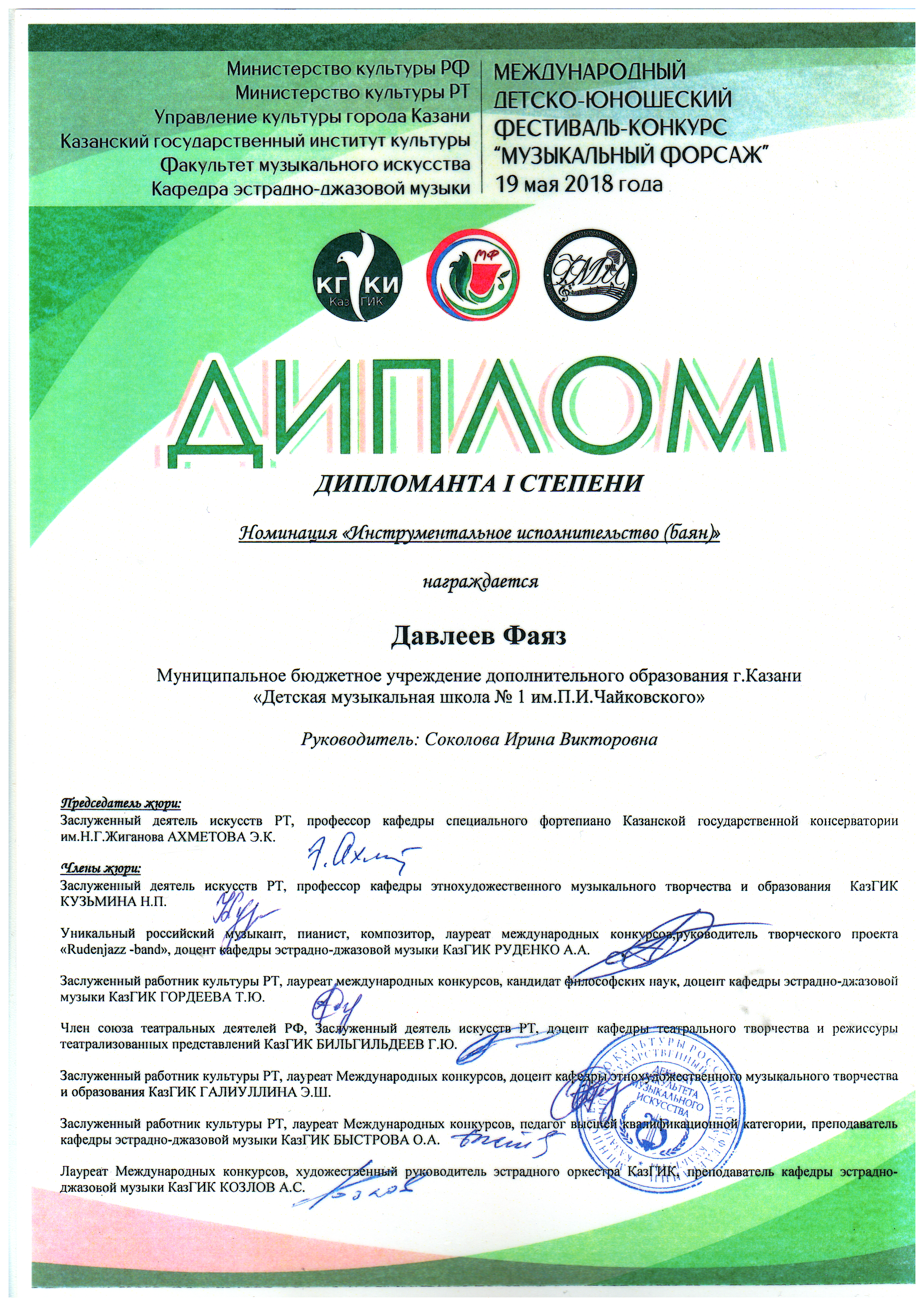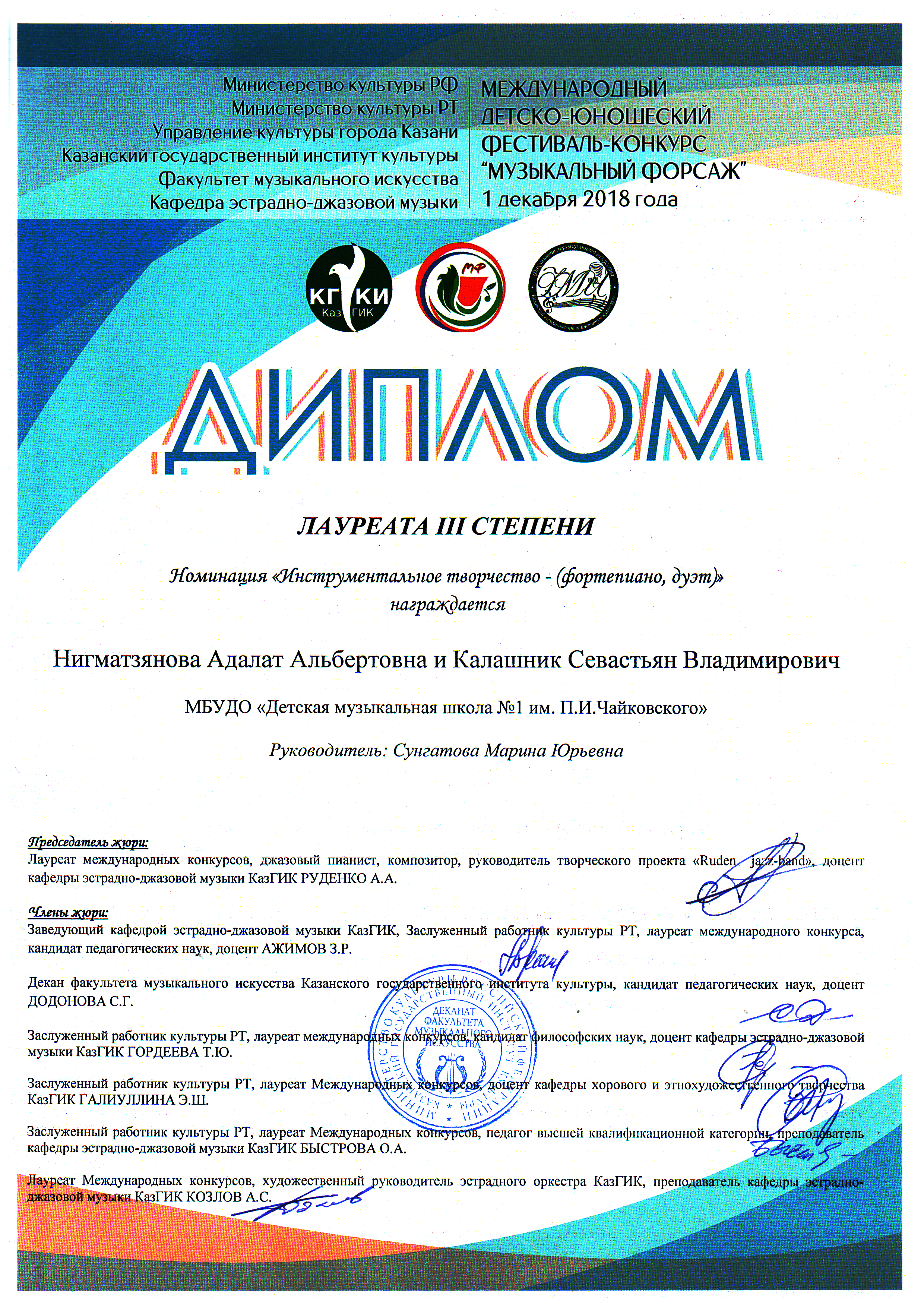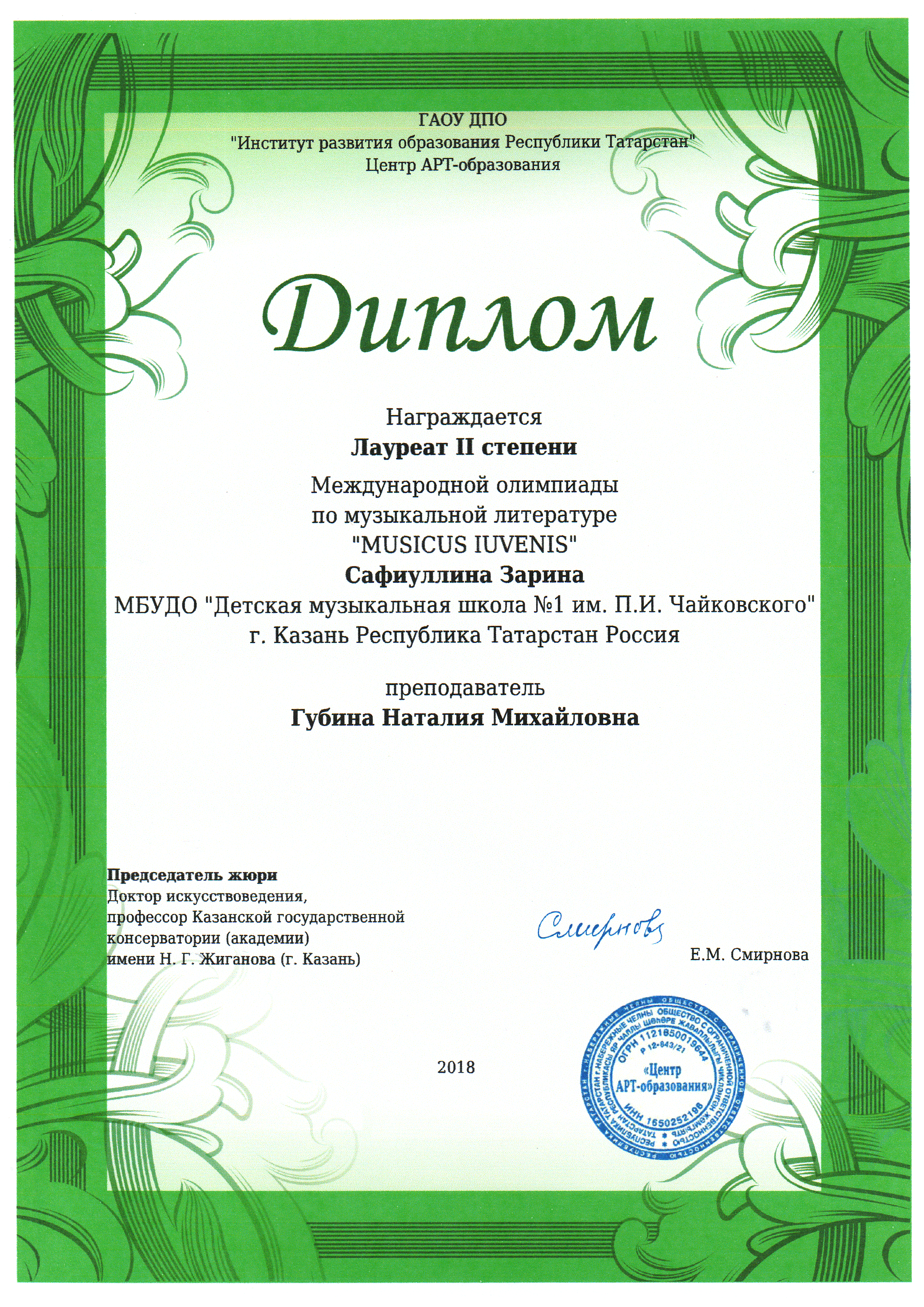 | Короткое название: | МБУДО "Детская музыкальная школа №1 им. П.И. Чайковского" г.Казани |