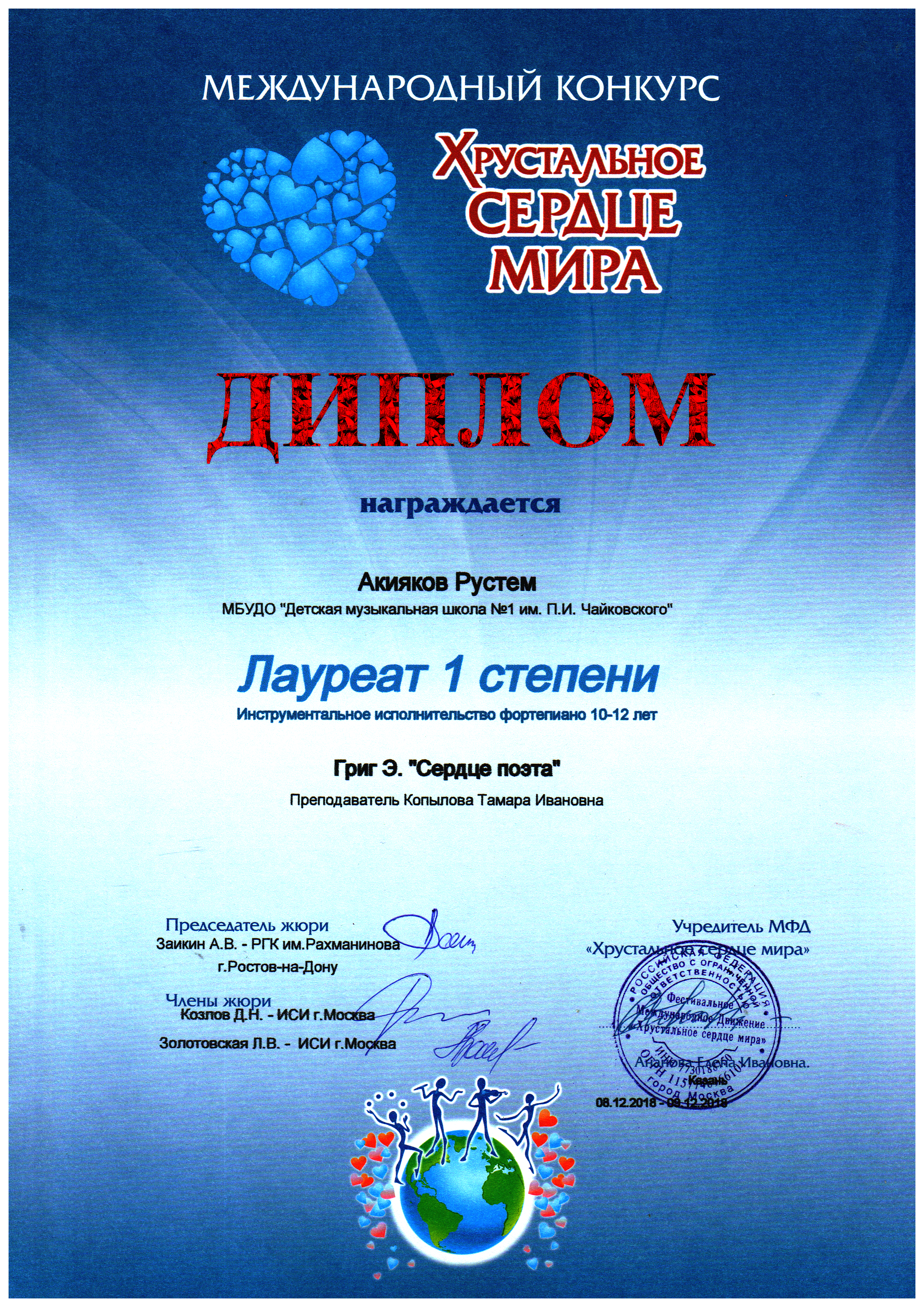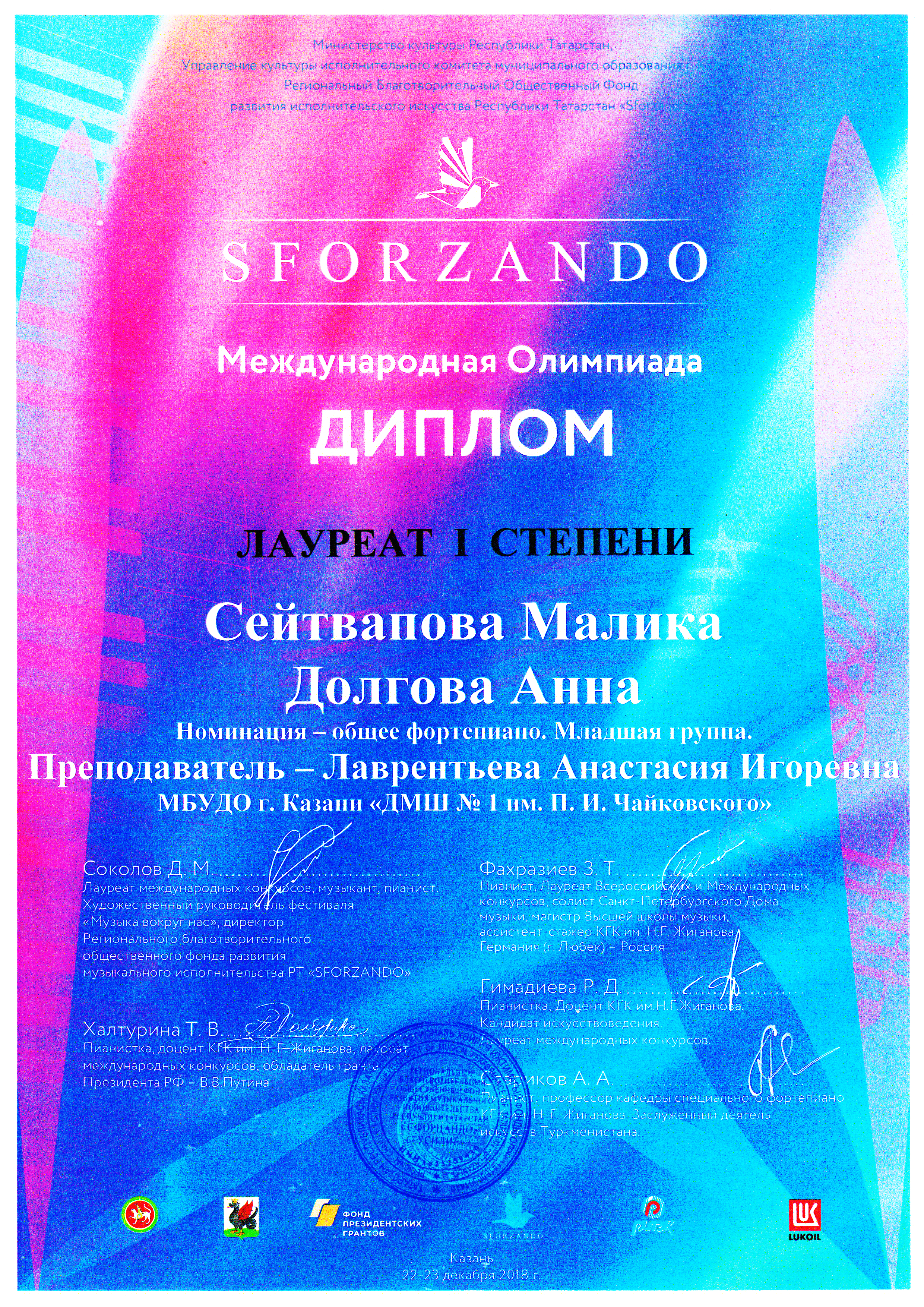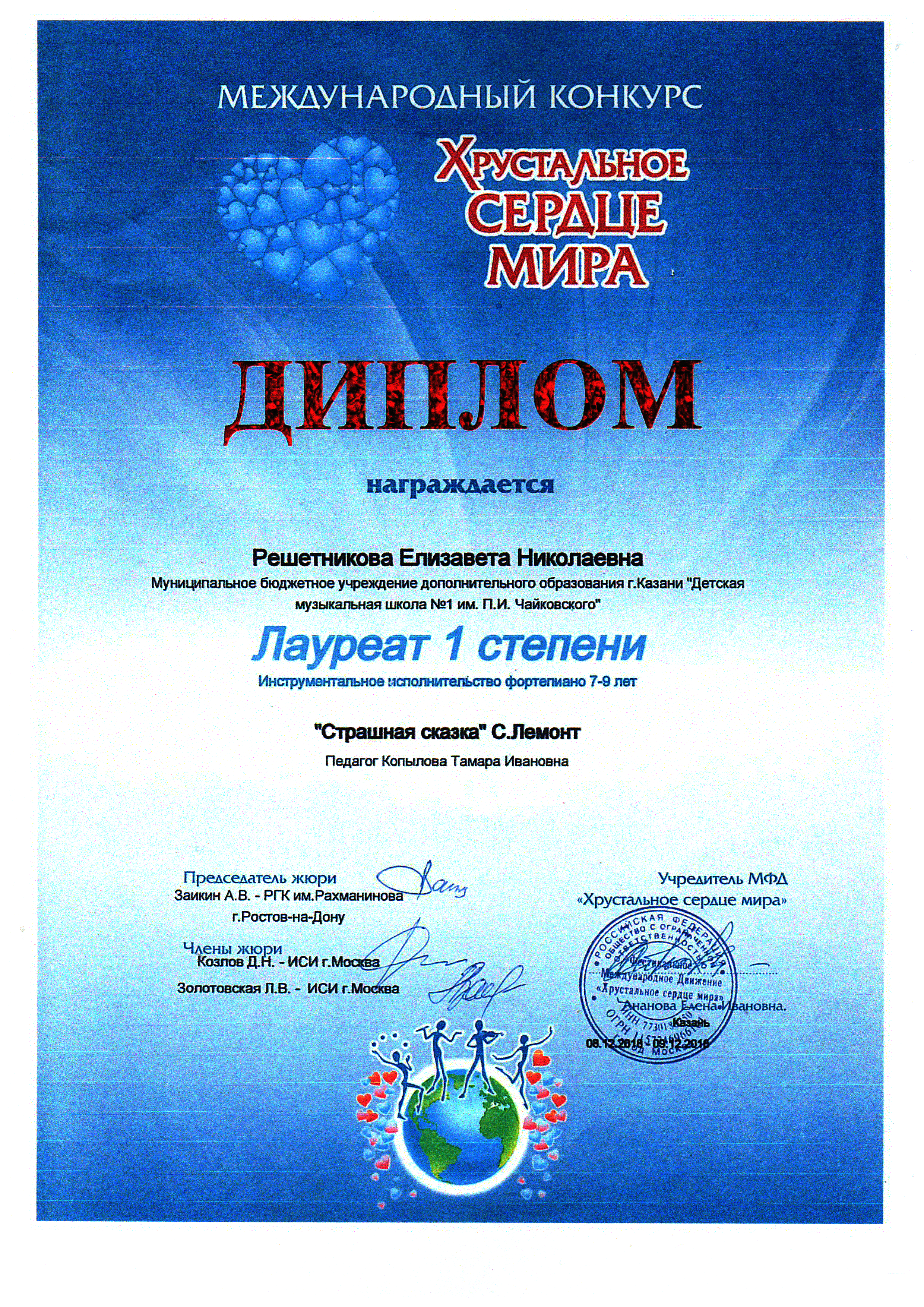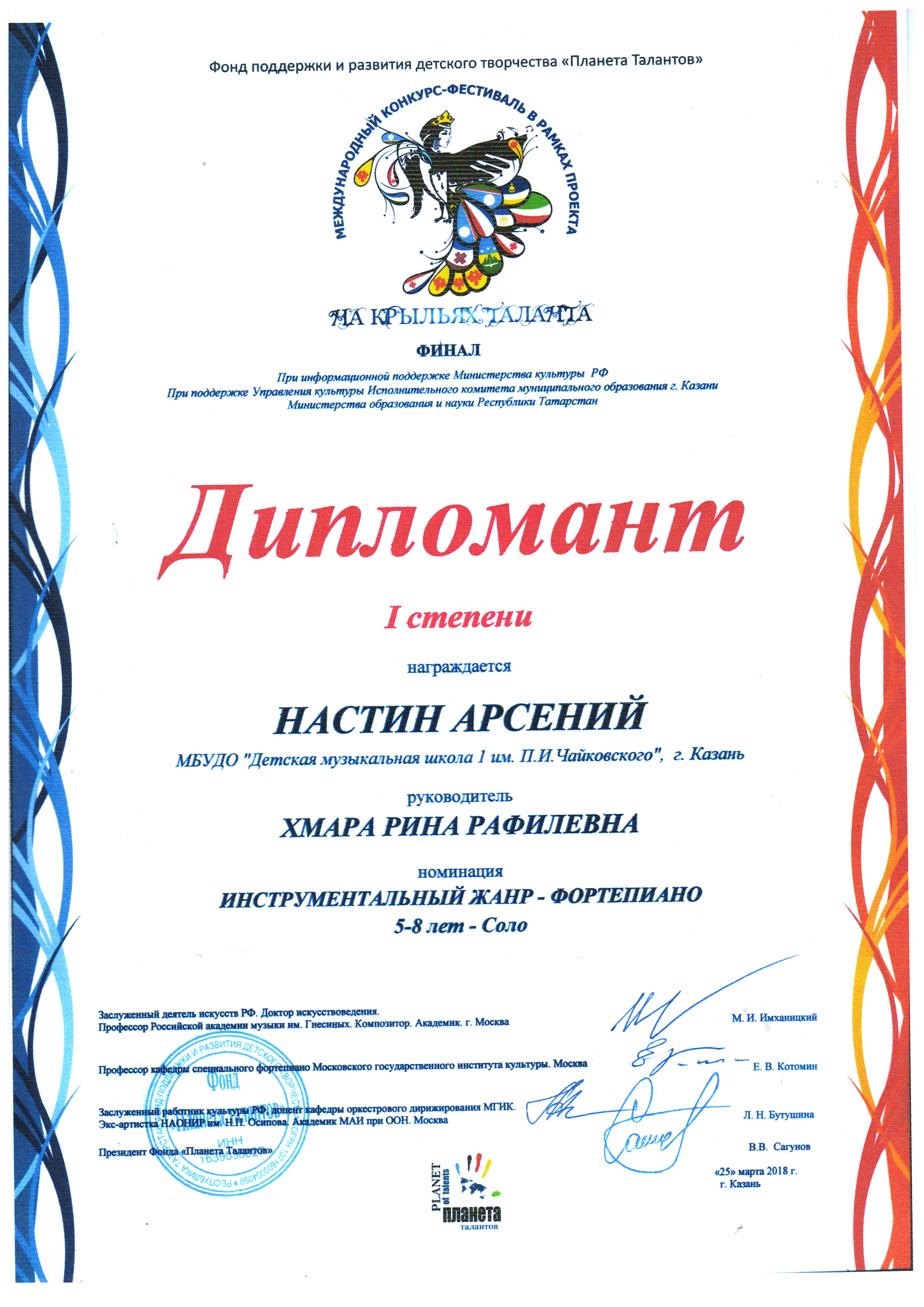 Первый Международный конкурс "Таланты России" - Аитова Алия, Лауреат I степени;