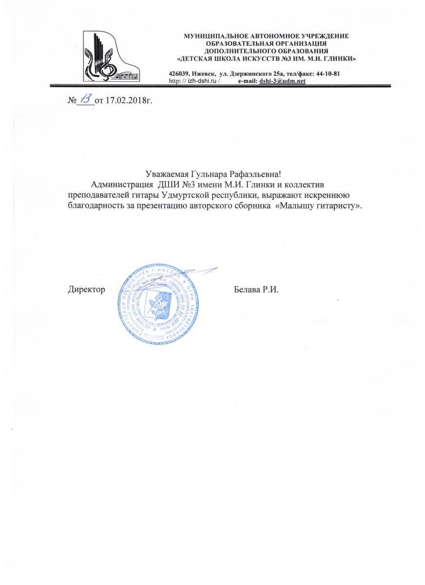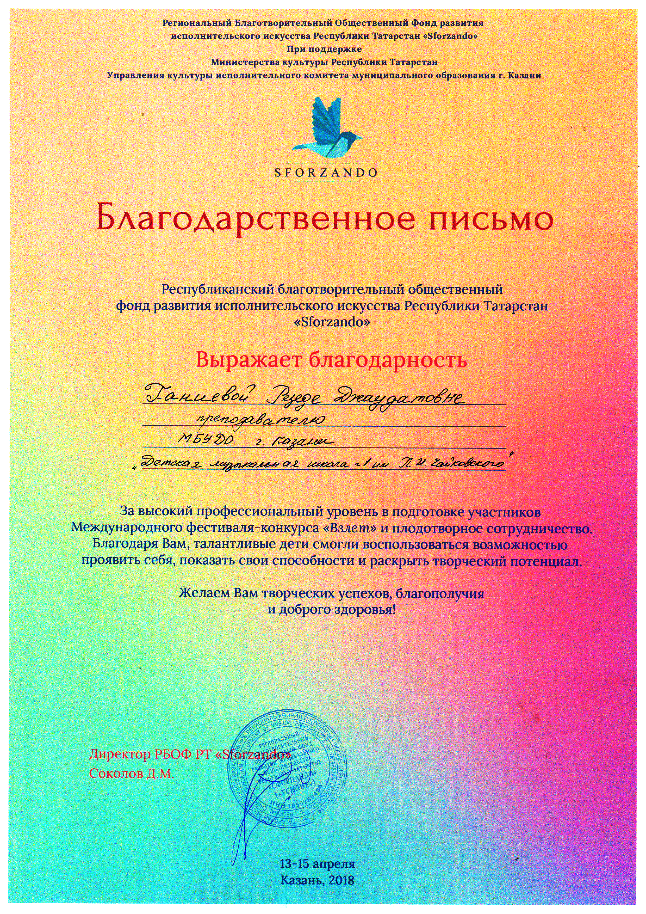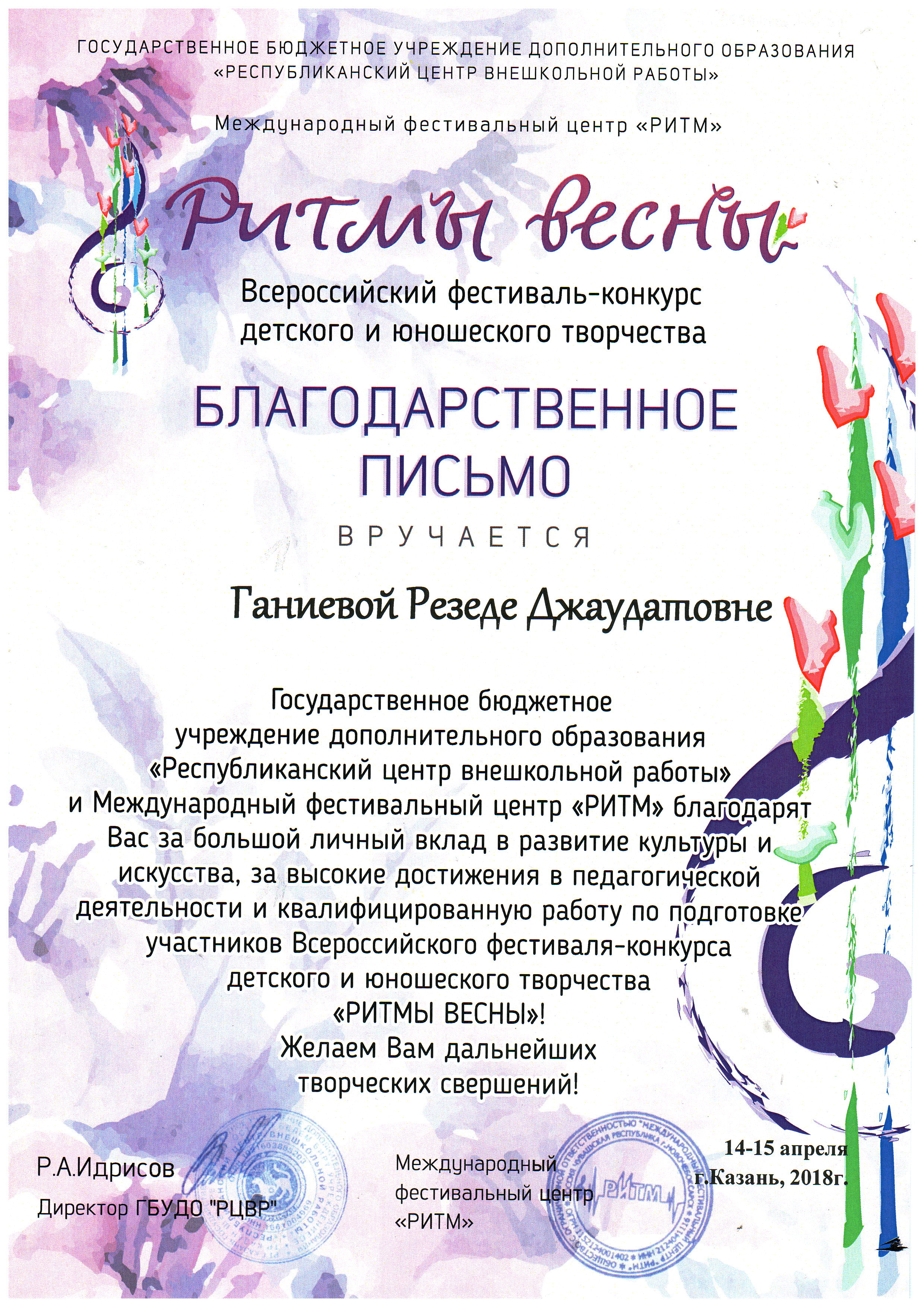 Международный конкурс искусств "ART Перспектива" - Ганиева Р.Д., Благодартсвенное письмо;