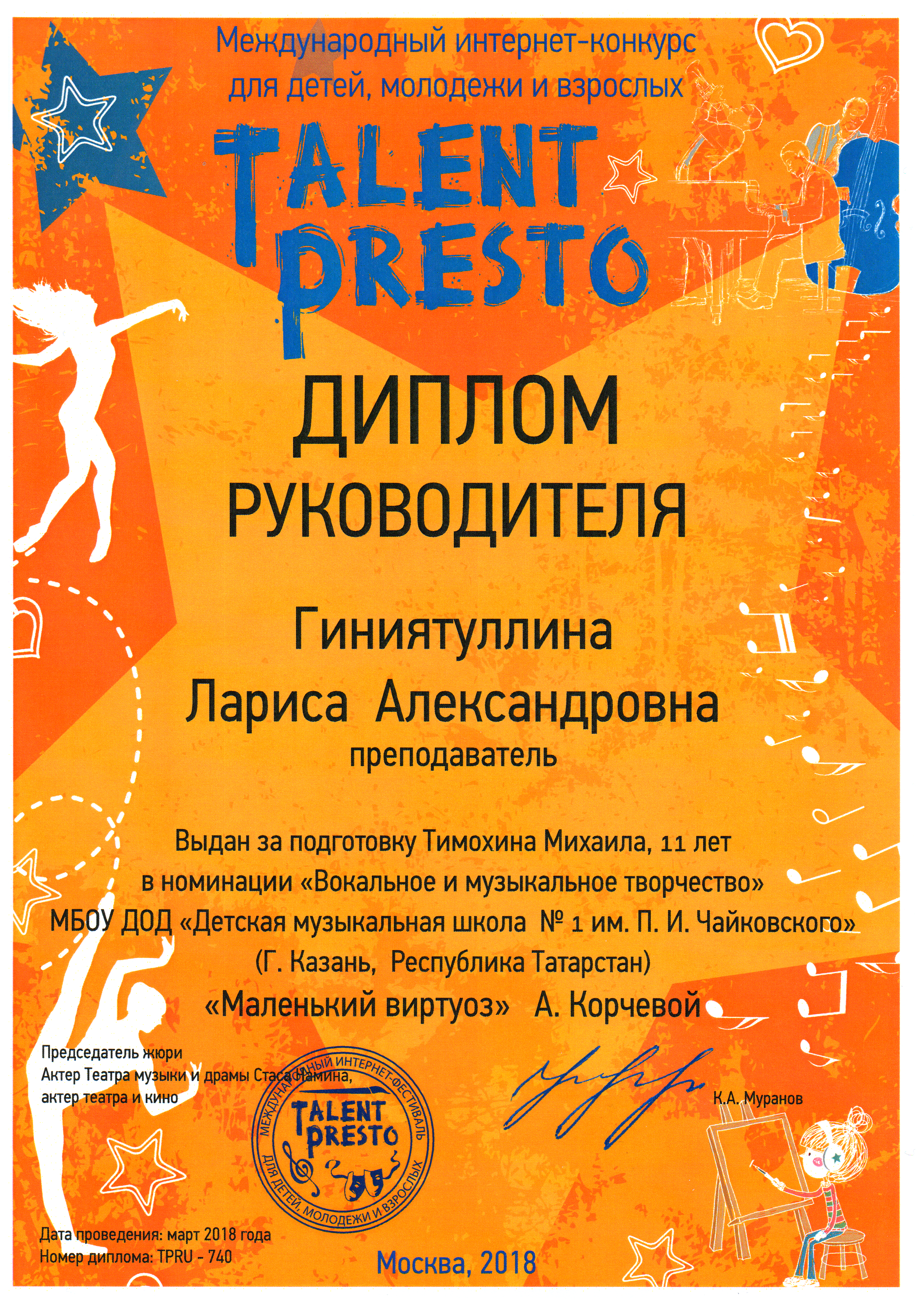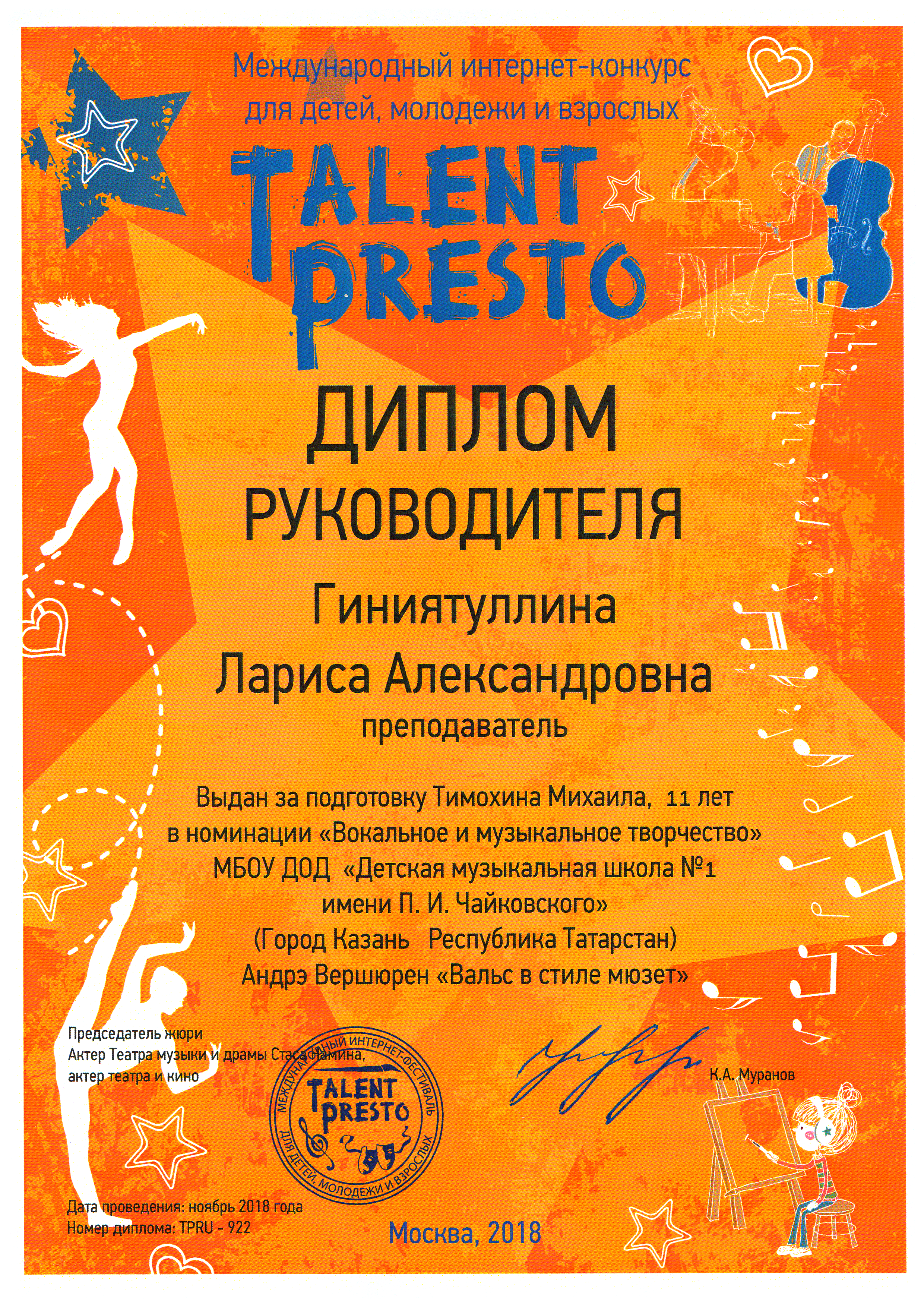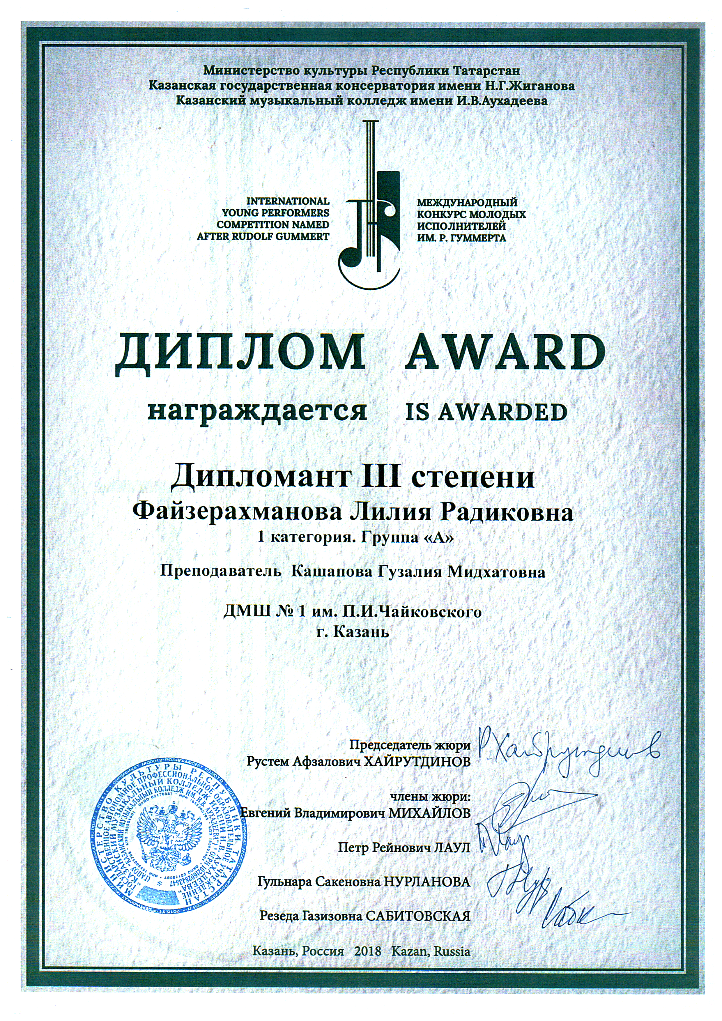Международный конкурс молодых исполнителей им.Р.Гуммерта - Кашапова Г.М., Диплом;